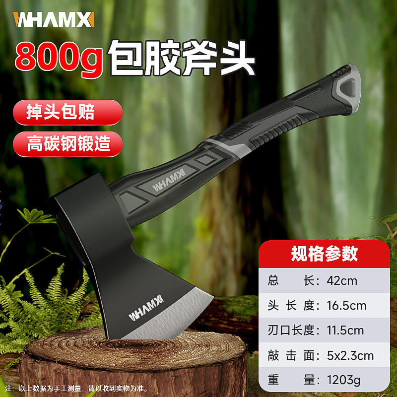 • [강력한 회색 사무라이 해머 및 도끼 겸용] 확장 플라스틱 코팅 손잡이 도끼 유형 800 - 야외 나무 절단 및 장작 절단 도구