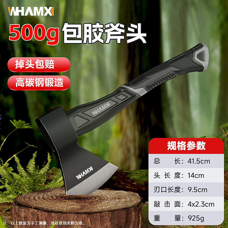 • [강력한 회색 사무라이 해머 및 도끼 겸용] 확장 플라스틱 코팅 손잡이 도끼 500형 - 야외 나무 절단 및 장작 절단 도구