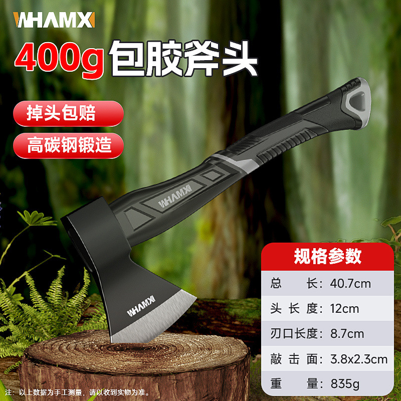 • [강력한 회색 사무라이 해머 앤 도끼 겸용] 플라스틱 코팅 손잡이 도끼 400형 - 야외 나무 절단 및 장작 절단 도구