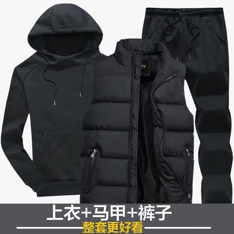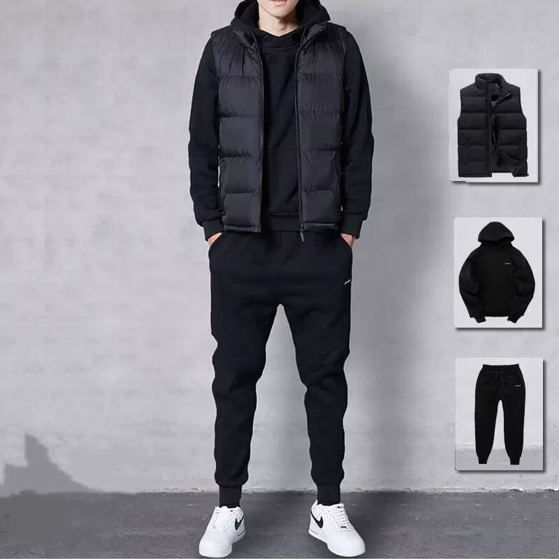 겨울 정사이즈 후드 땀 3 조각 남자 어울리는 잘 생긴 유행 옷 스포츠 세트 캐주얼 조끼 남성 의류스토어 가기