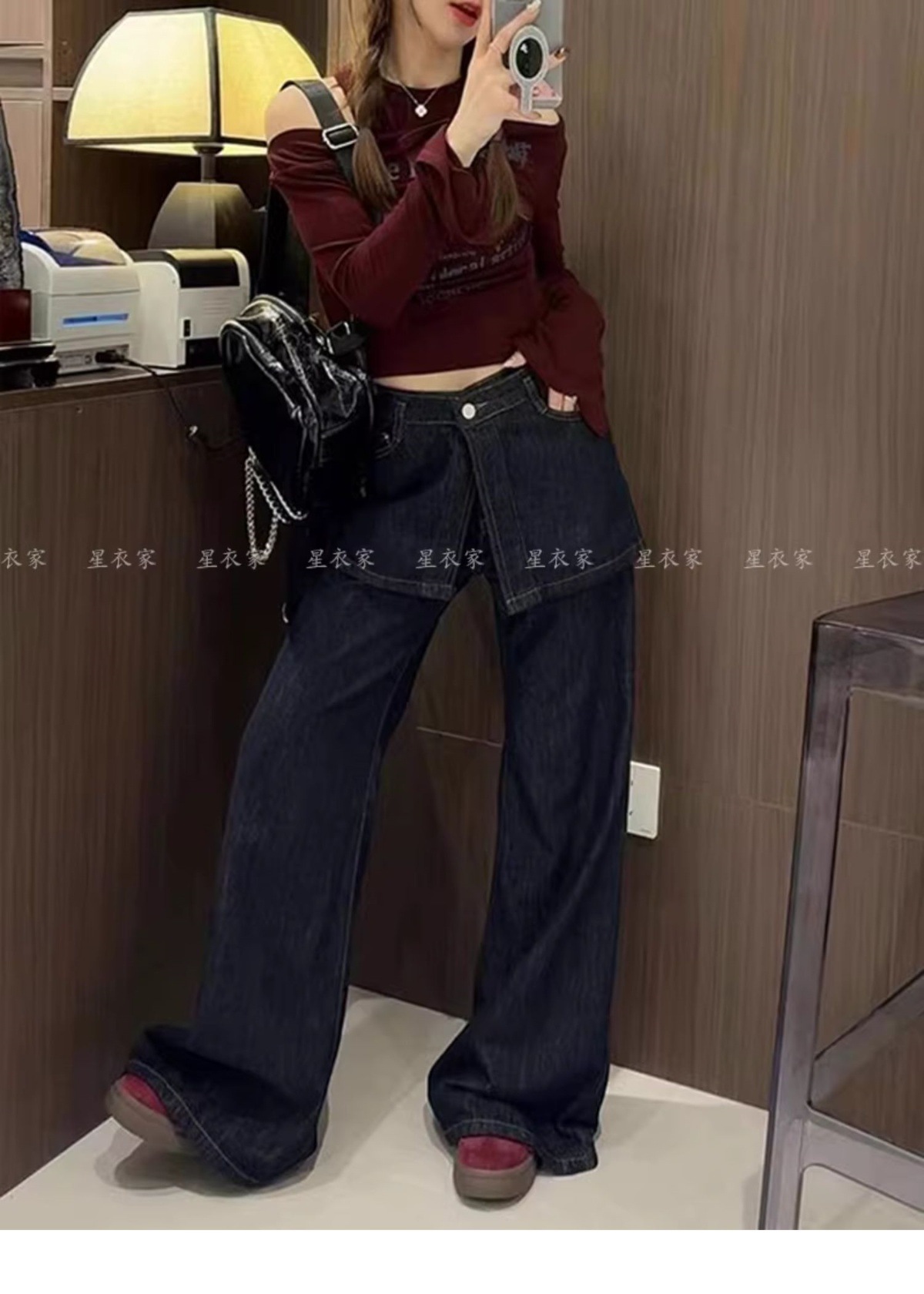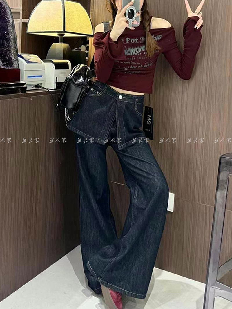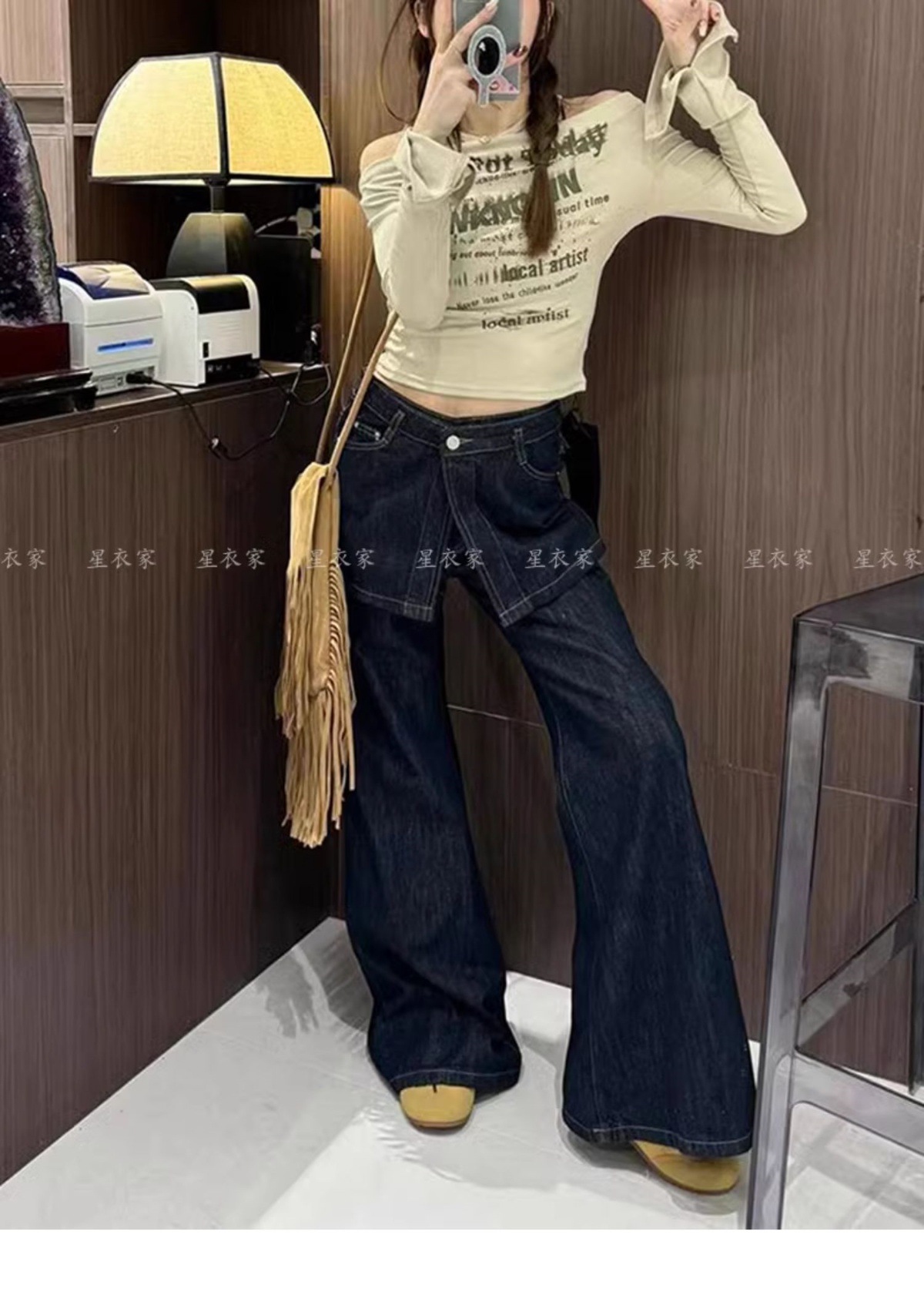 레트로 패션 디자인 센스 틈새 스티칭 청바지 여성 가을 새로운 스파이스 걸스 슬림 약간의 바지 트렌디