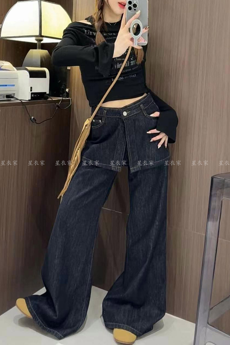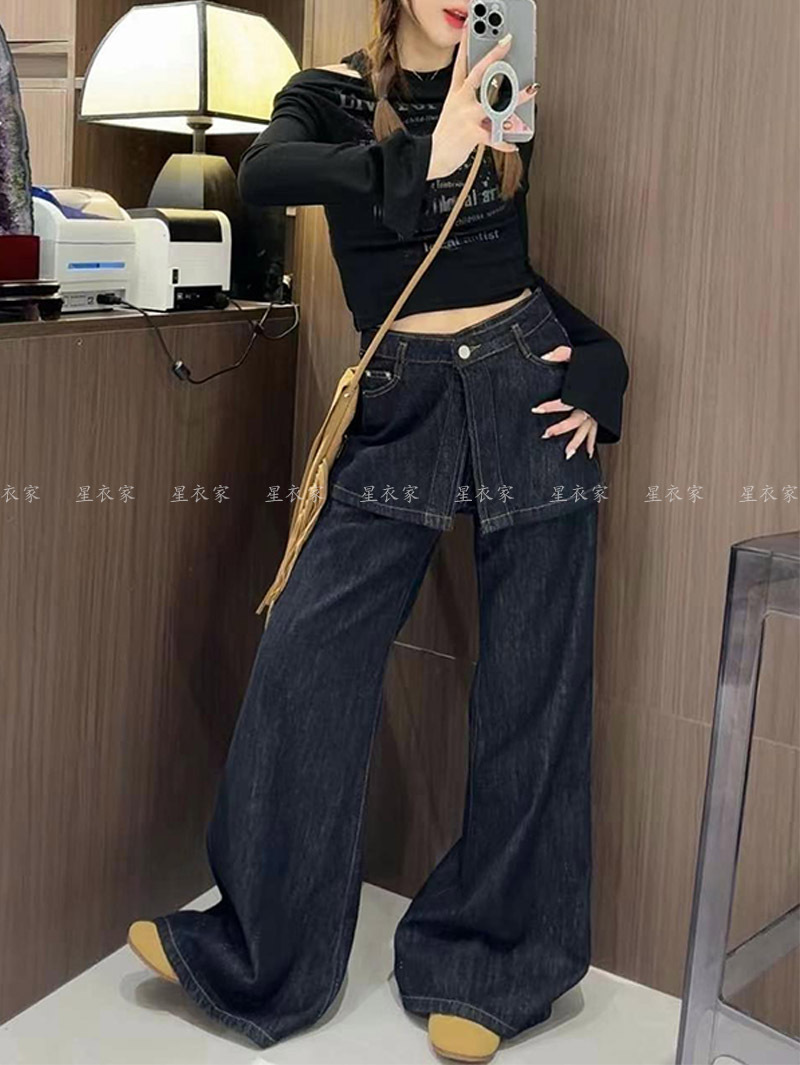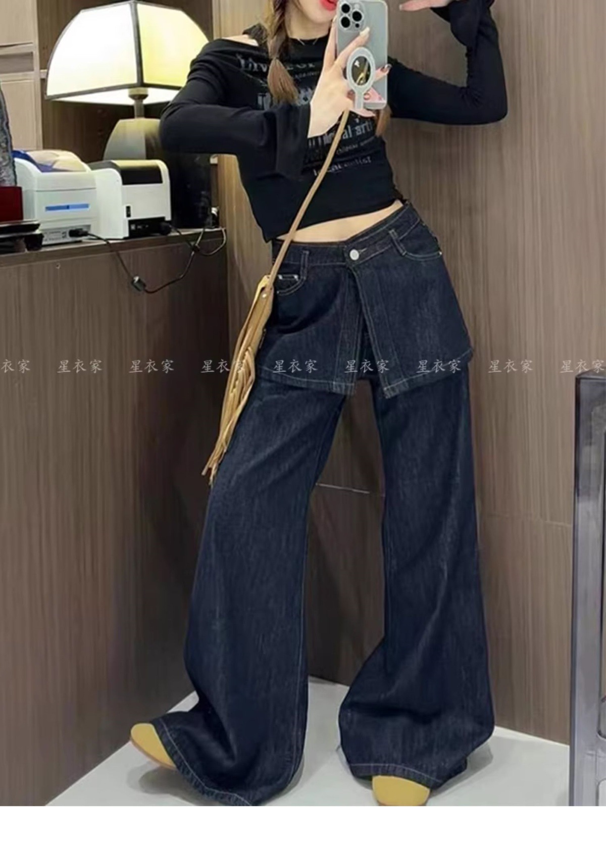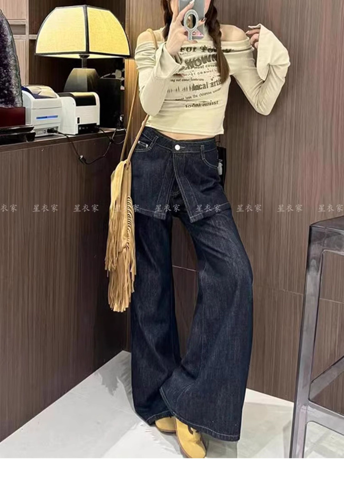 레트로 패션 디자인 센스 틈새 스티칭 청바지 여성 가을 새로운 스파이스 걸스 슬림 약간의 바지 트렌디