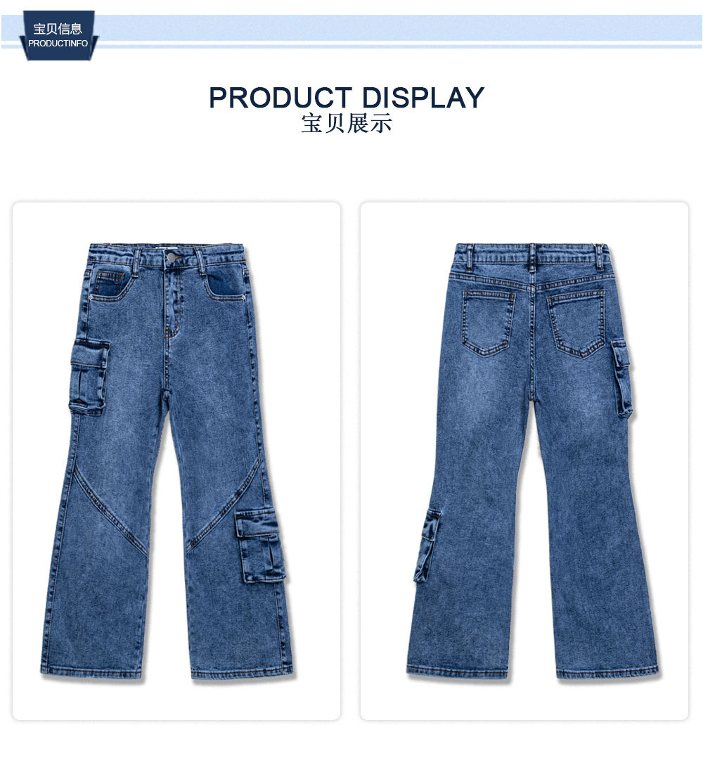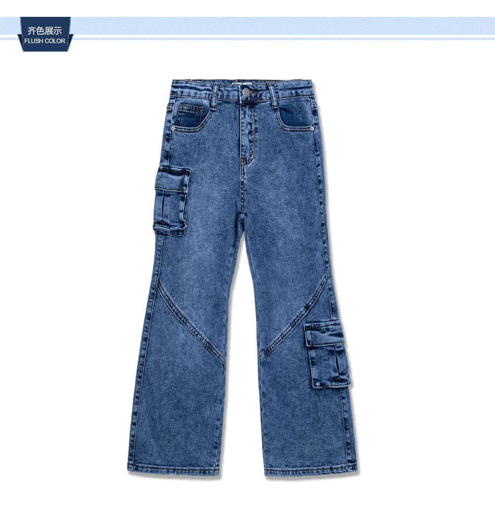 대외 무역 아동복 바지 소스 제조업체 소녀 어린이 캐주얼 경적 바지 바지 바지 데님 멀티 백 바지스토어 가기