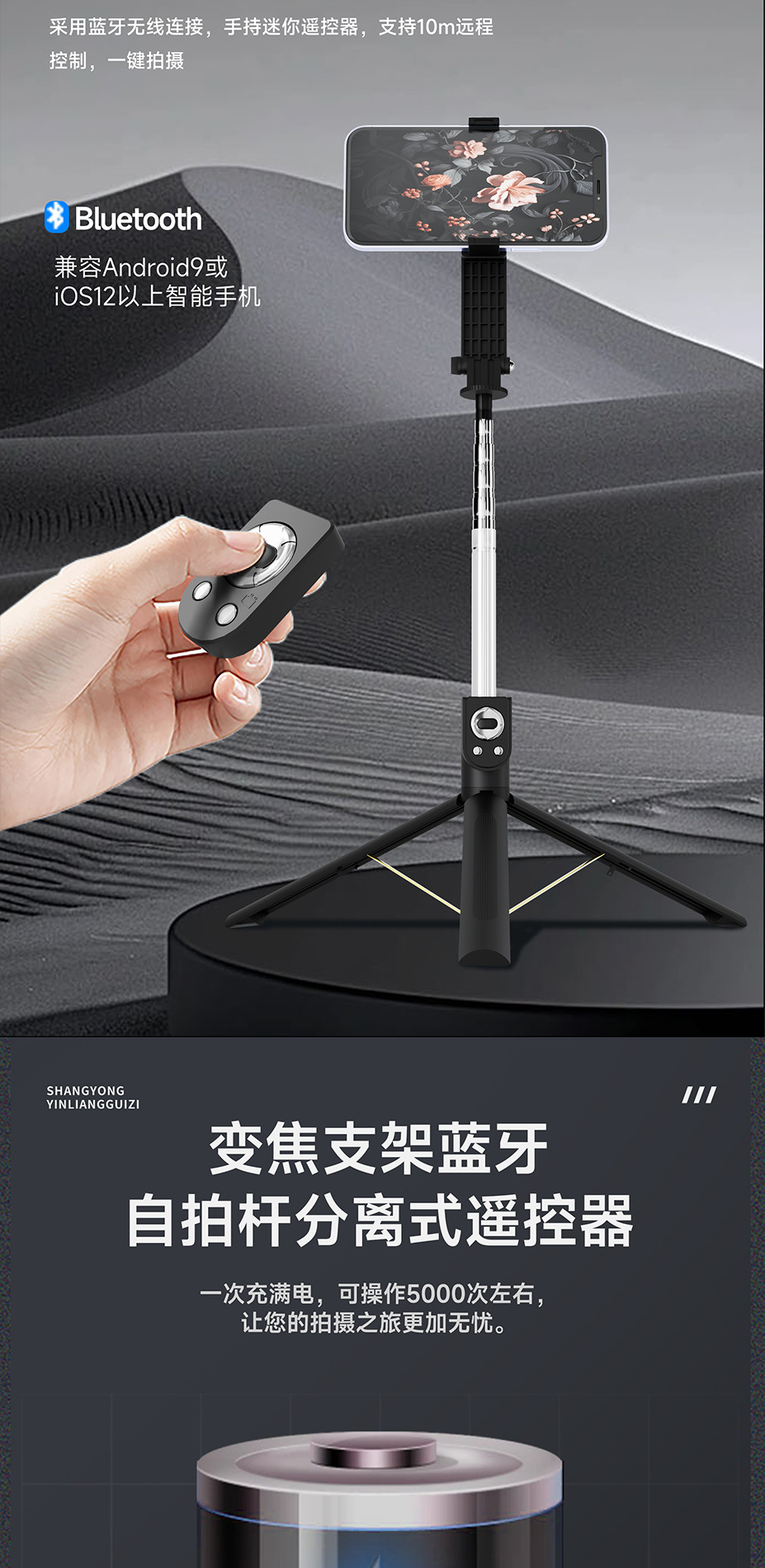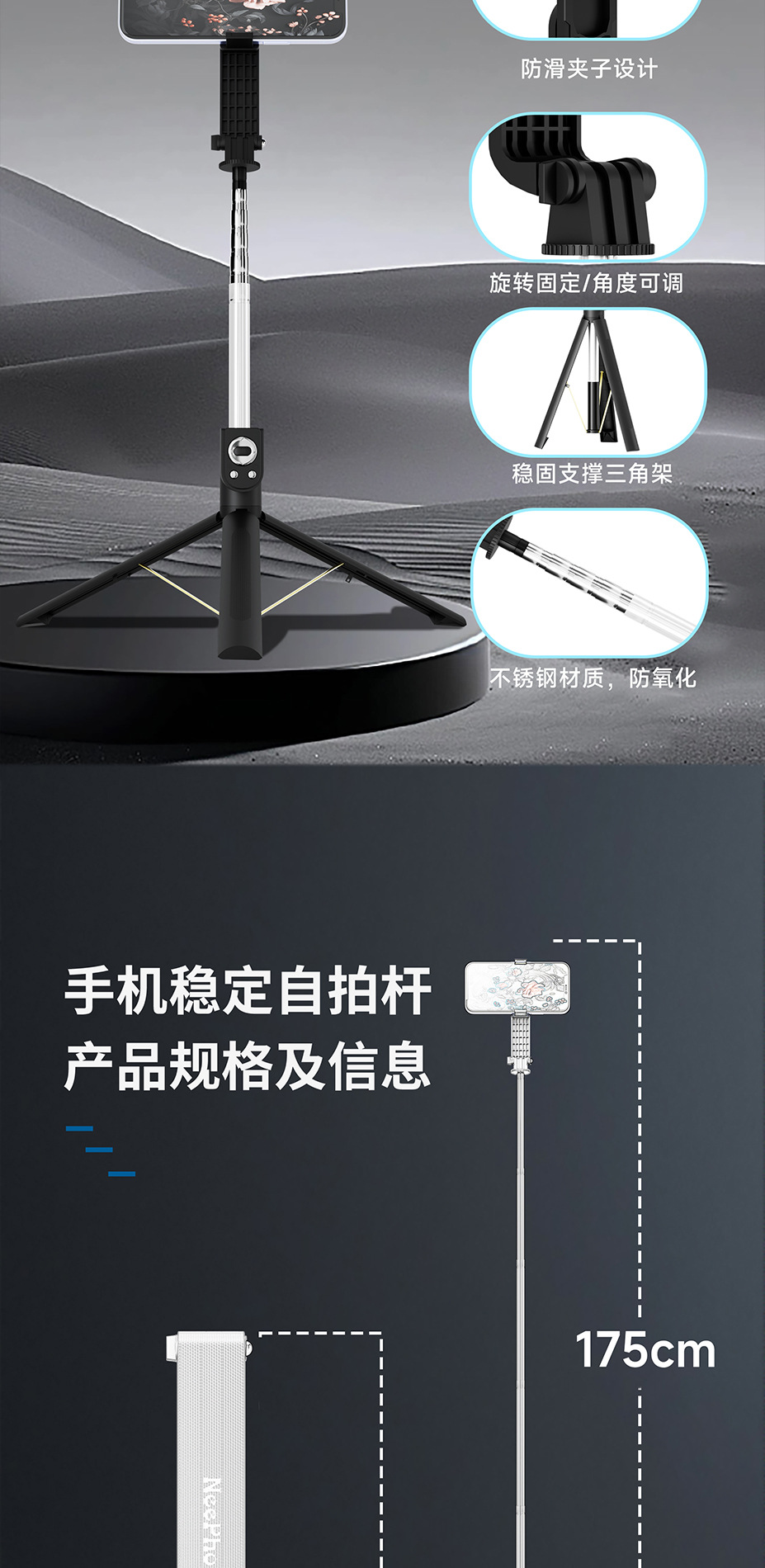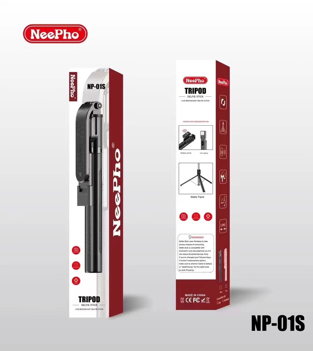 새로운 휴대 전화 블루투스 셀카 스틱 NP01 휴대용 안정제 바닥 스탠드 개폐식 삼각대 유니버설