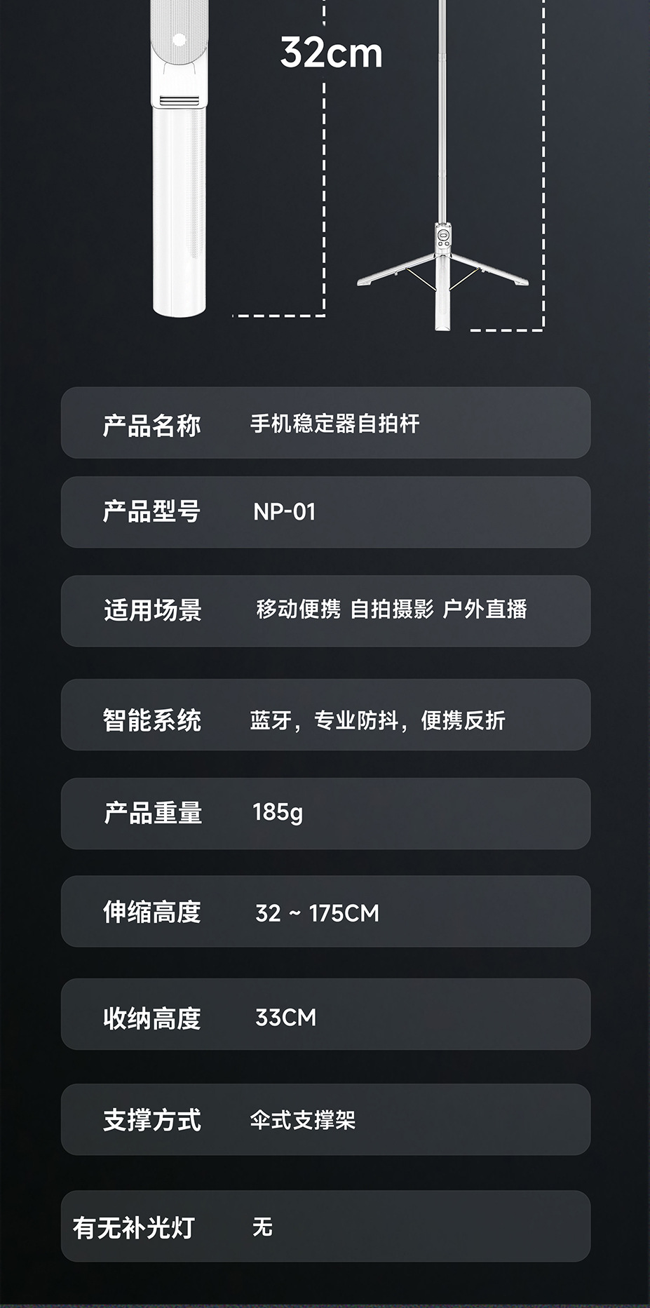 새로운 휴대 전화 블루투스 셀카 스틱 NP01 휴대용 안정제 바닥 스탠드 개폐식 삼각대 유니버설스토어 가기