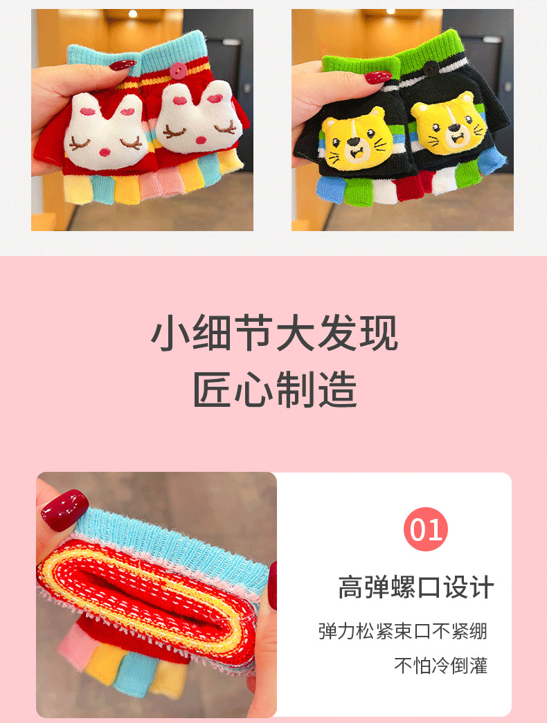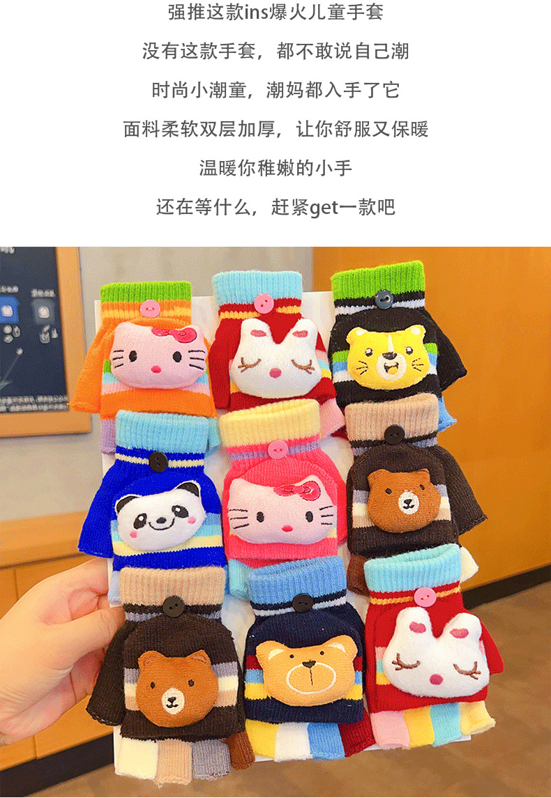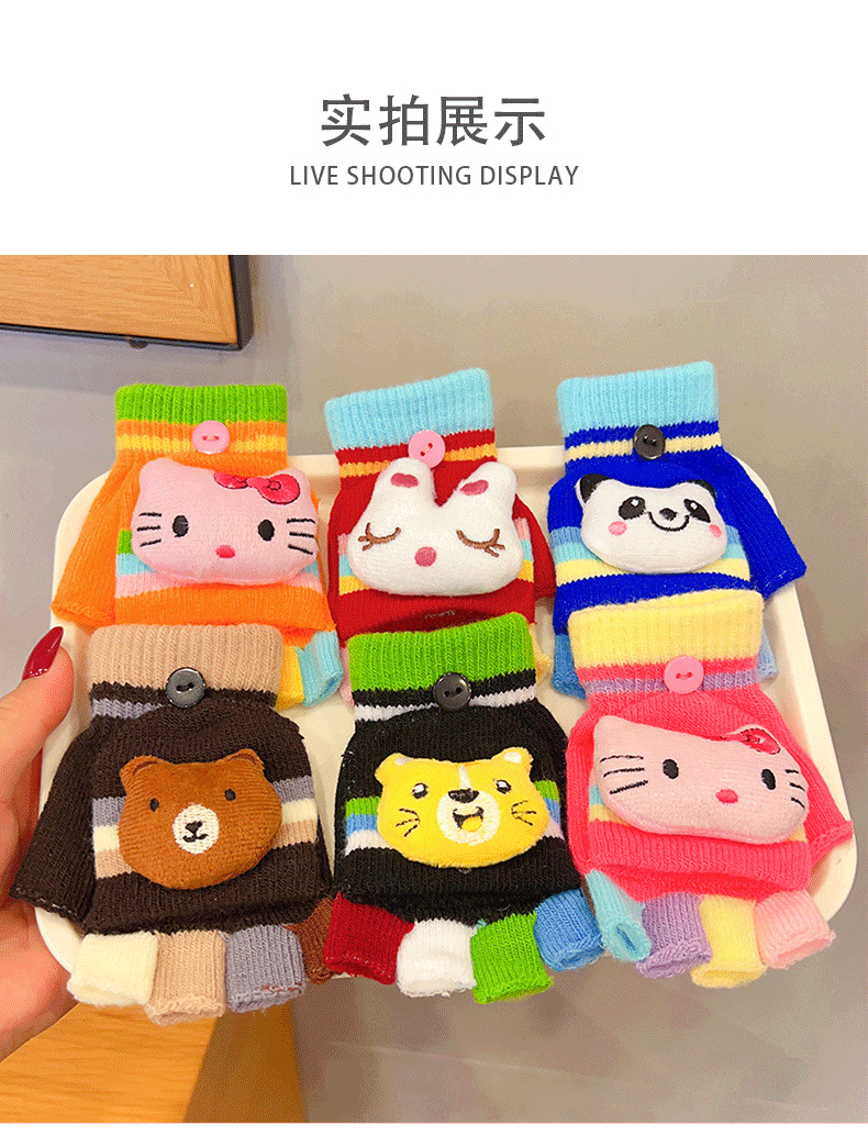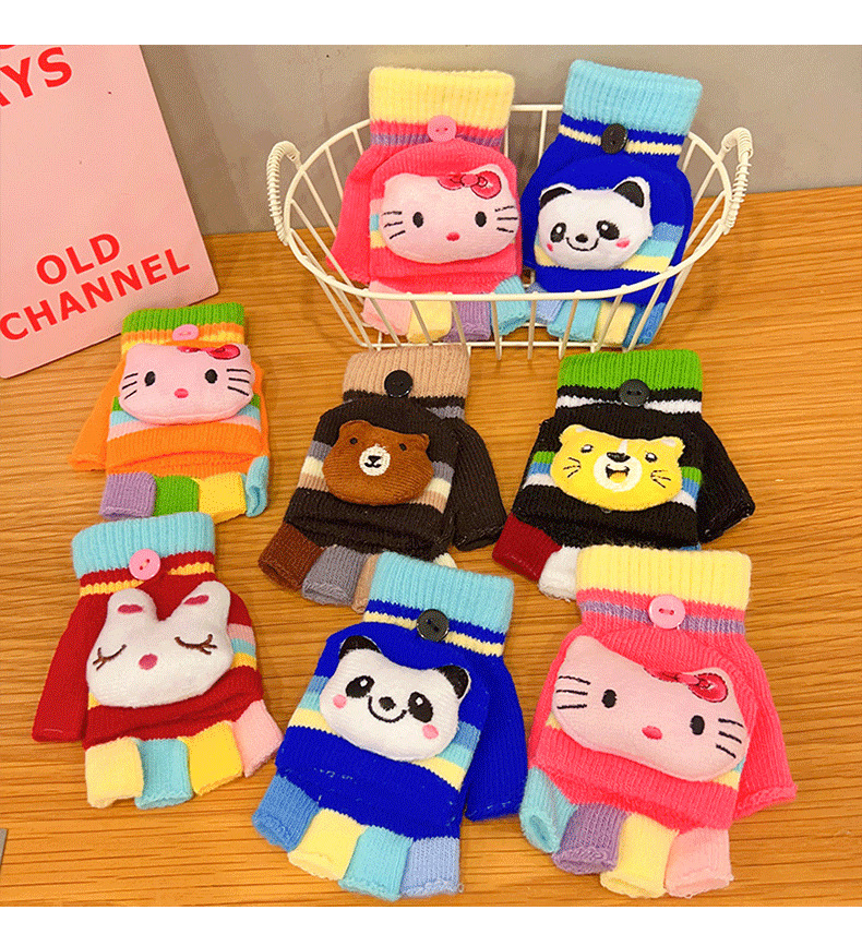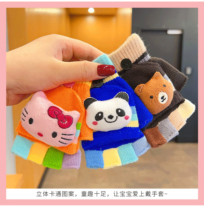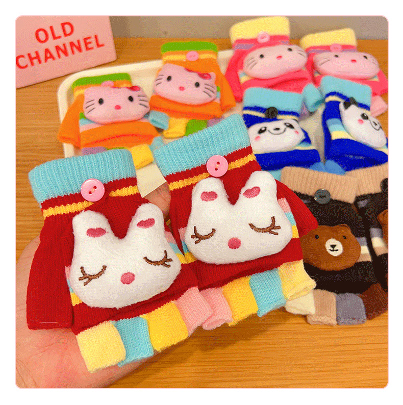 어린이 장갑 소녀 귀여운 만화 니트 플립 커버 다섯 손가락 세트 가을과 겨울 아기 따뜻한 감기 방지 두꺼운 반 손가락 커버
