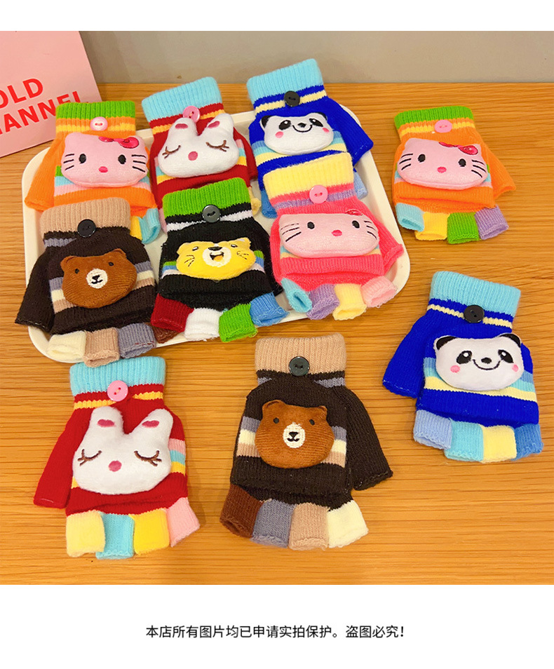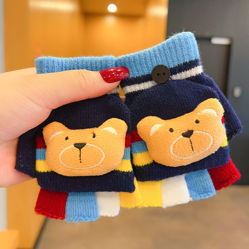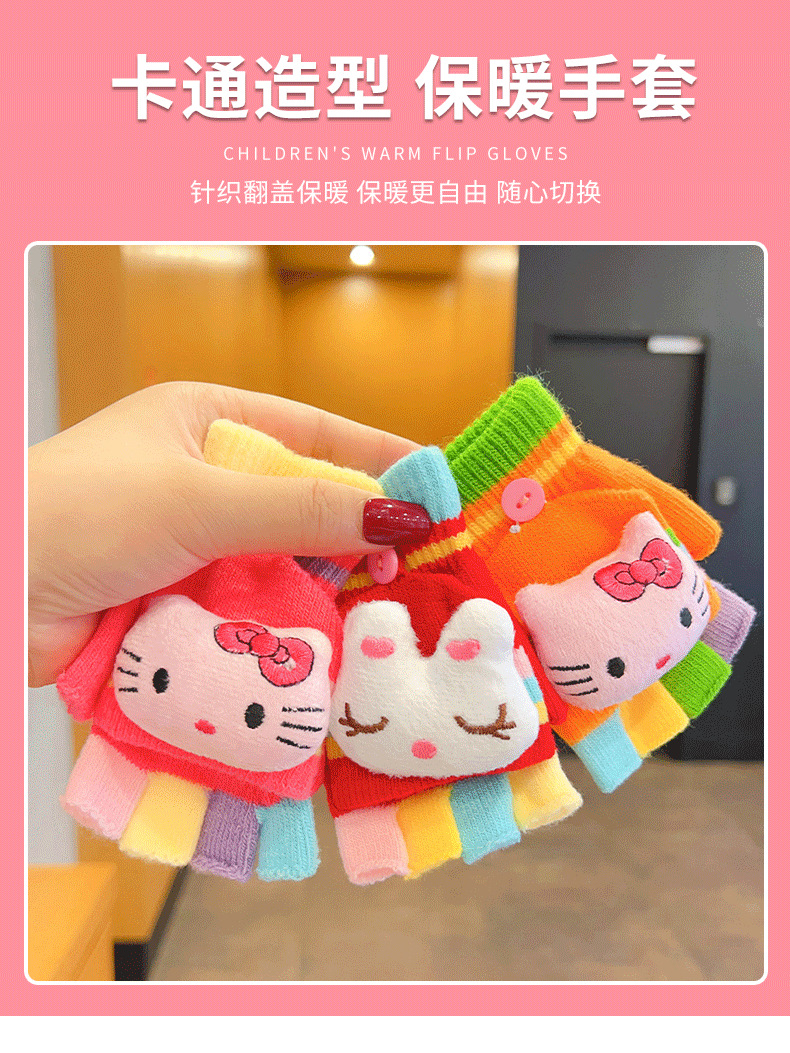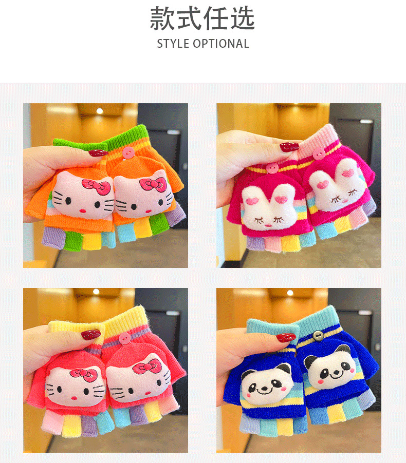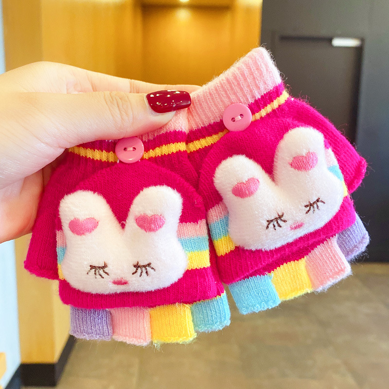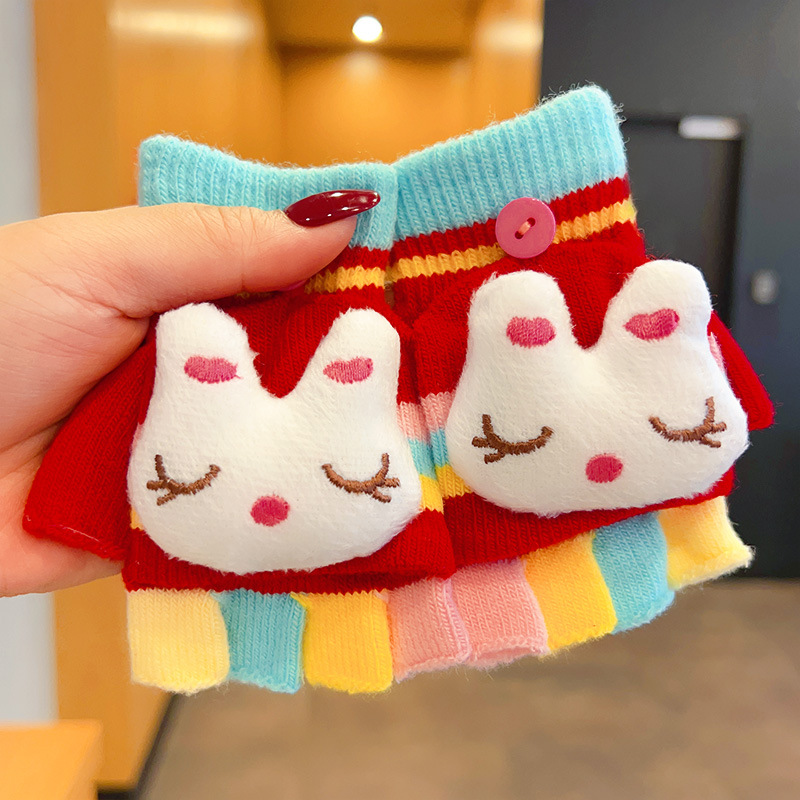 어린이 장갑 소녀 귀여운 만화 니트 플립 커버 다섯 손가락 세트 가을과 겨울 아기 따뜻한 감기 방지 두꺼운 반 손가락 커버