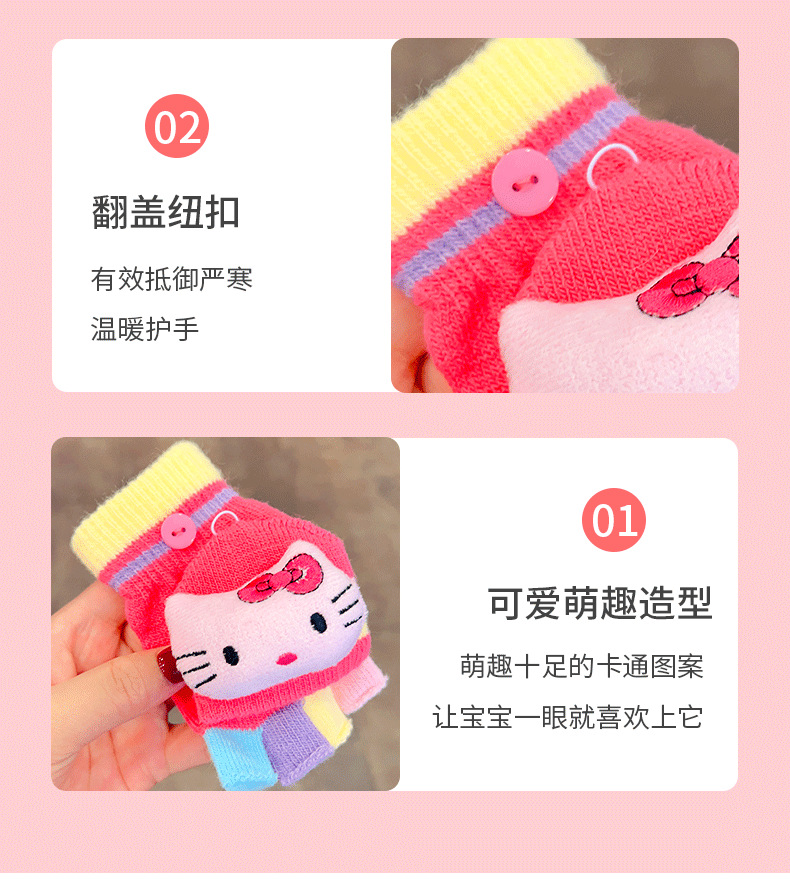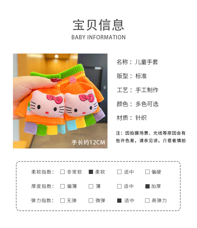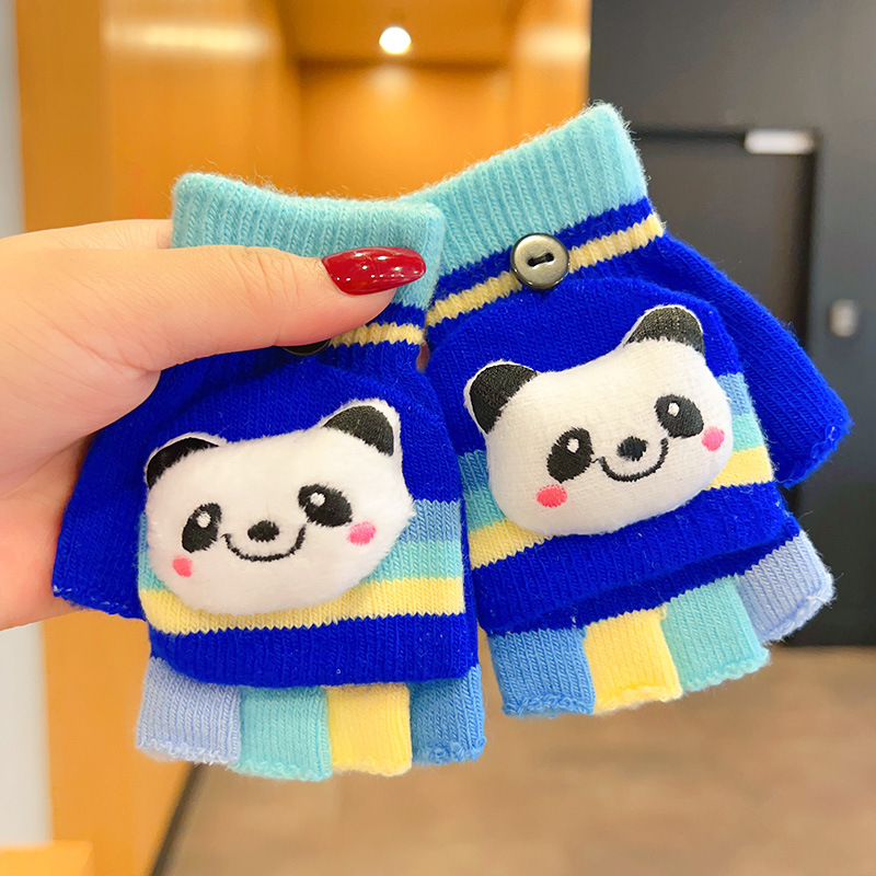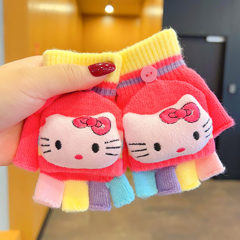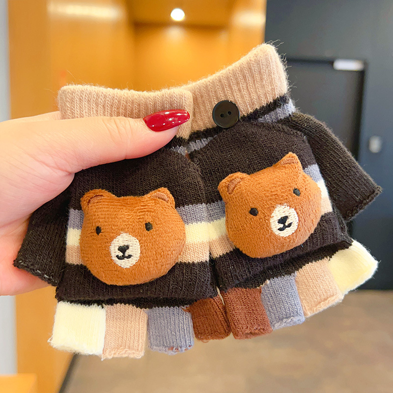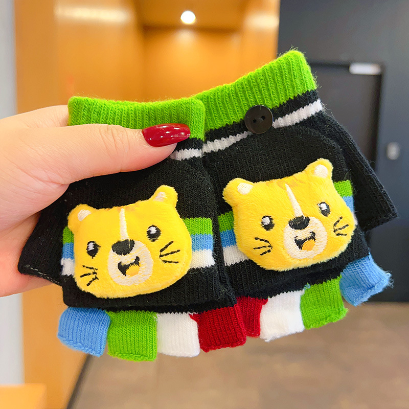 어린이 장갑 소녀 귀여운 만화 니트 플립 커버 다섯 손가락 세트 가을과 겨울 아기 따뜻한 감기 방지 두꺼운 반 손가락 커버