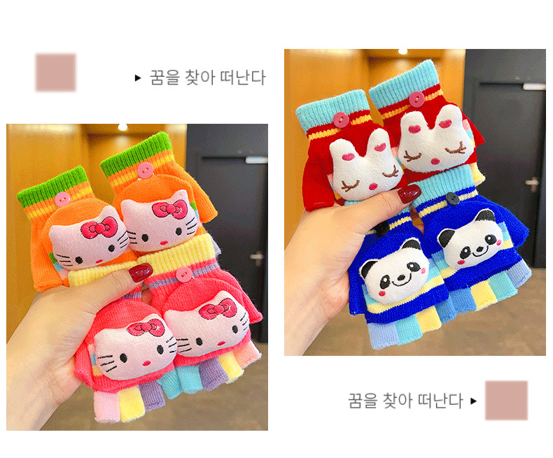 어린이 장갑 소녀 귀여운 만화 니트 플립 커버 다섯 손가락 세트 가을과 겨울 아기 따뜻한 감기 방지 두꺼운 반 손가락 커버스토어 가기