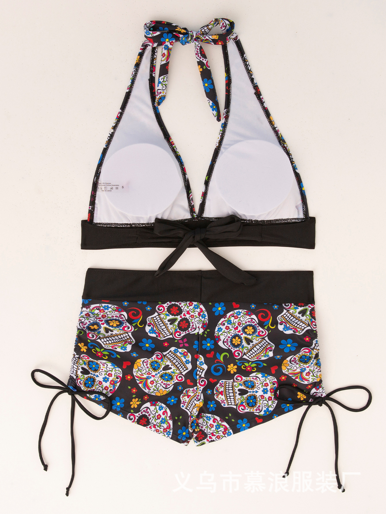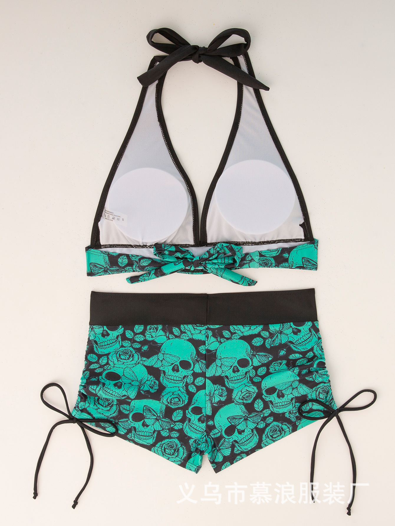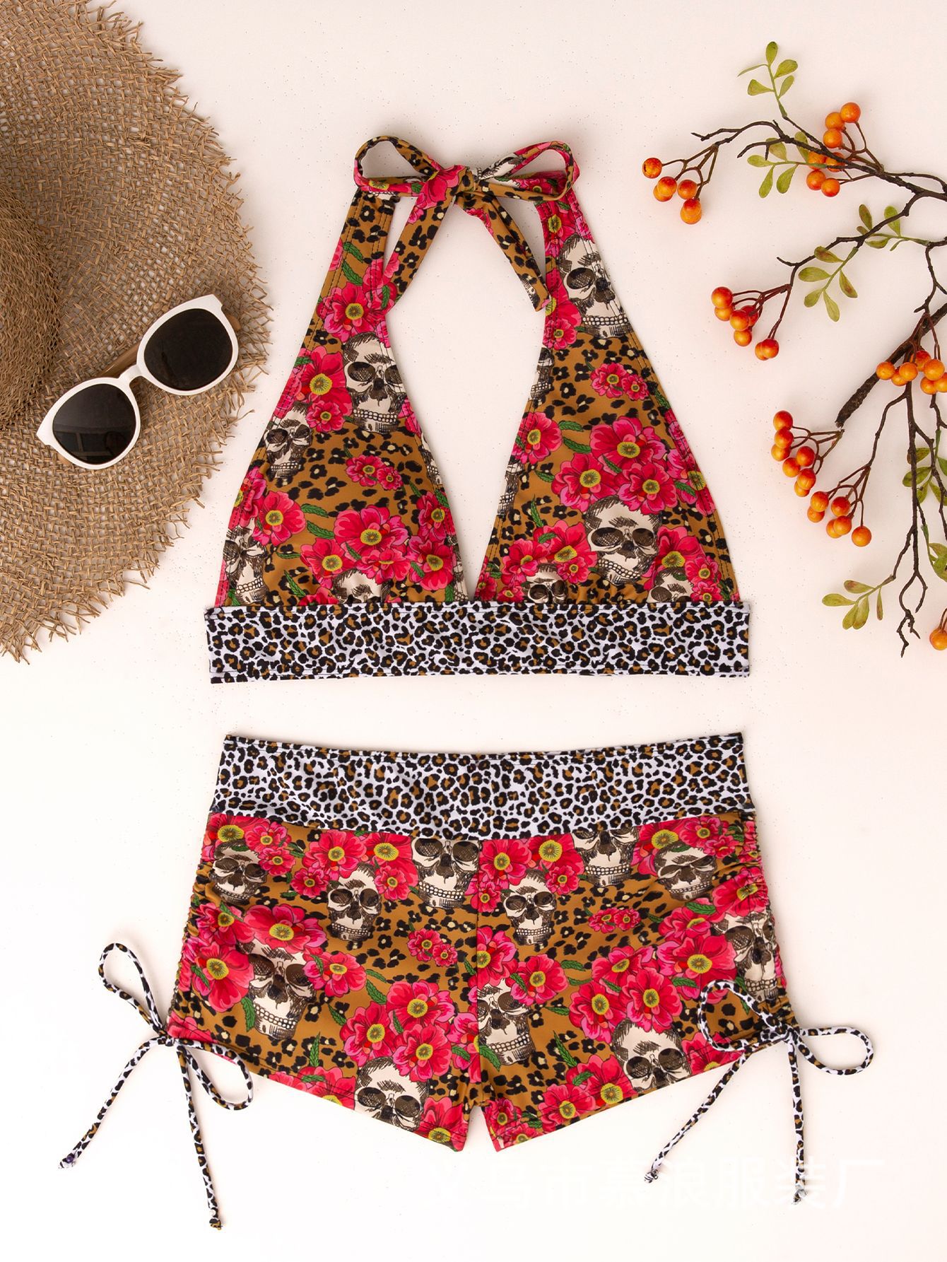 유럽과 미국의 여름 새로운 비키니 두개골 인쇄 교수형 목 세트 투피스 수영복 여성용 수영복