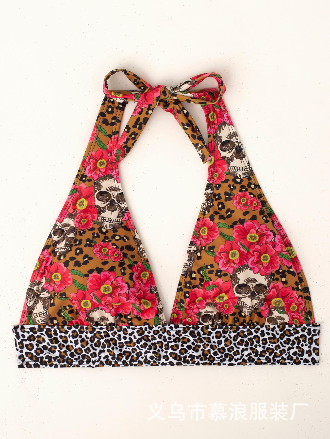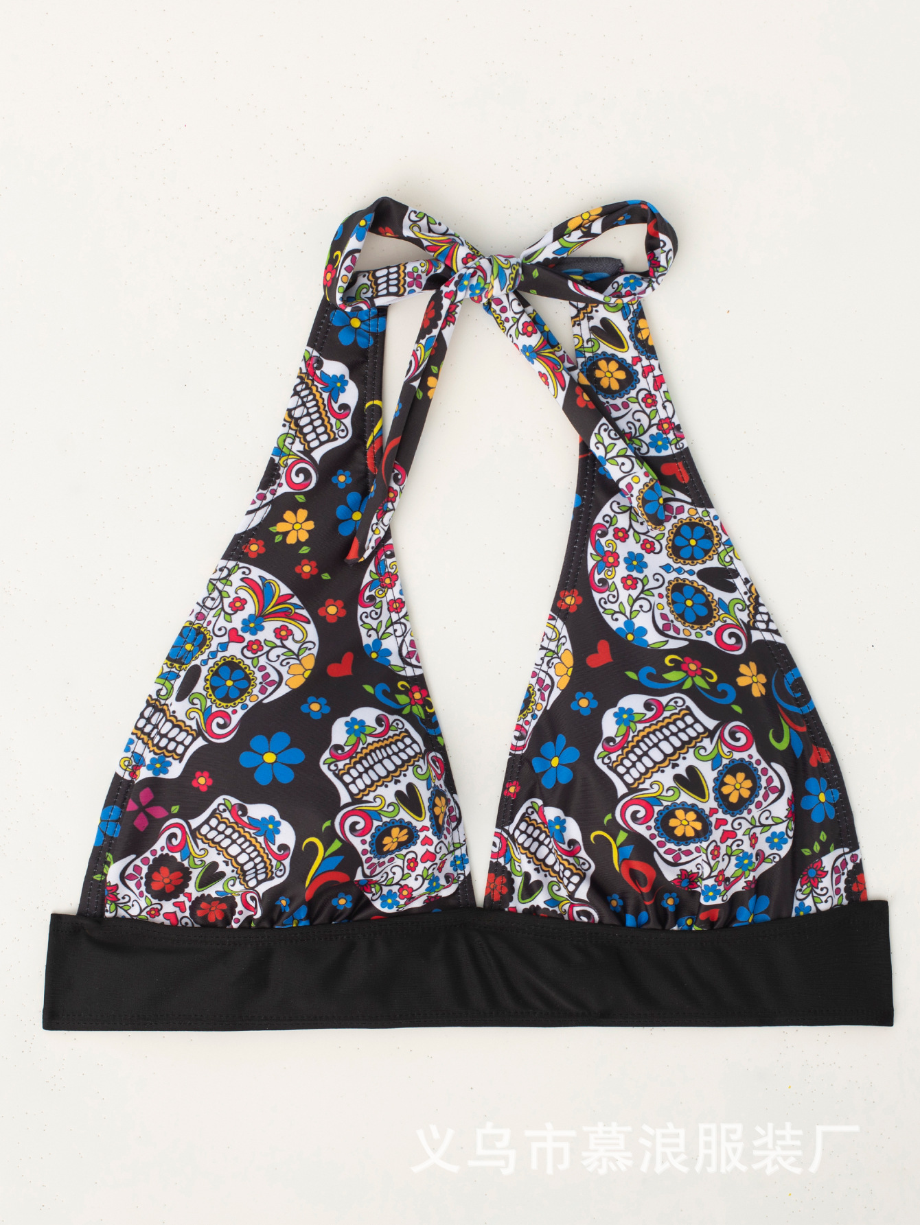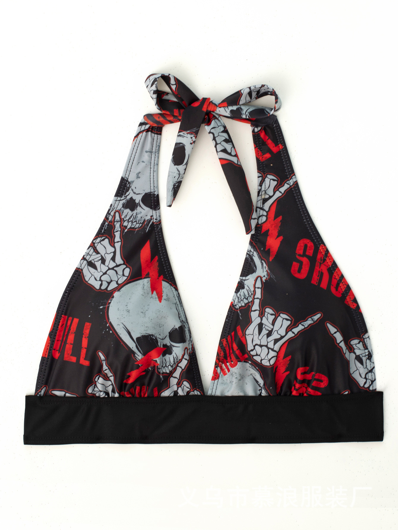 유럽과 미국의 여름 새로운 비키니 두개골 인쇄 교수형 목 세트 투피스 수영복 여성용 수영복