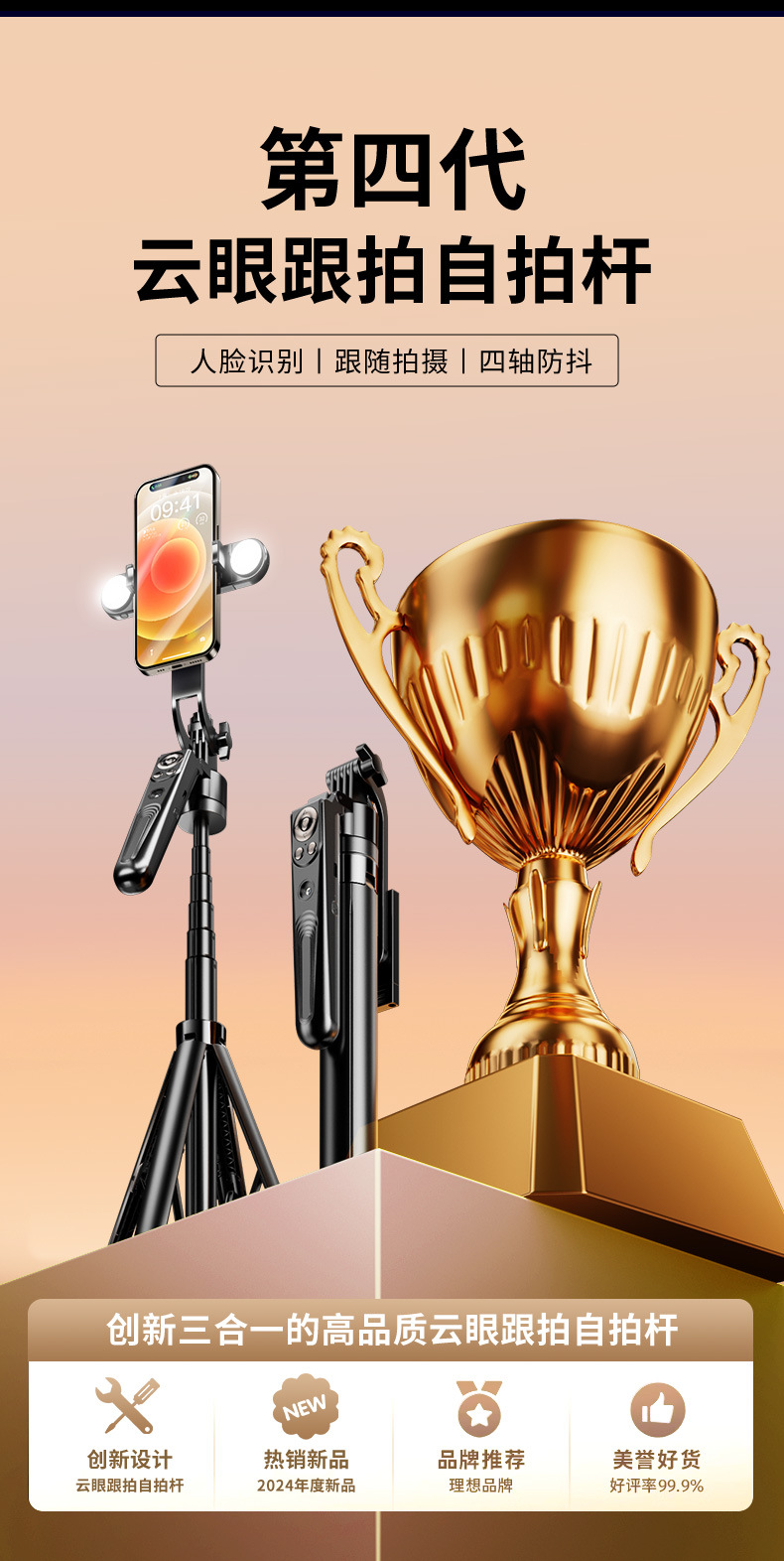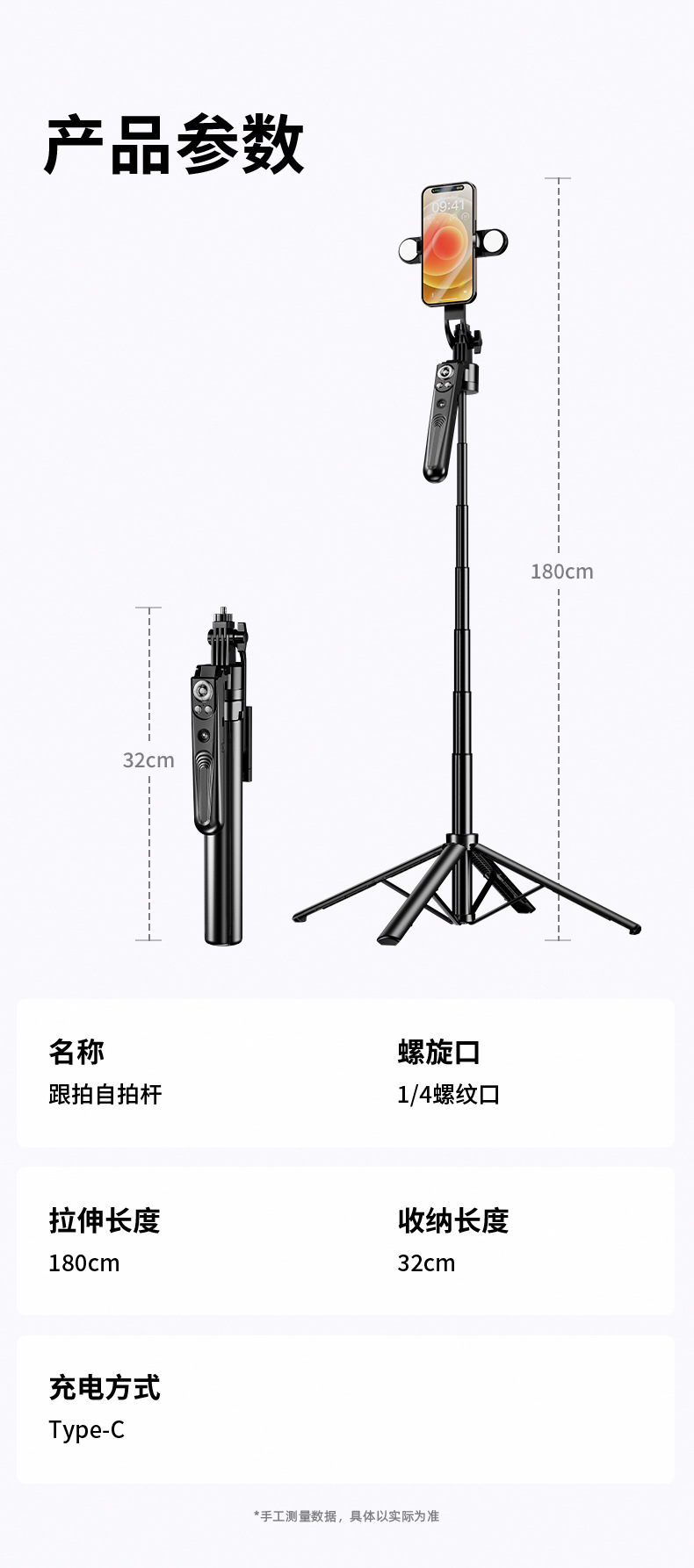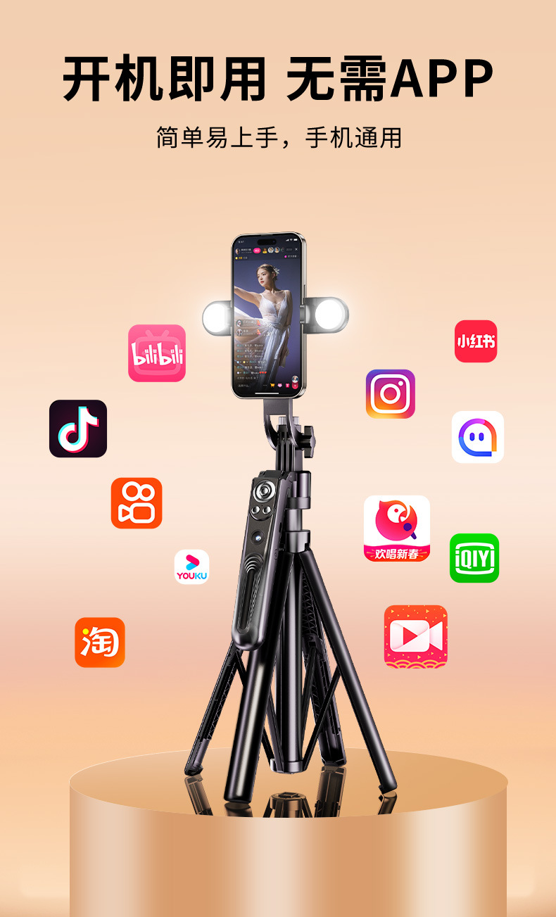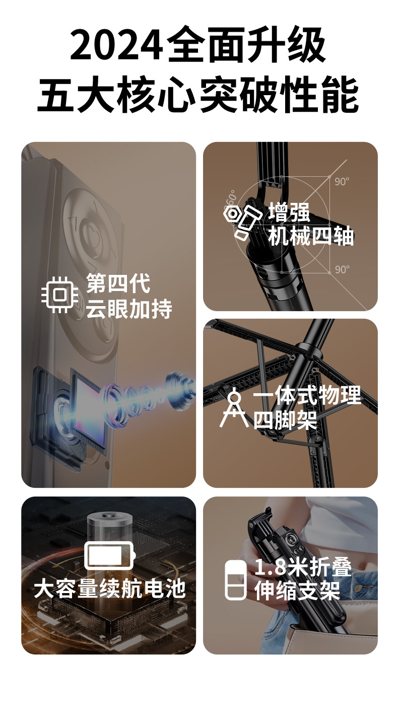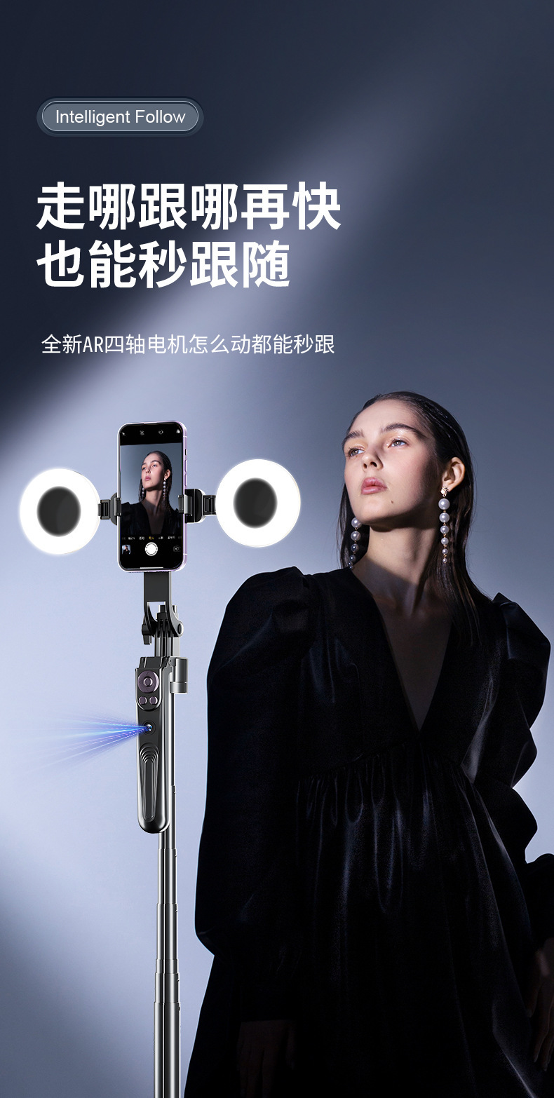 • 1.8m 검정색 AI 스마트 얼굴 추적 손떨림 방지 4축 항공 알루미늄 합금 + Douyin 충전