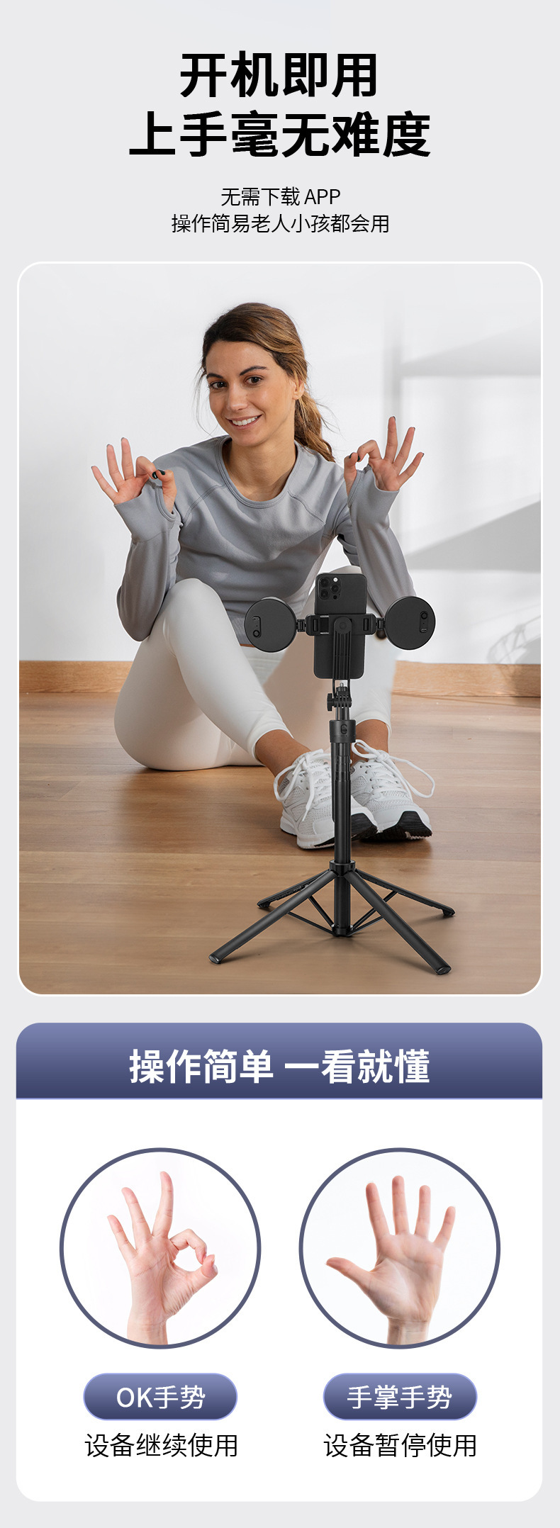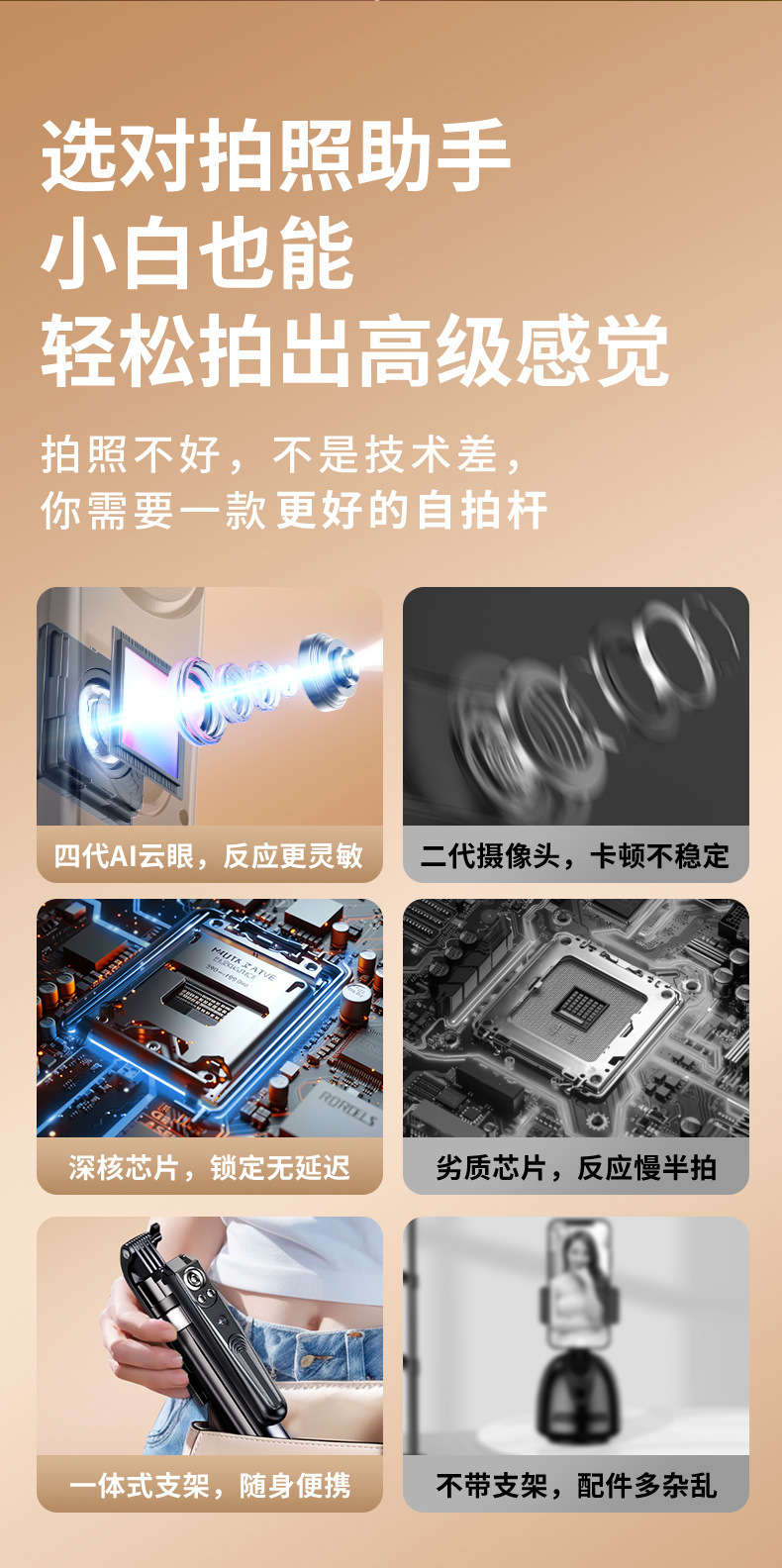 AI 스마트 후속 흔들림 방지 휴대 전화 김벌 안정제 휴대용 셀카 스틱 삼각대 브래킷 여행 휴대 전화 셀카 스틱스토어 가기