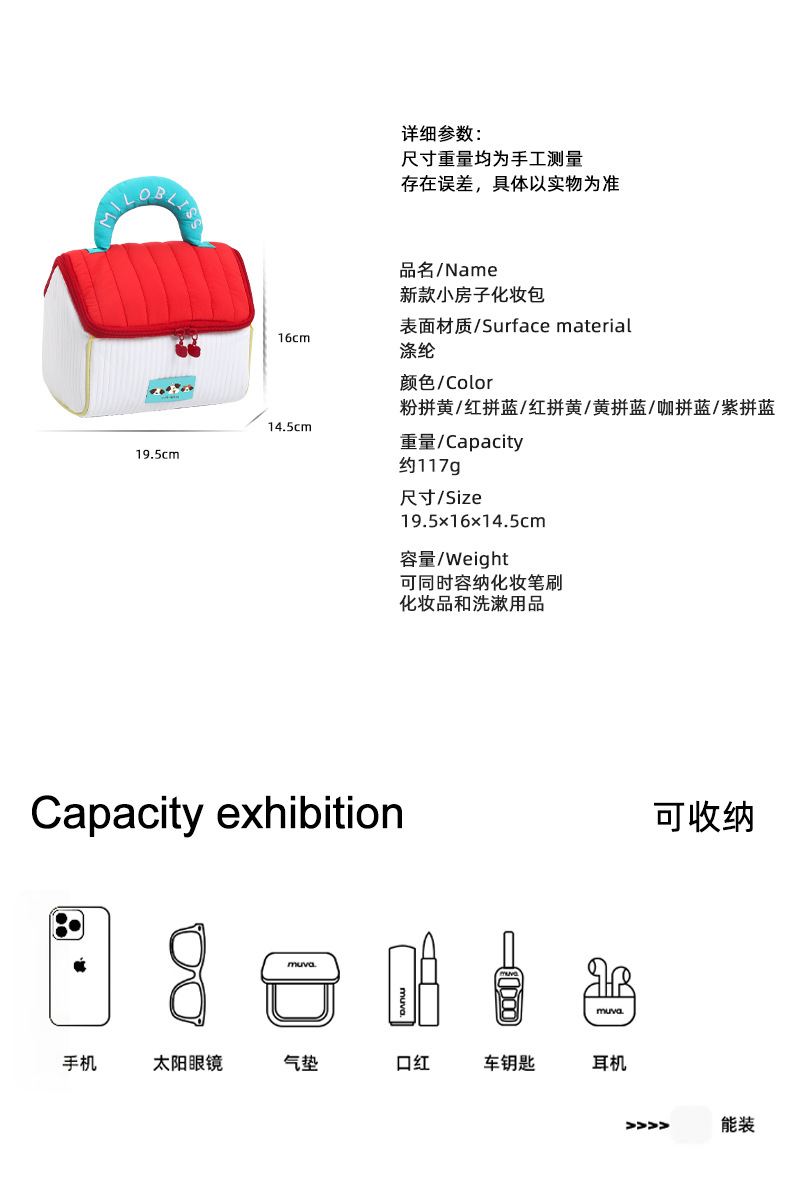오리지널 업그레이드 하우스 모양 화장품 가방 대용량 휴대용 세면도구 선물 수납 가방 (최소 주문 수량 1개)