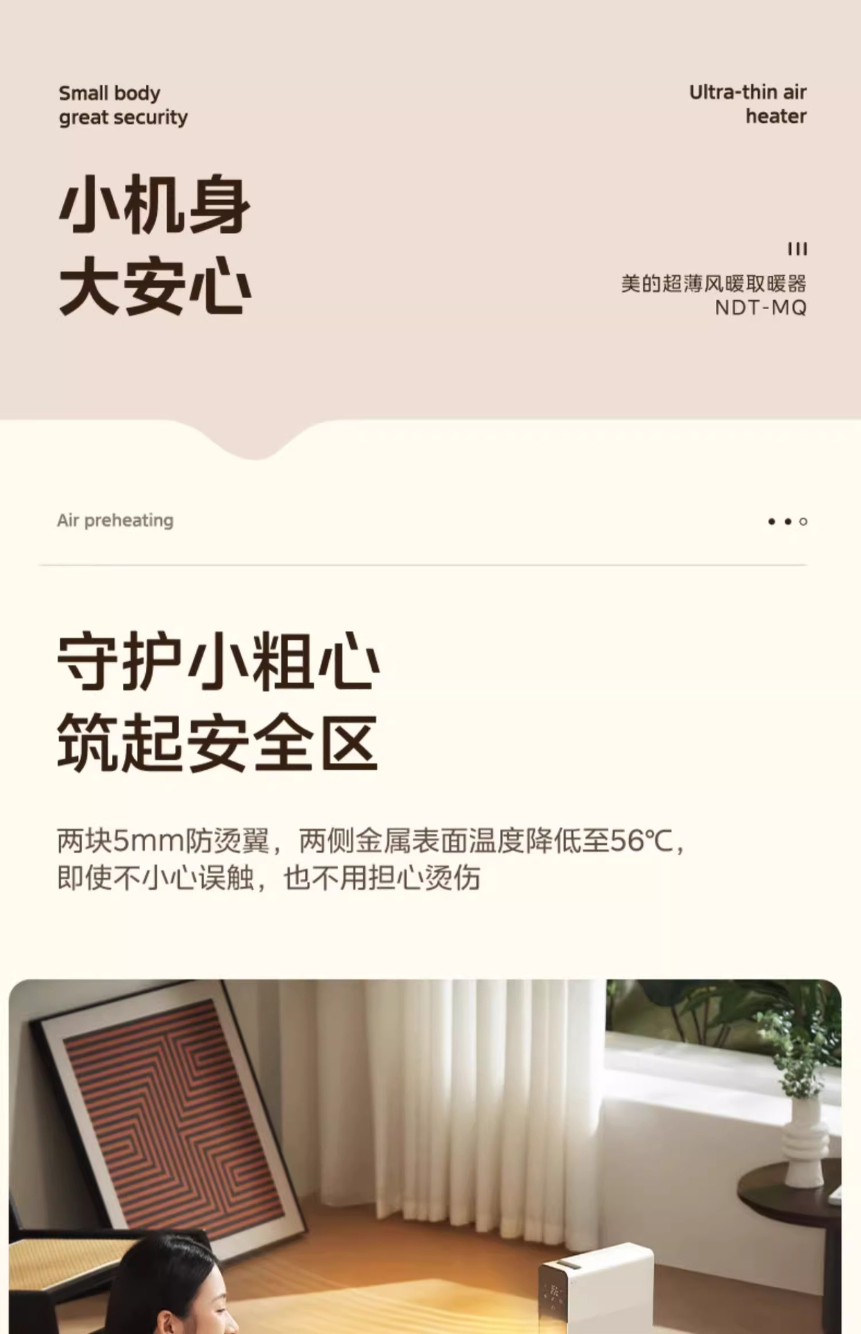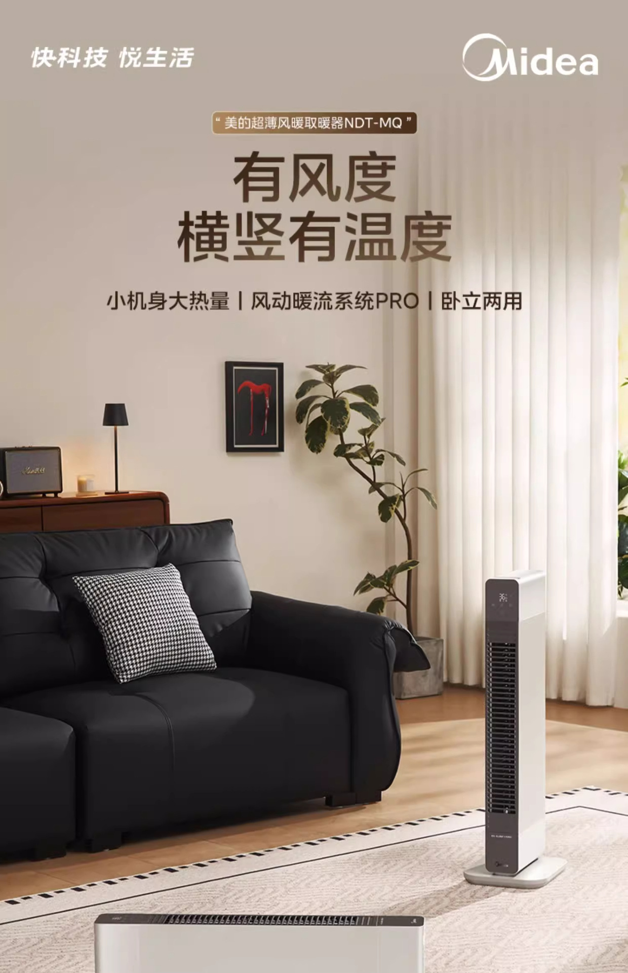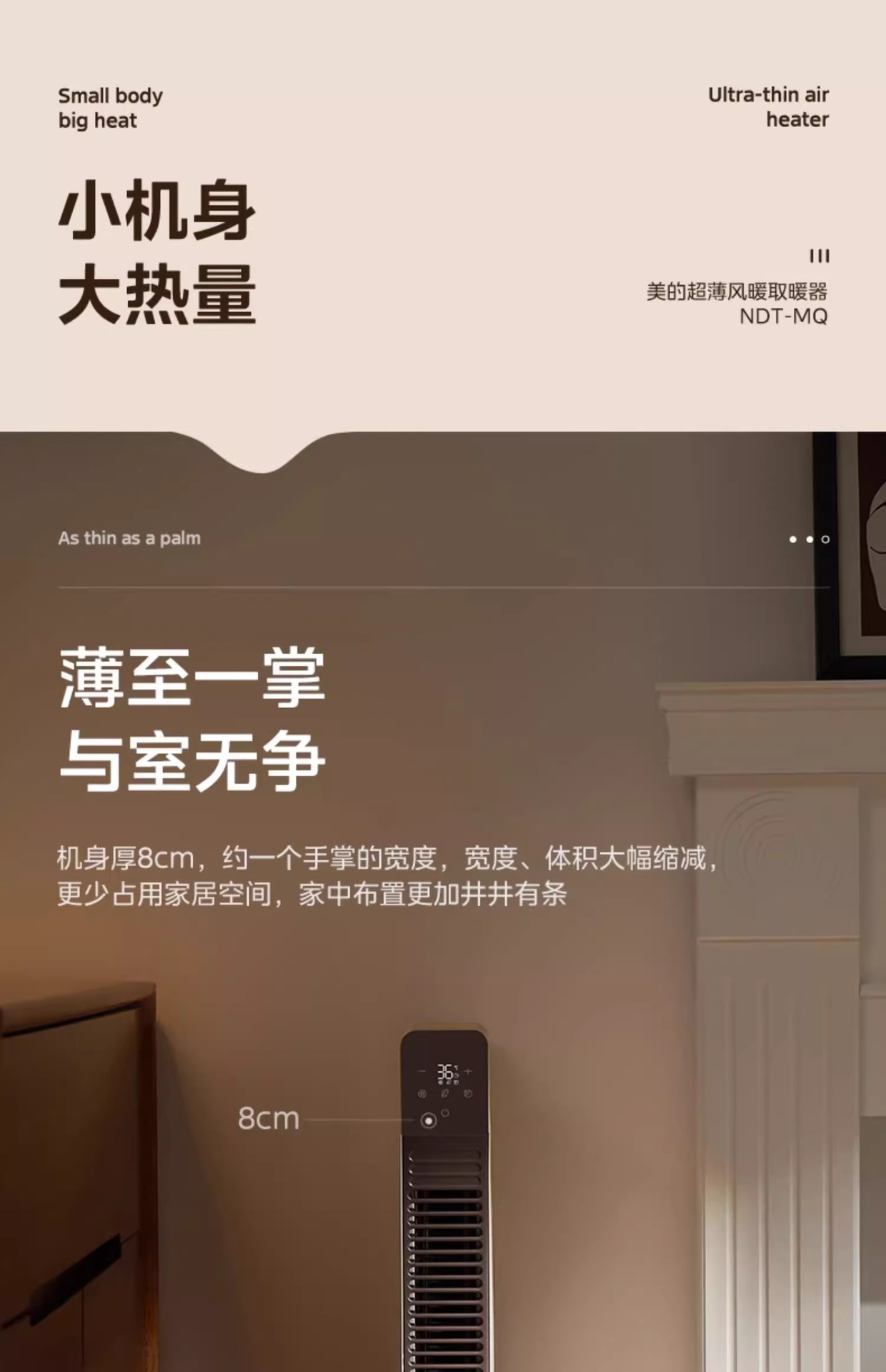 Midea 초박형 에어 히터 침실 거실 가정용 큰 지역 전기 절약 난방 고속 가열 배선스토어 가기