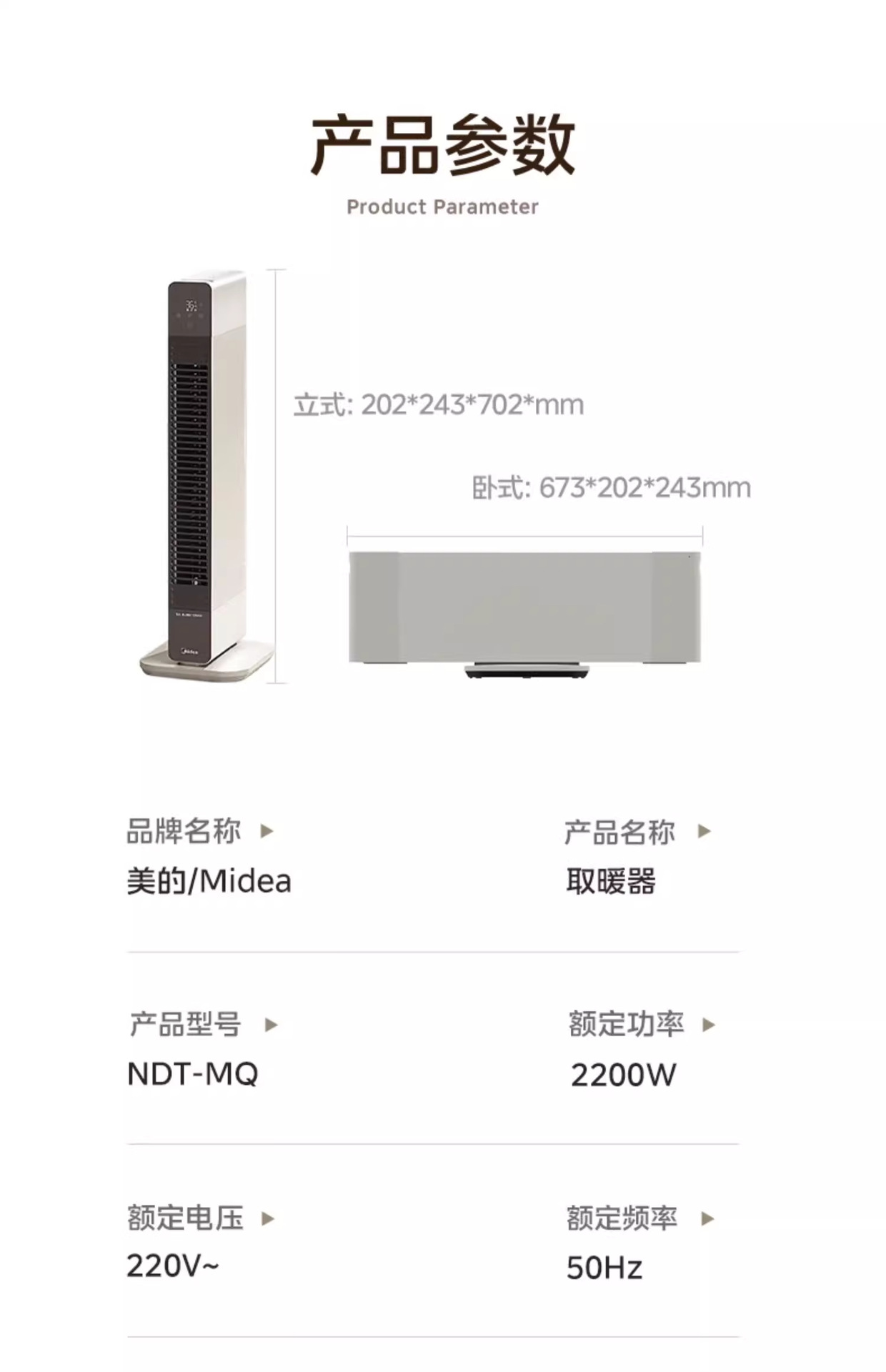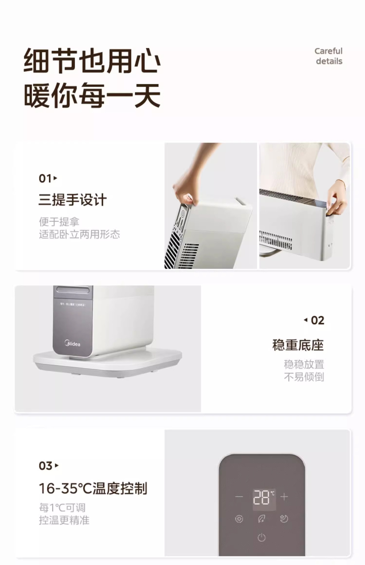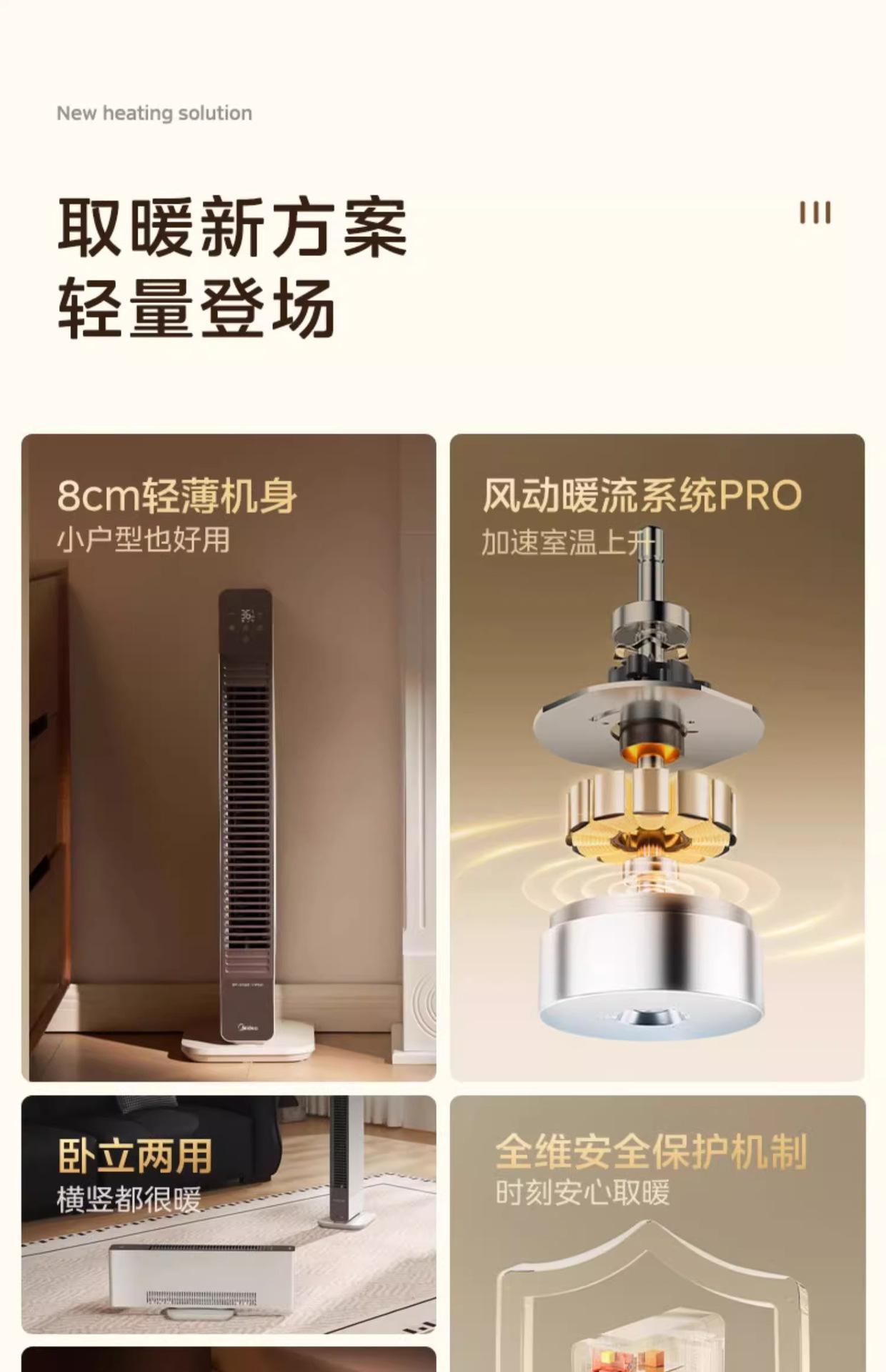 Midea 초박형 에어 히터 침실 거실 가정용 큰 지역 전기 절약 난방 고속 가열 배선스토어 가기