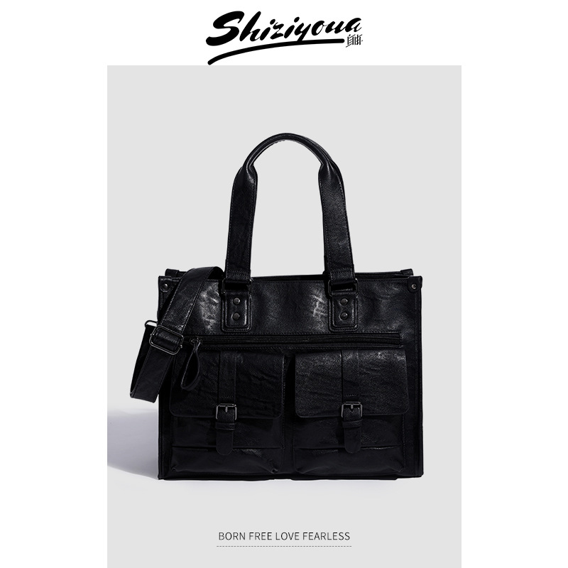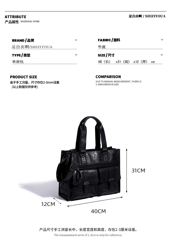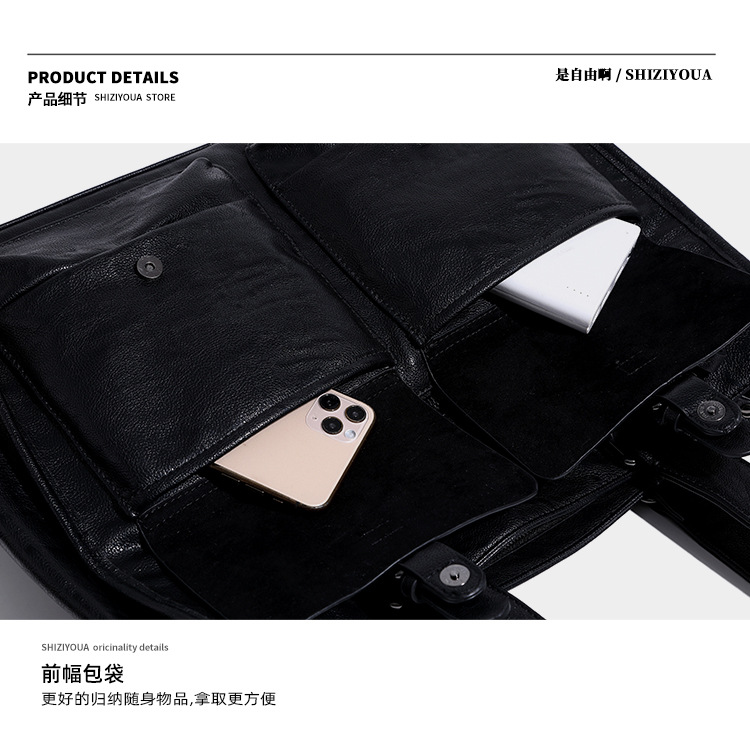 2024 새로운 남성 서류 가방 정품 가죽 캐주얼 컴퓨터 남성 가방 변호사 비즈니스 카우보이 어깨 크로스 바디 핸드백