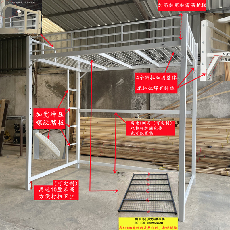 높은 침대 상층 낮은 빈 작은 아파트 단철 예술 다락방 높은 침대 낮은 빈 조합 침대 상하 침대스토어 가기