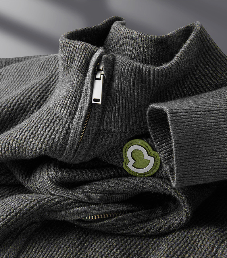 하이 엔드 가을과 겨울 두꺼운 따뜻한 지퍼 수직 칼라 재킷 스웨터 남성용 슬림 핏 트렌디 한 캐주얼 니트 카디건 남성