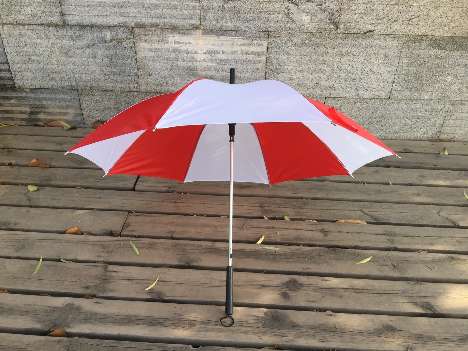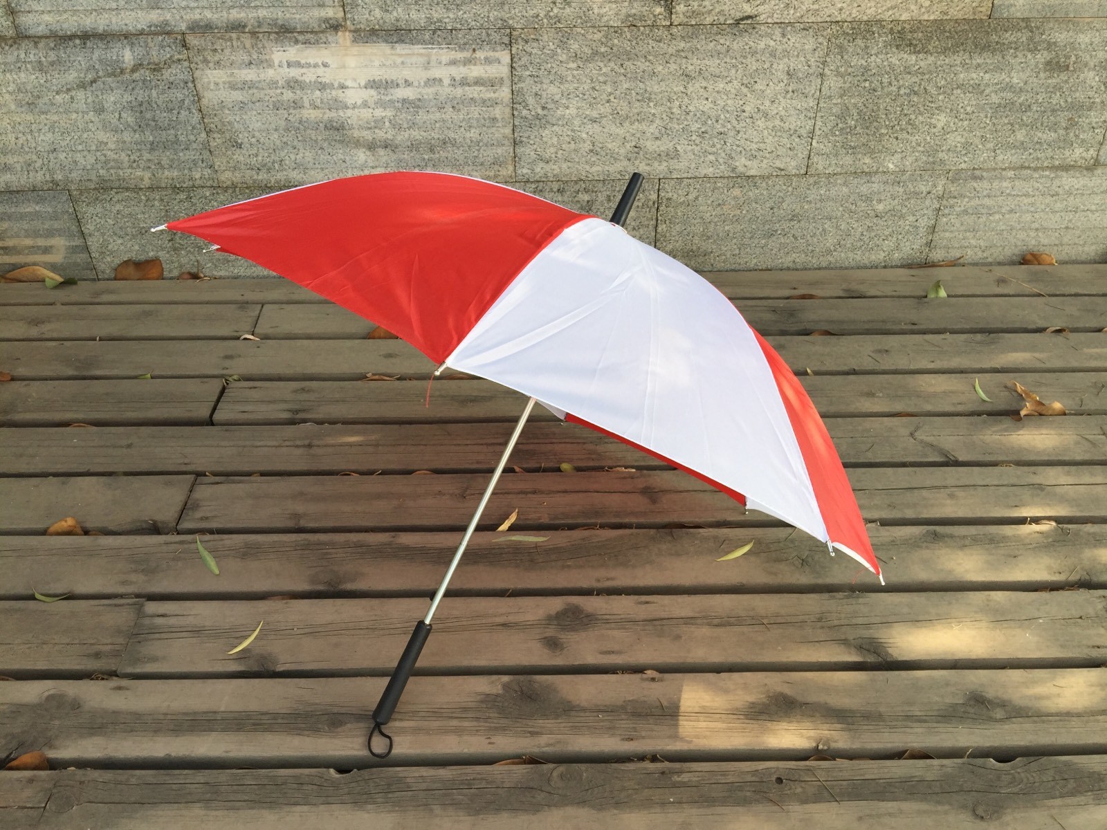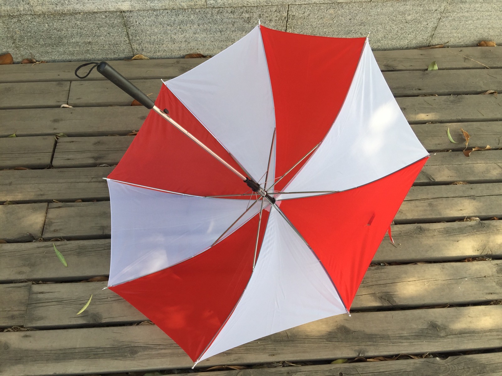 • 검은색 직선 손잡이 두꺼운 빨간색과 흰색 우산 직경 97cm