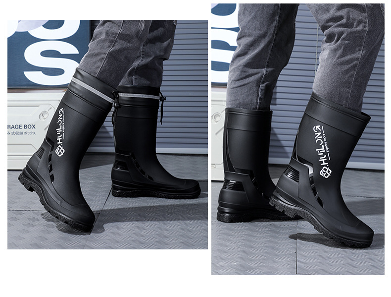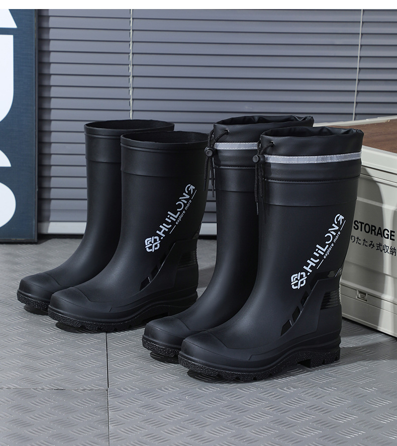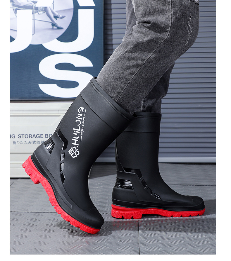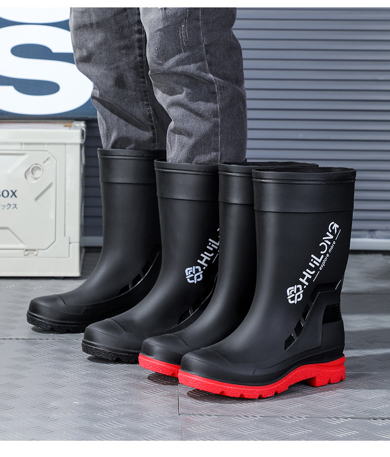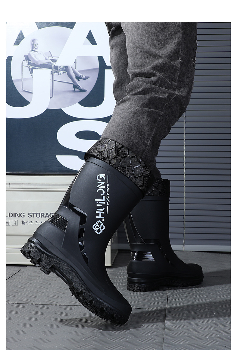유행하고 편안한 벨트 장화 남성용 중간 튜브 워터 부츠 사계절 외부 착용 작업 신발 자동차 세척 방수 미끄럼 방지 외주 장화스토어 가기