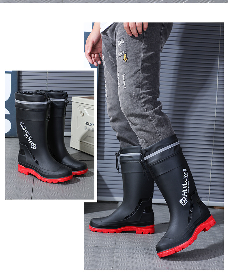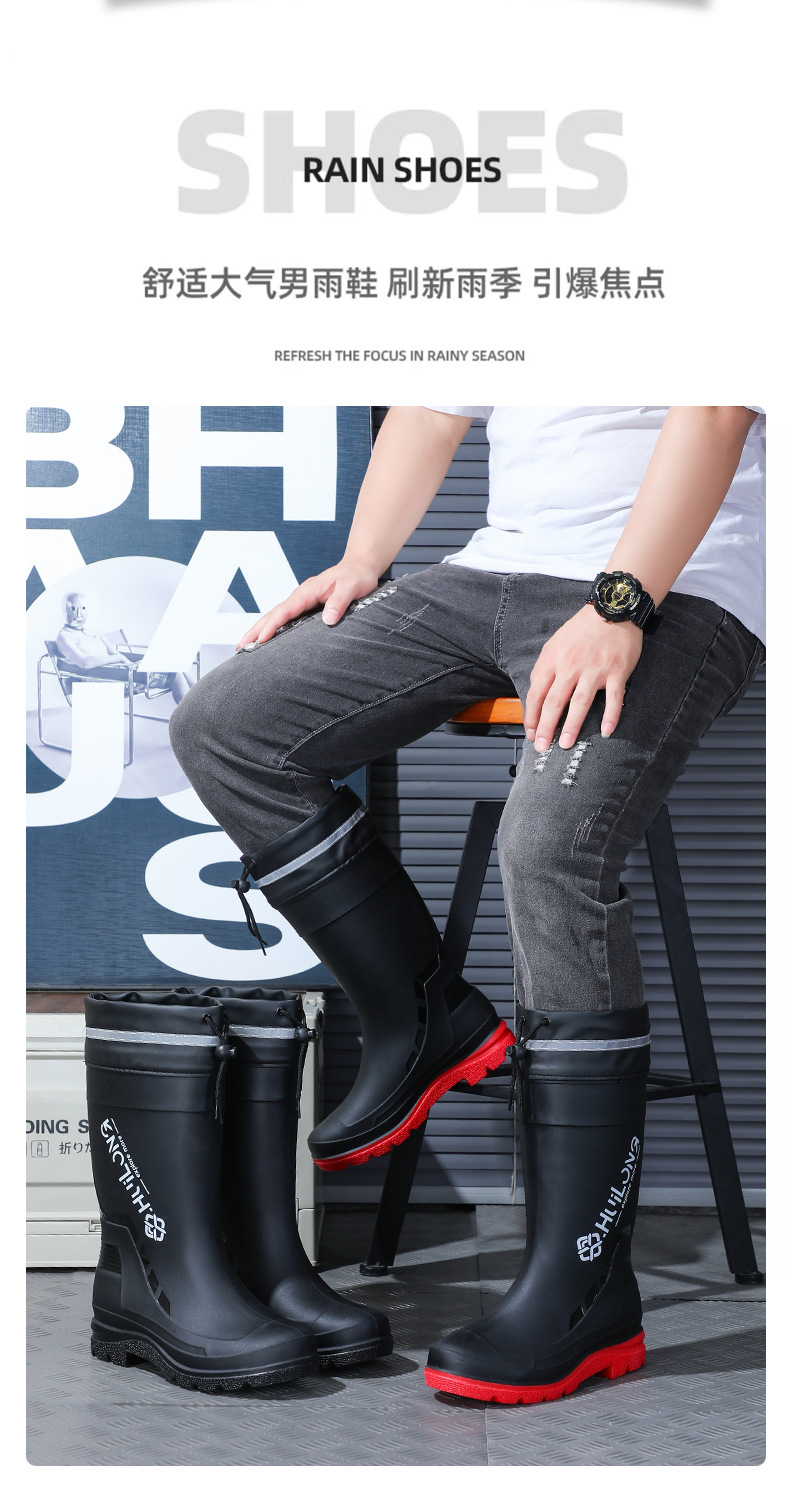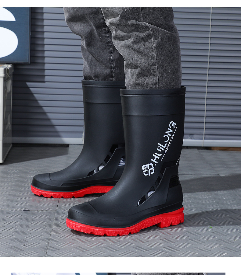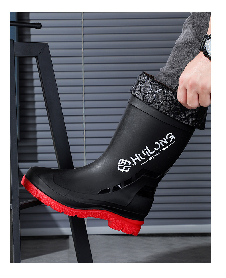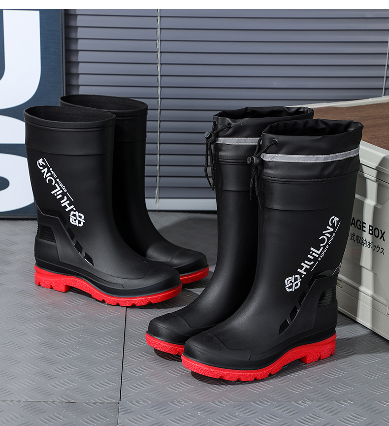 유행하고 편안한 벨트 장화 남성용 중간 튜브 워터 부츠 사계절 외부 착용 작업 신발 자동차 세척 방수 미끄럼 방지 외주 장화스토어 가기