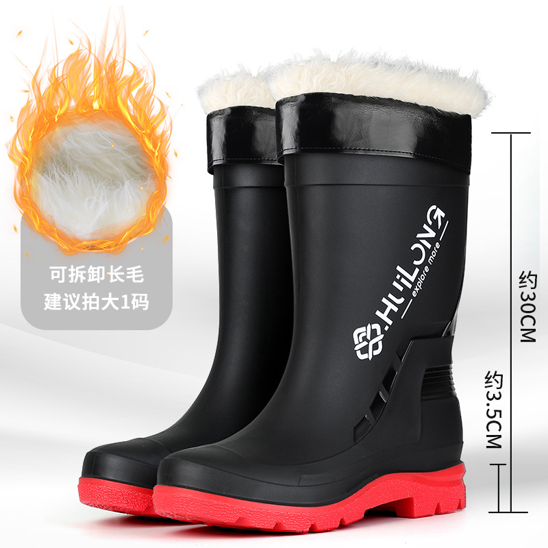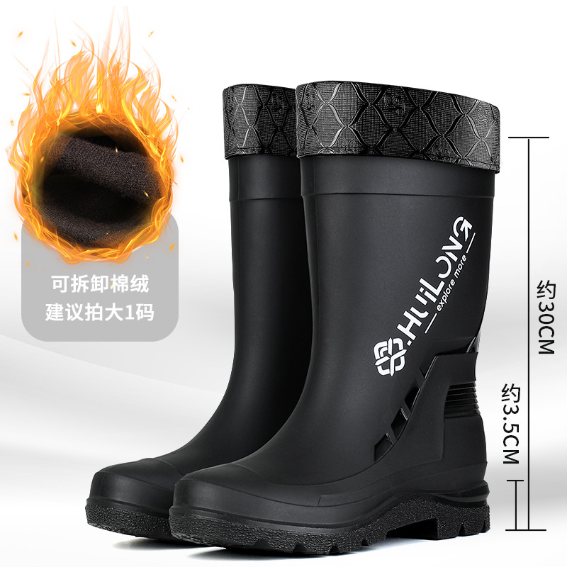 유행하고 편안한 벨트 장화 남성용 중간 튜브 워터 부츠 사계절 외부 착용 작업 신발 자동차 세척 방수 미끄럼 방지 외주 장화