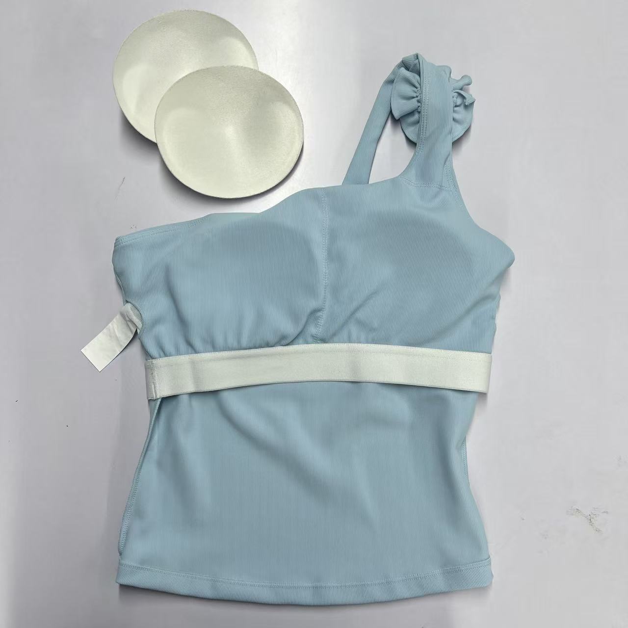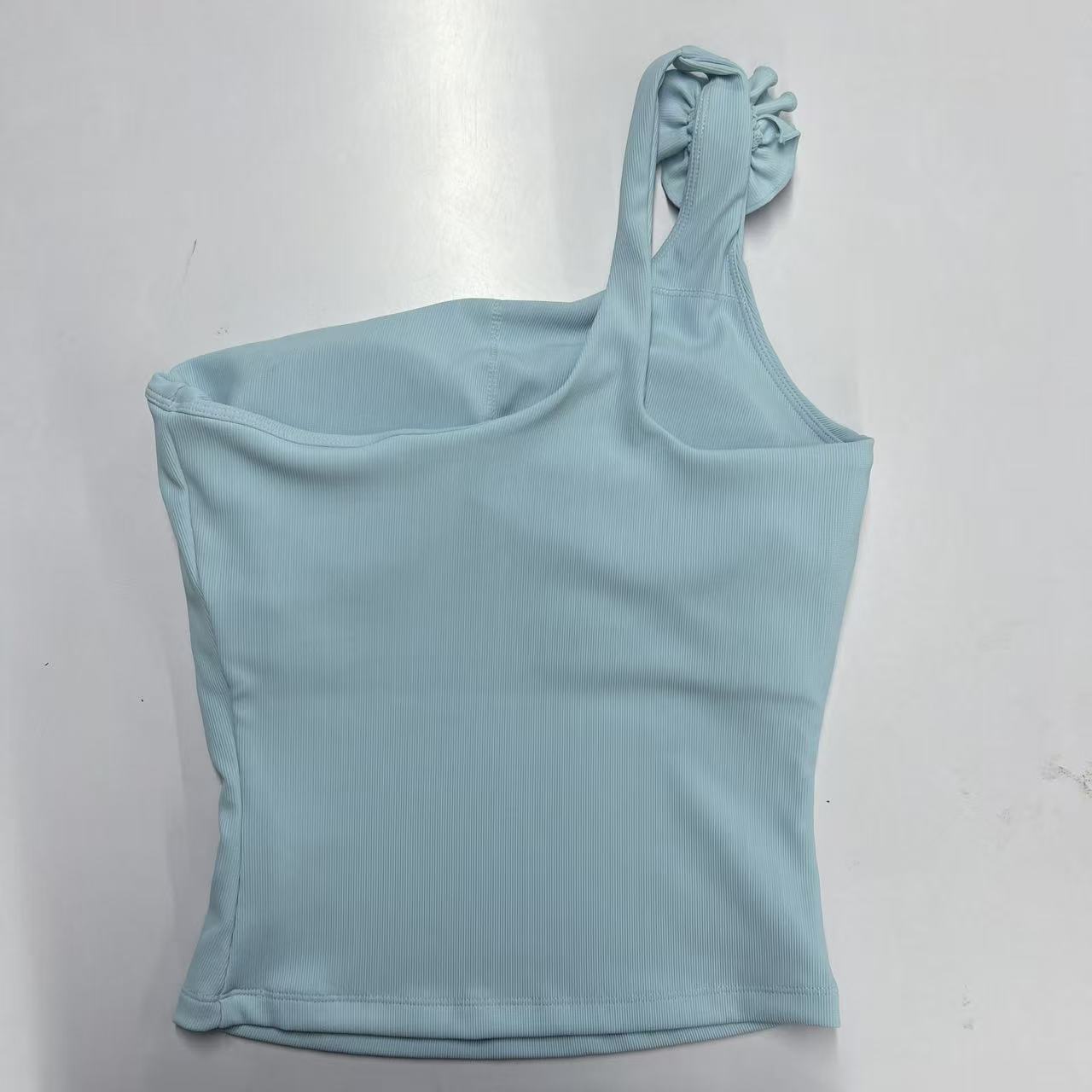 새로운 캐주얼 원숄더 스포츠 탑 슬림핏 다용도 요가복 조끼 스타일 사이클링 트레이닝 끈나시 피트니스 타이트스토어 가기
