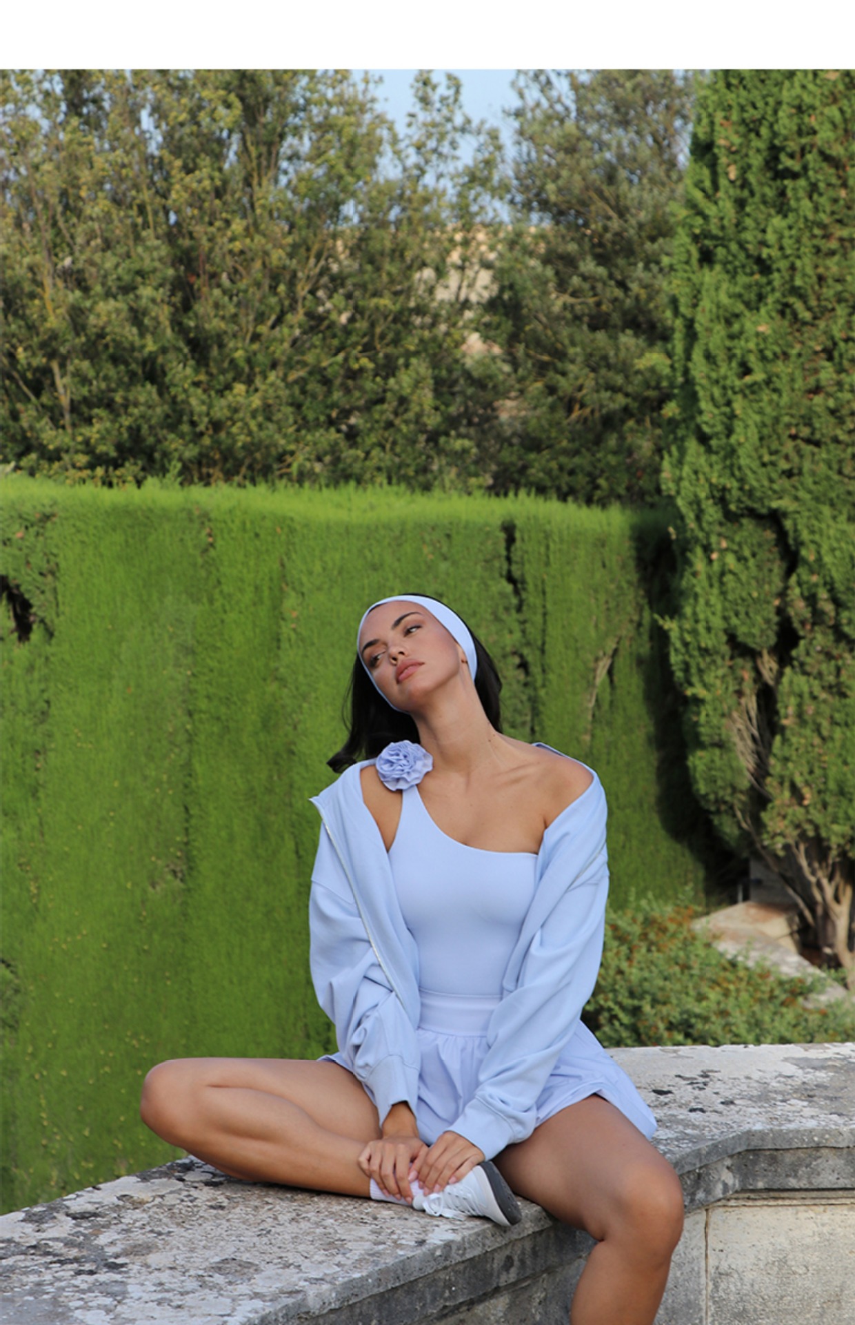 • 소프트 핑크 블루 V 웨이스트 팬츠