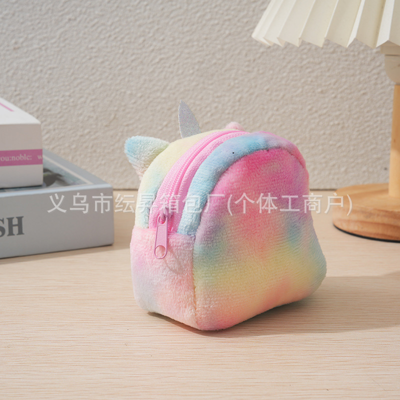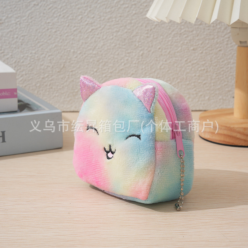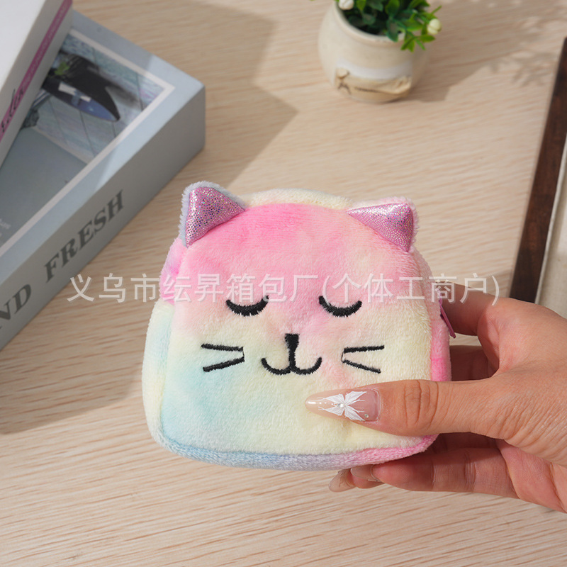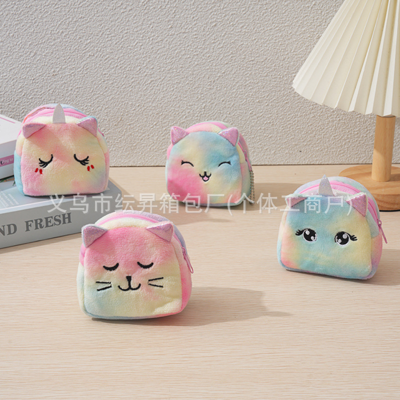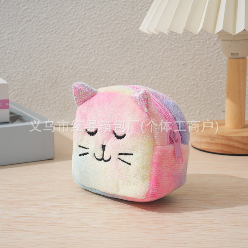 도매 플러시 동전 지갑 그라데이션 화려한 색상 어린이 가방 귀여운 자수 소품 초경량 수납 가방 미니 소녀용스토어 가기