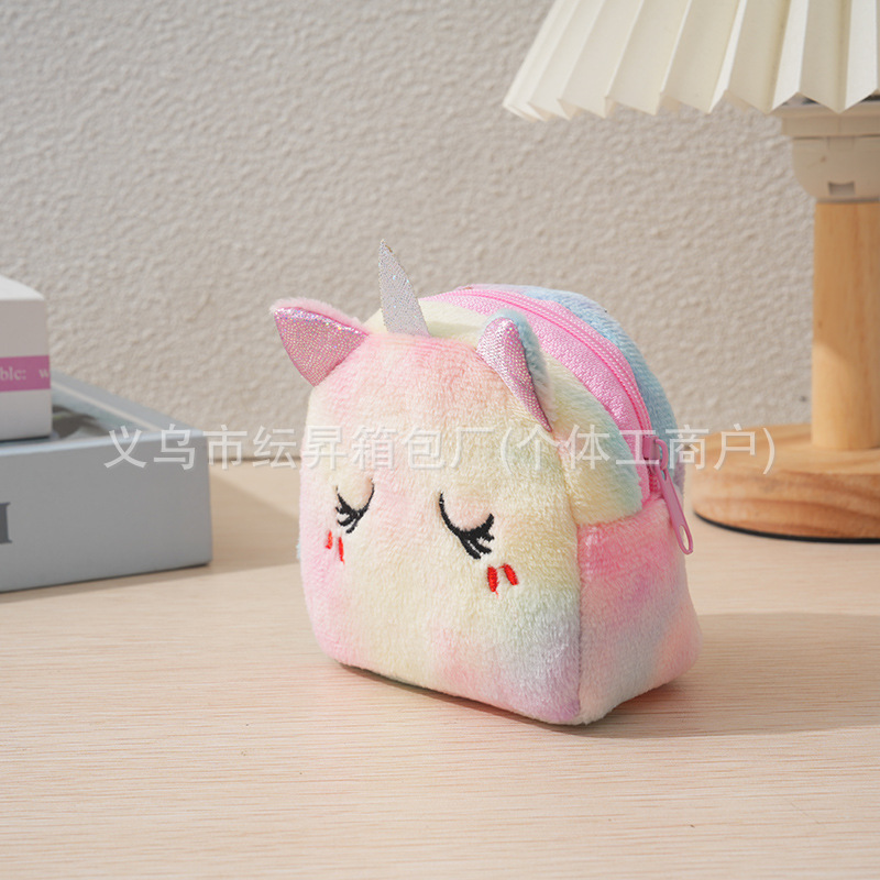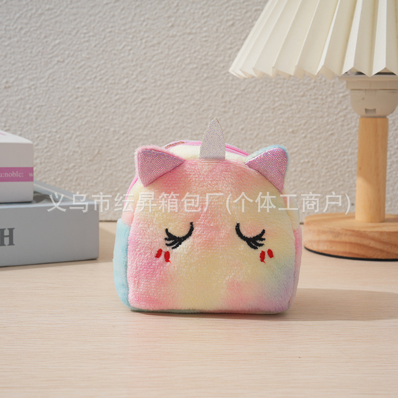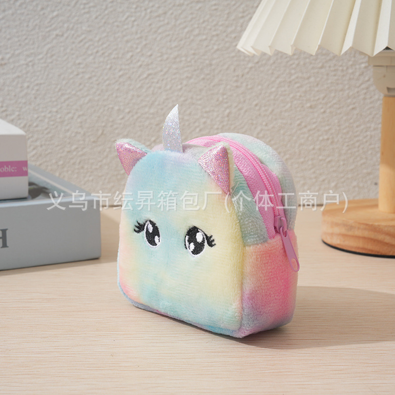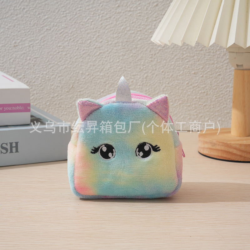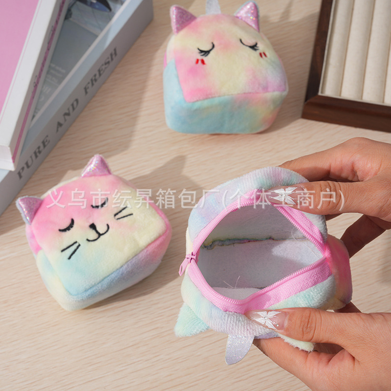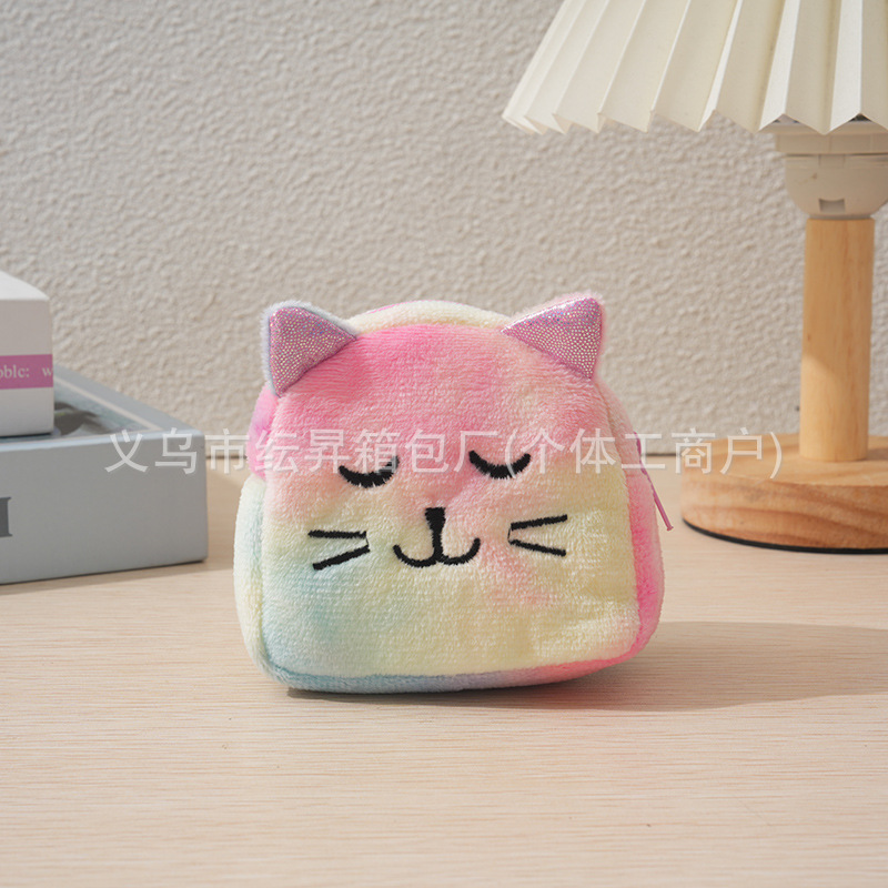 도매 플러시 동전 지갑 그라데이션 화려한 색상 어린이 가방 귀여운 자수 소품 초경량 수납 가방 미니 소녀용스토어 가기