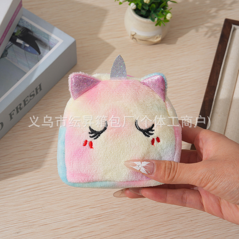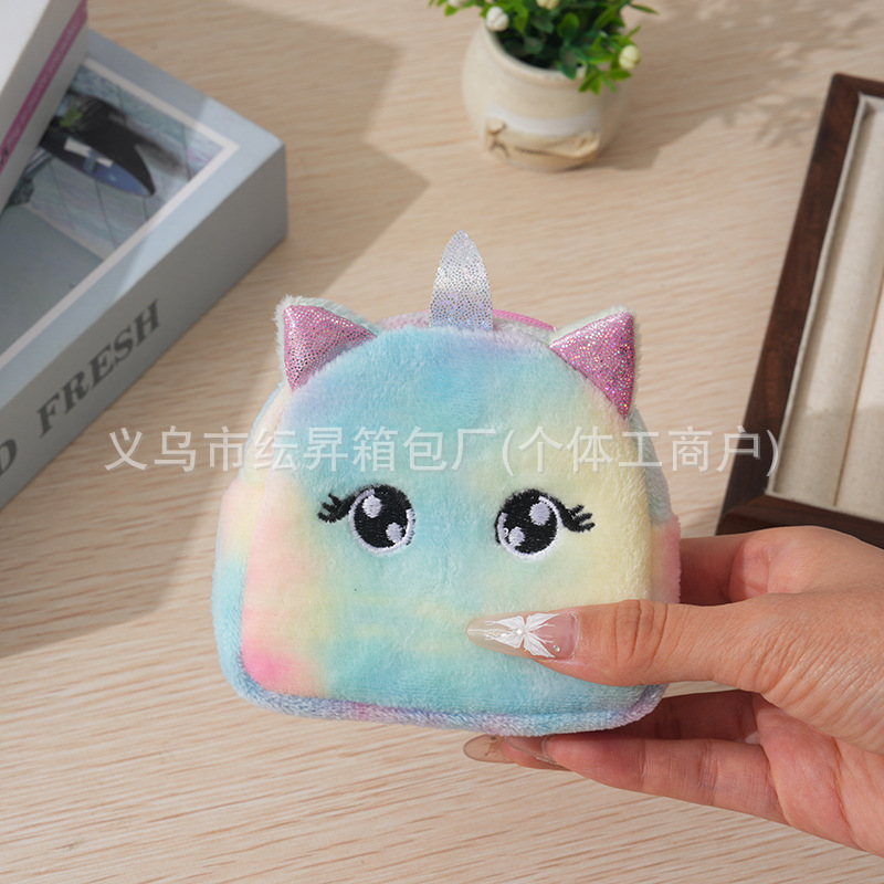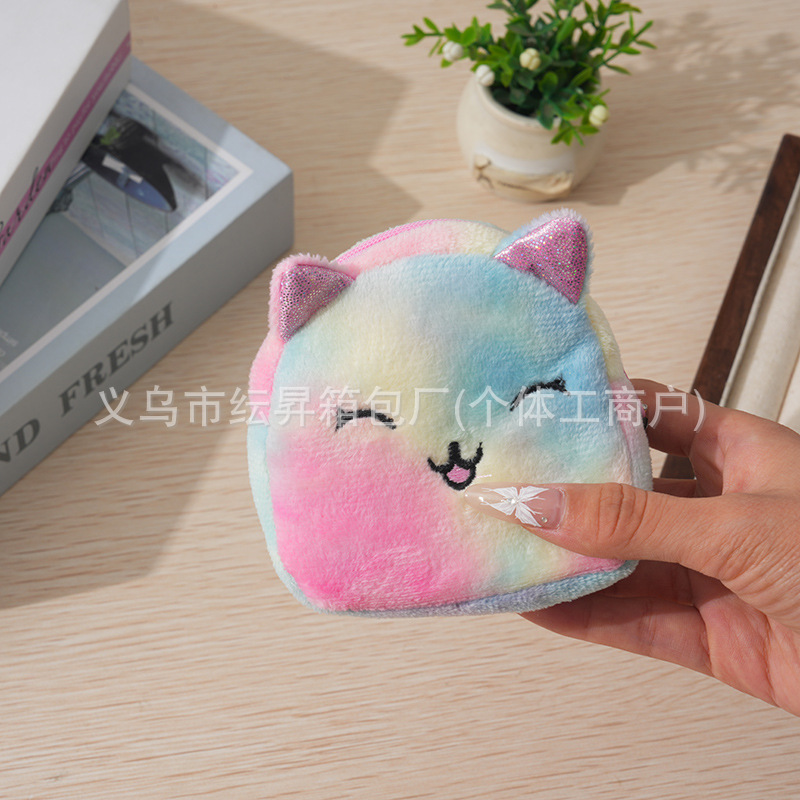 도매 플러시 동전 지갑 그라데이션 화려한 색상 어린이 가방 귀여운 자수 소품 초경량 수납 가방 미니 소녀용