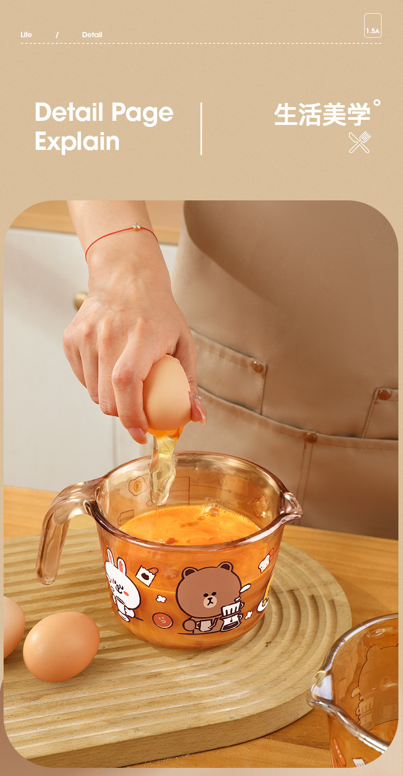 라인 과일 유리 측정 컵 저울 높은 온도 저항 가정용 식품 등급 주방 베이킹 계란 측정 컵