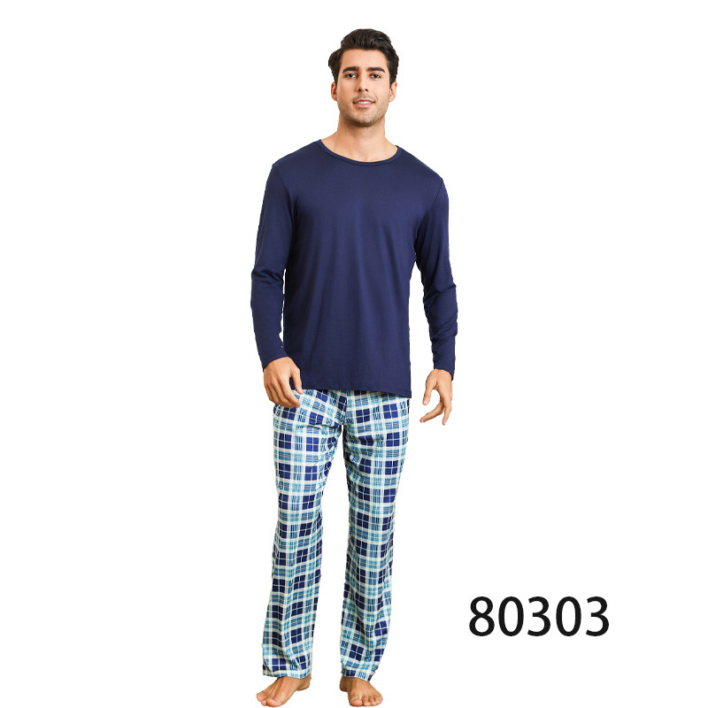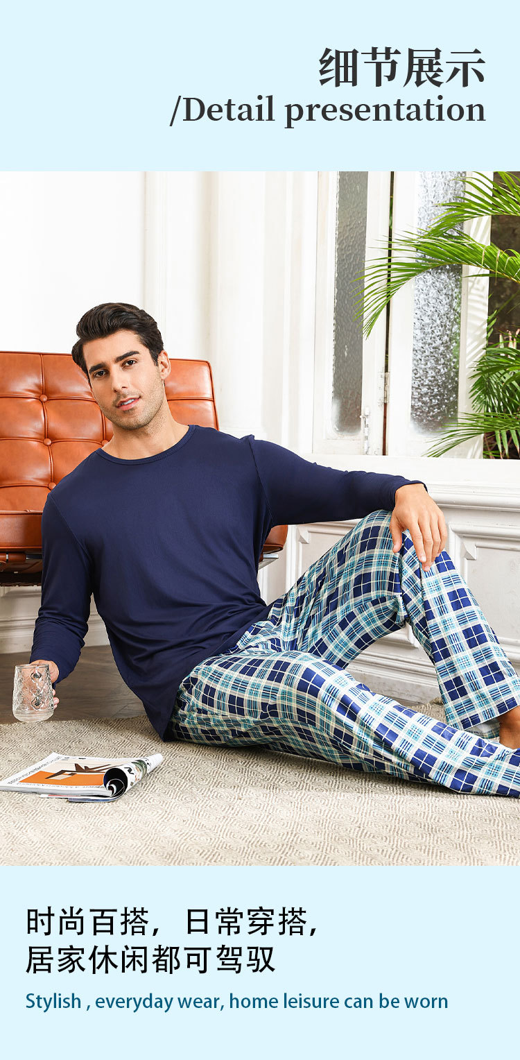 남성용 가을 겨울 잠옷, 새로운 스타일, 부드럽고 착용 가능, 트렌디한 격자 무늬 프린트 긴팔 바지, 남성용 홈웨어 세트