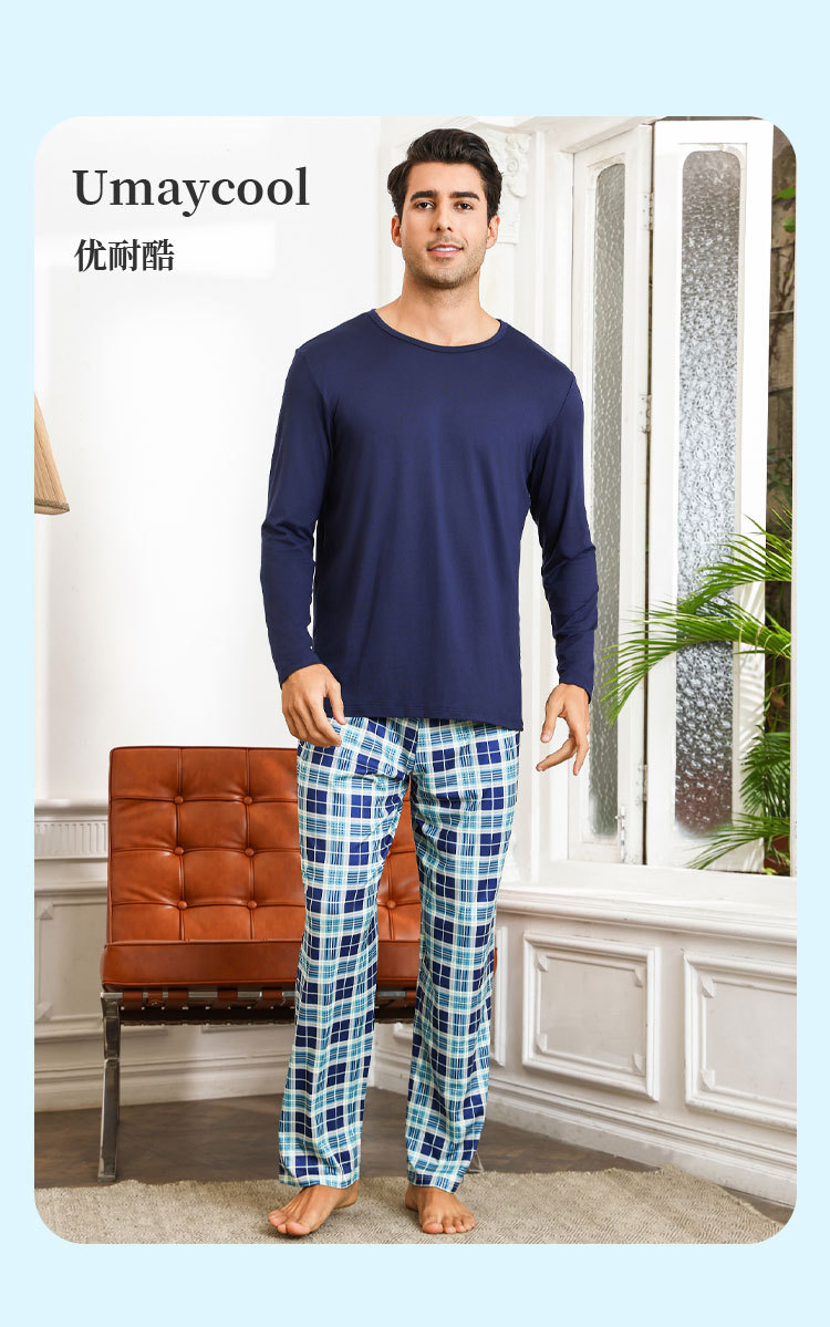 남성용 가을 겨울 잠옷, 새로운 스타일, 부드럽고 착용 가능, 트렌디한 격자 무늬 프린트 긴팔 바지, 남성용 홈웨어 세트스토어 가기