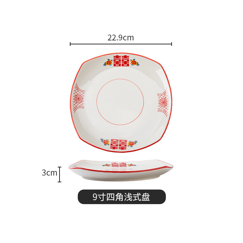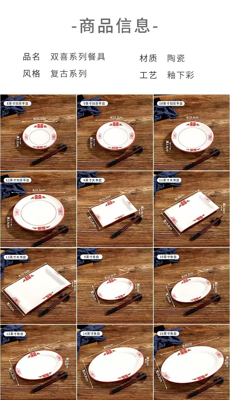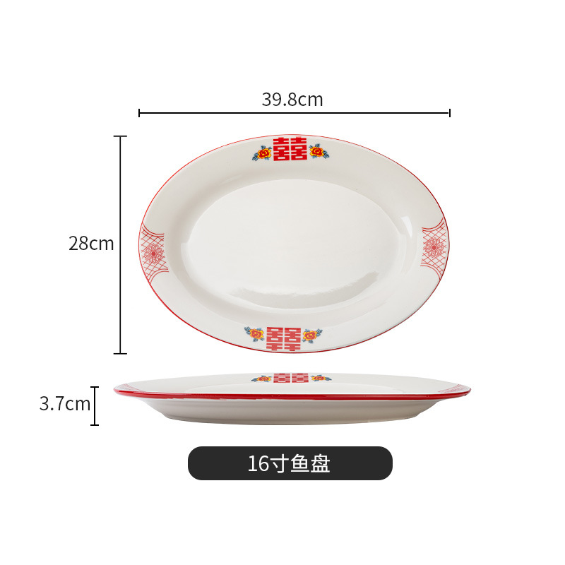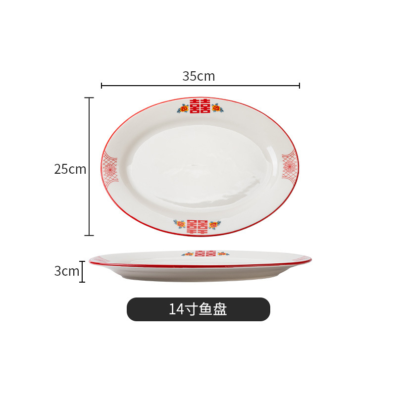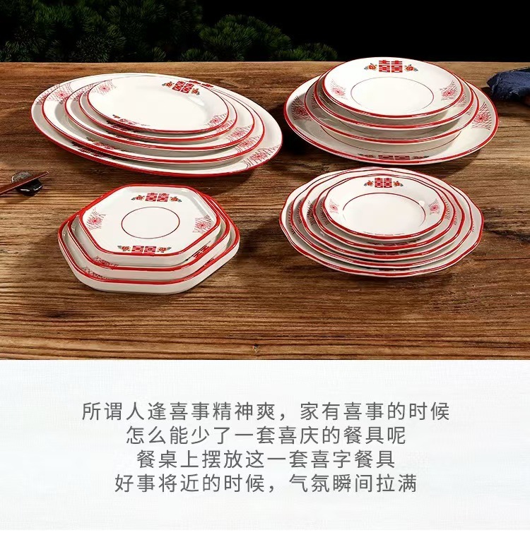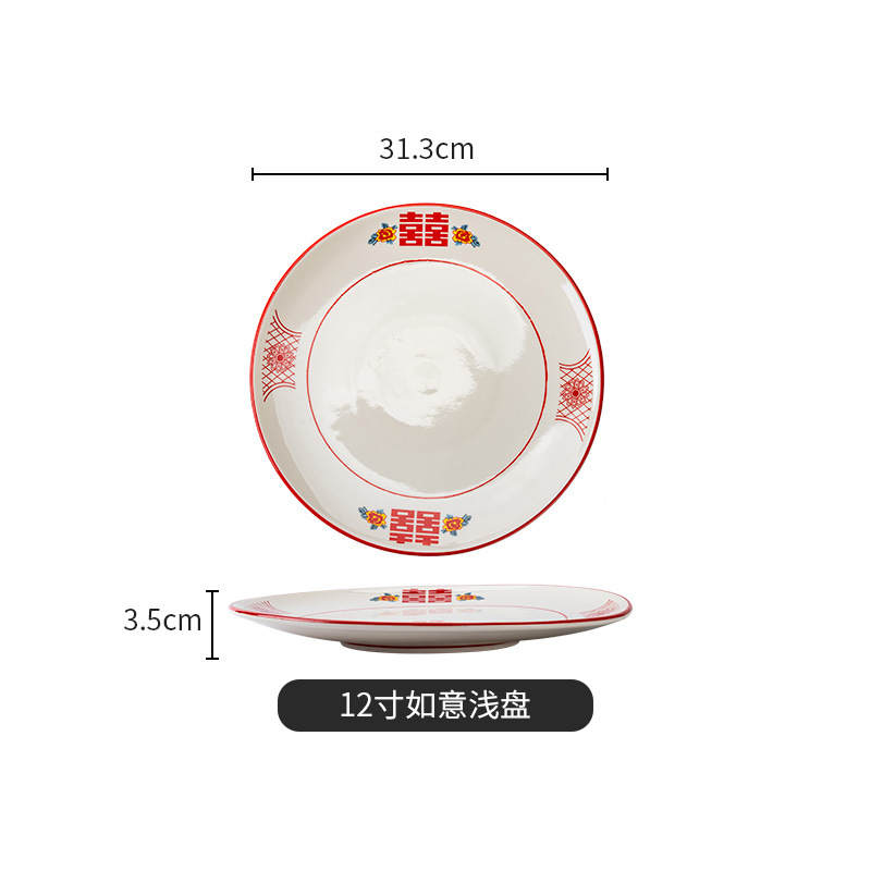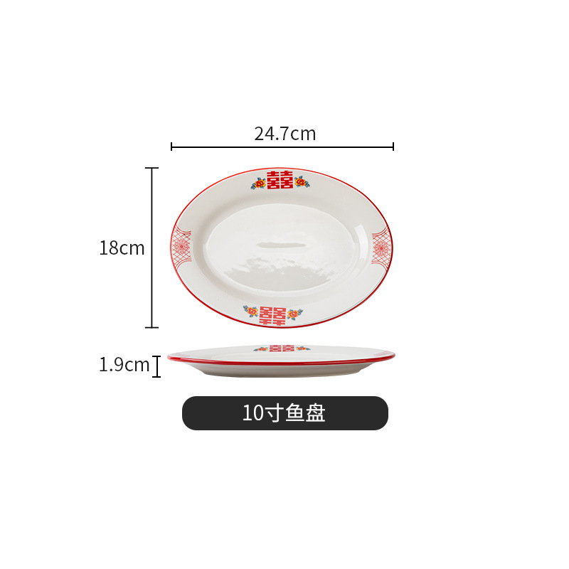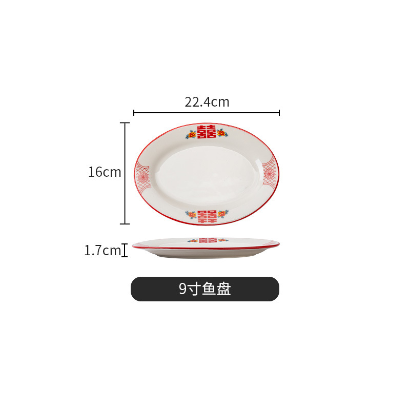 세라믹 빈티지 레드 더블 행복 플레이트 뜨거운 냄비 접시 고기 접시 소스 플레이트 얕은 플레이트 플랫 플레이트 생선 접시 레스토랑 식기스토어 가기