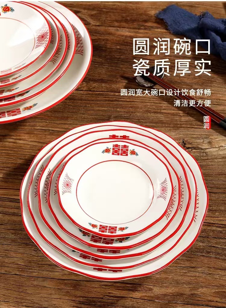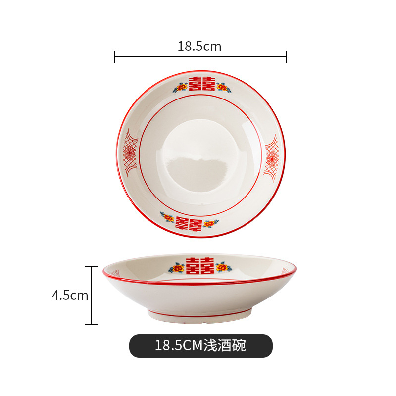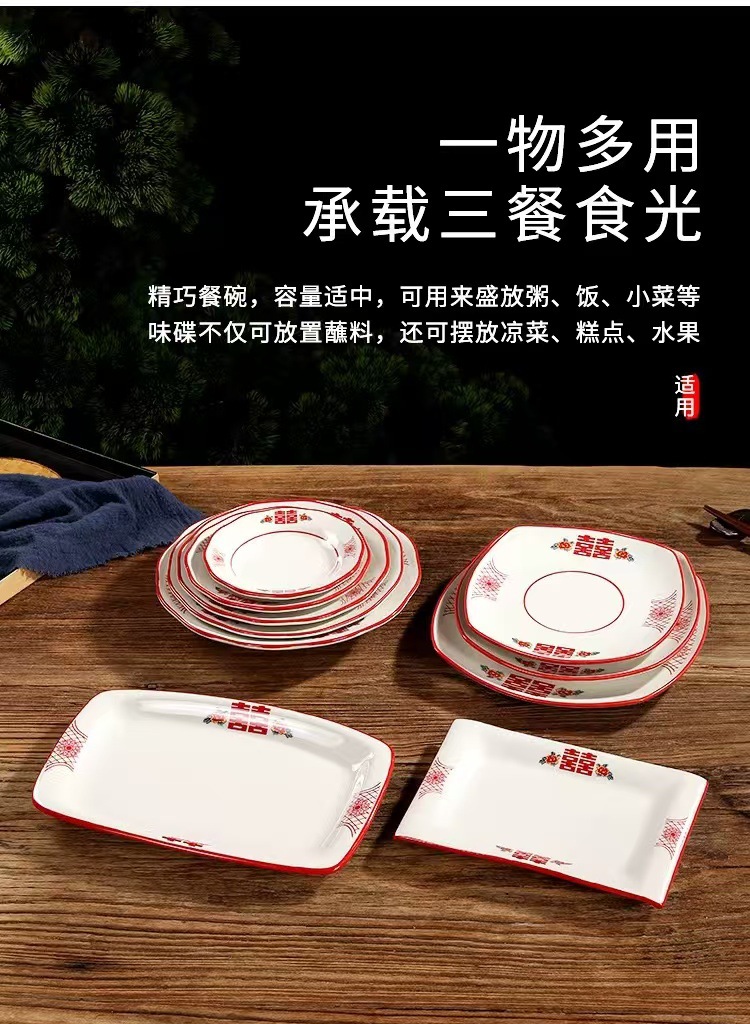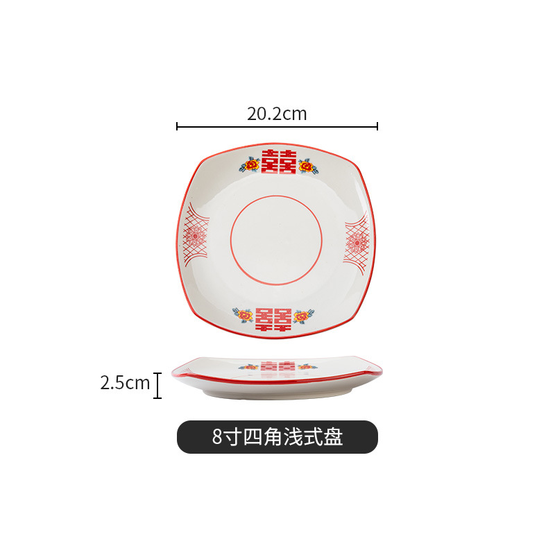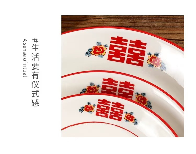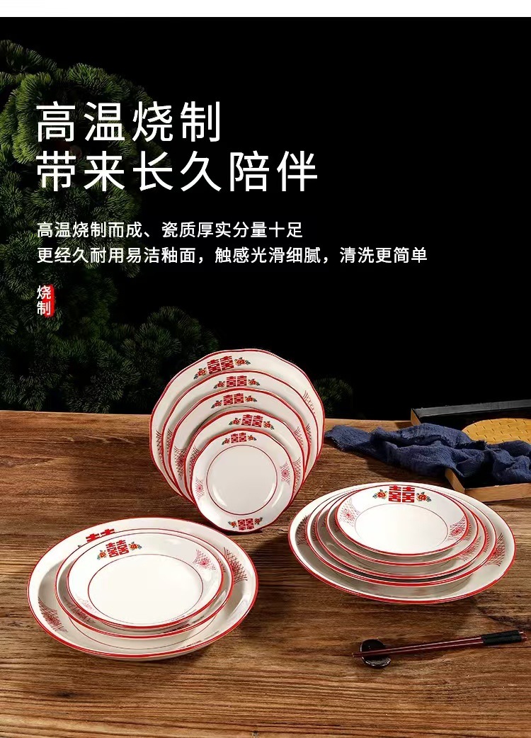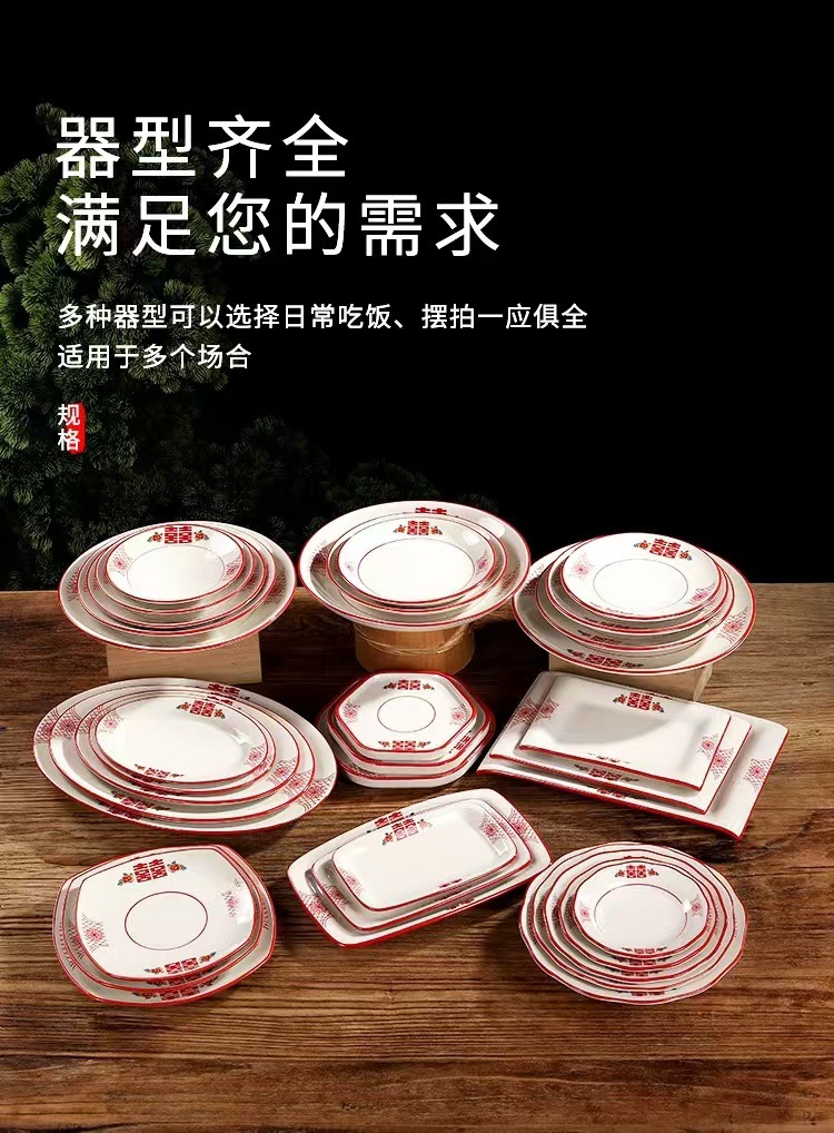 세라믹 빈티지 레드 더블 행복 플레이트 뜨거운 냄비 접시 고기 접시 소스 플레이트 얕은 플레이트 플랫 플레이트 생선 접시 레스토랑 식기스토어 가기