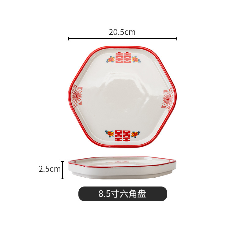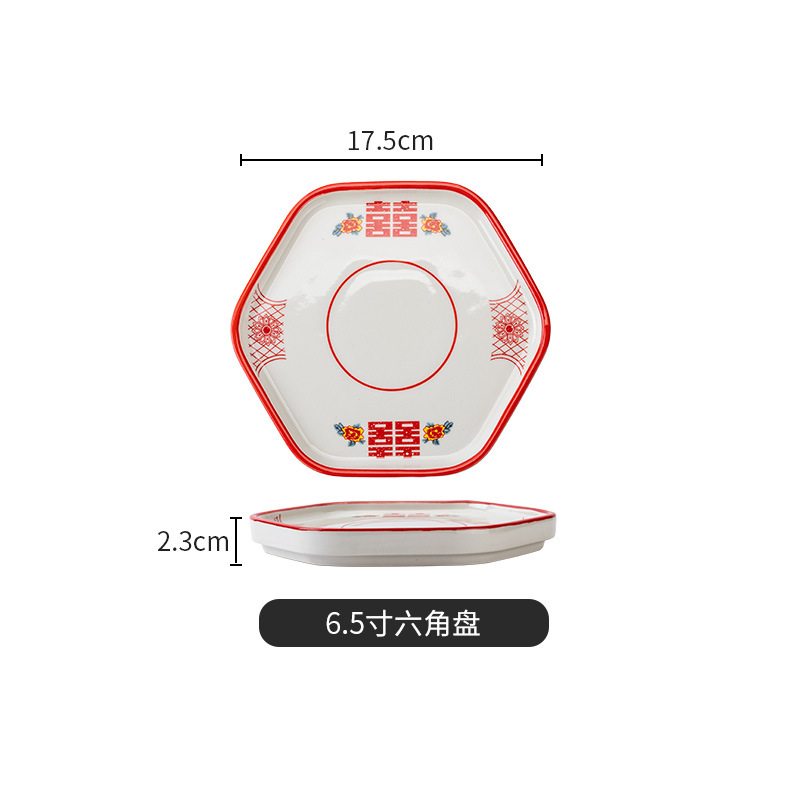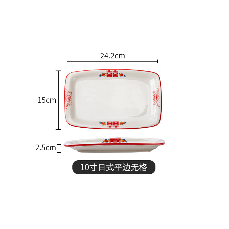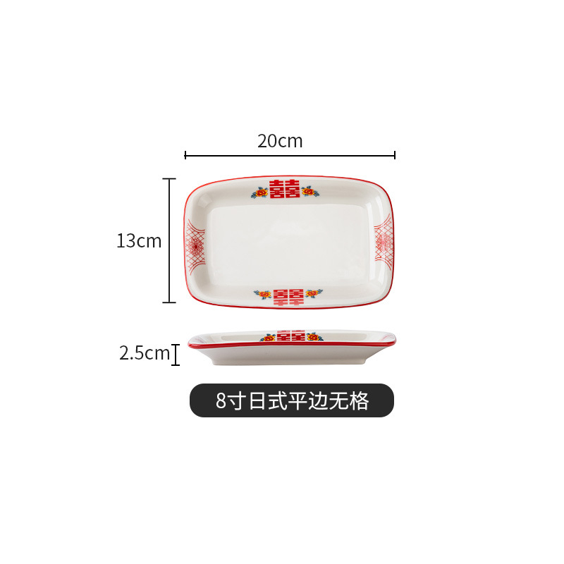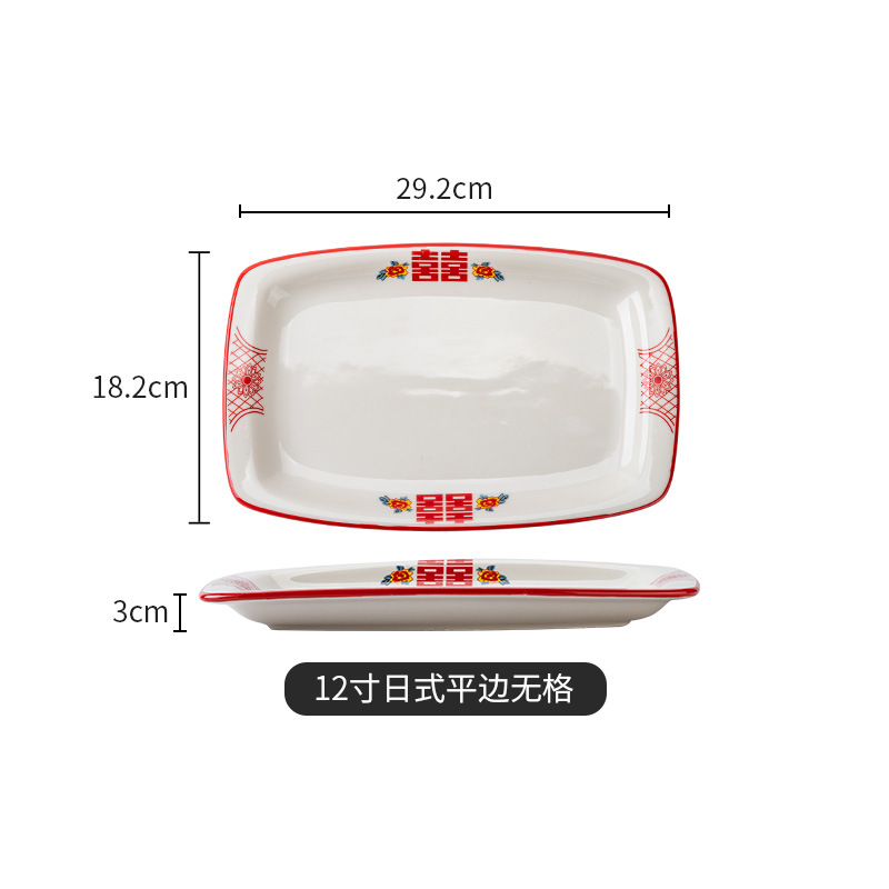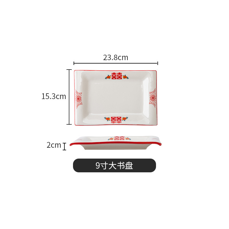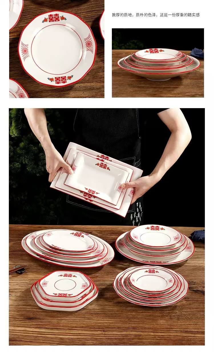 세라믹 빈티지 레드 더블 행복 플레이트 뜨거운 냄비 접시 고기 접시 소스 플레이트 얕은 플레이트 플랫 플레이트 생선 접시 레스토랑 식기