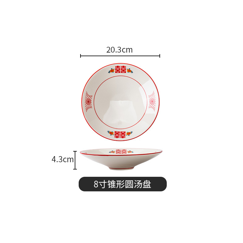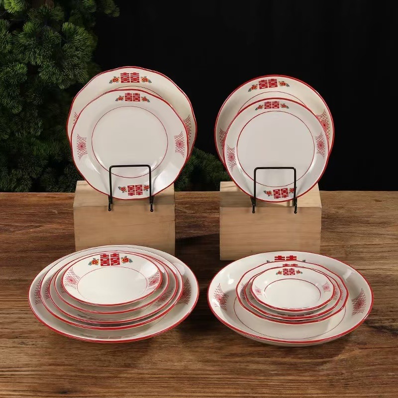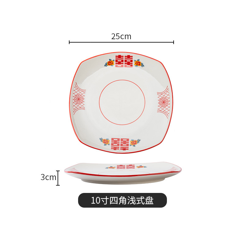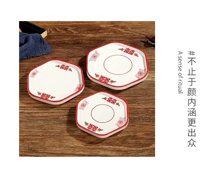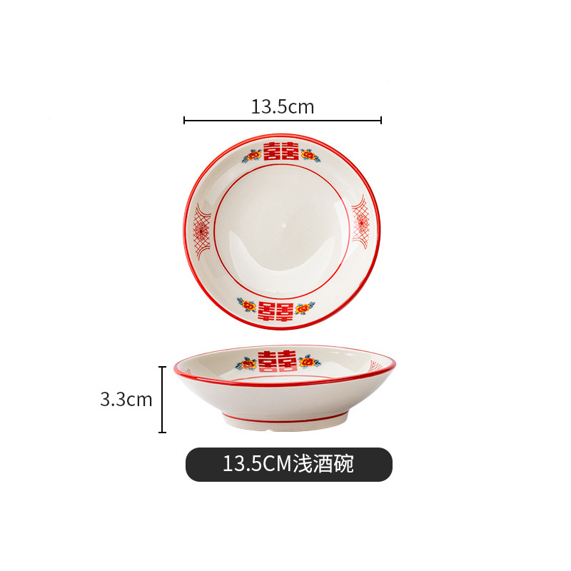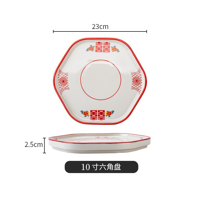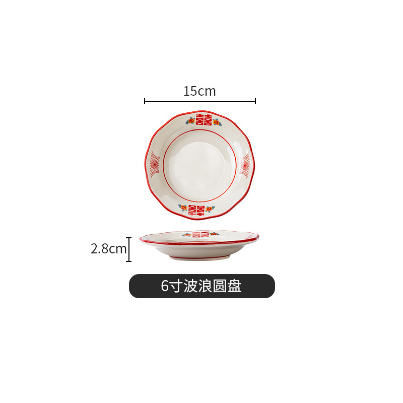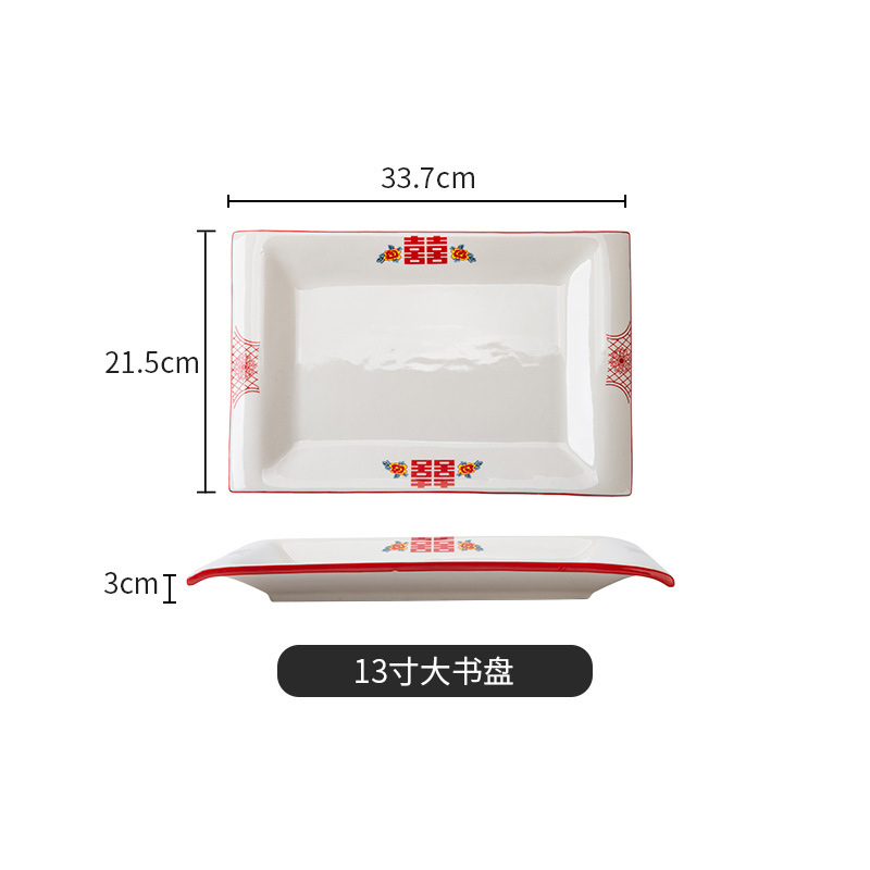 세라믹 빈티지 레드 더블 행복 플레이트 뜨거운 냄비 접시 고기 접시 소스 플레이트 얕은 플레이트 플랫 플레이트 생선 접시 레스토랑 식기