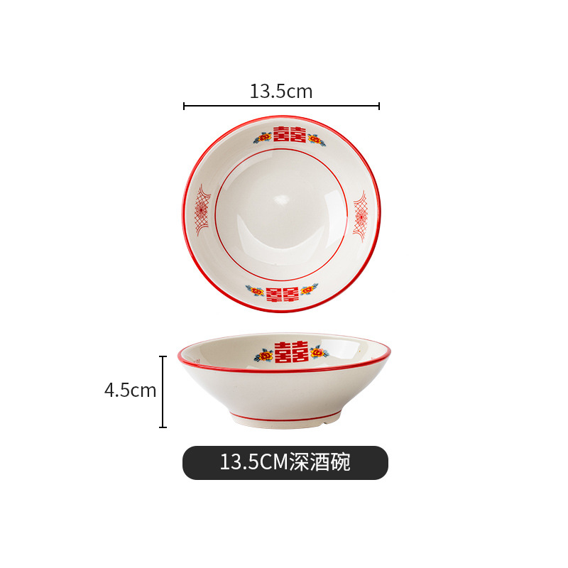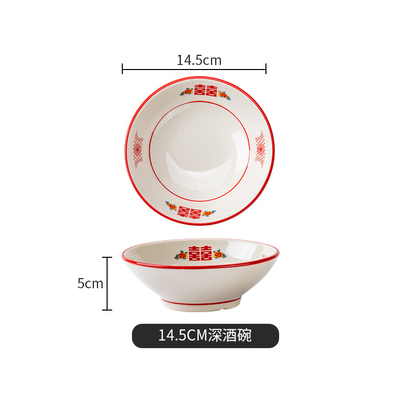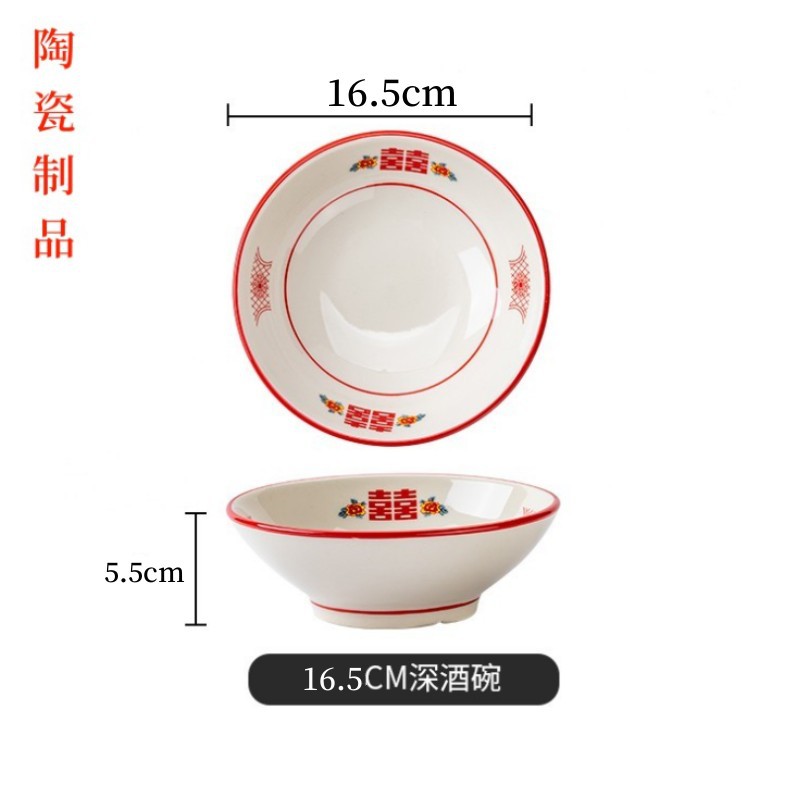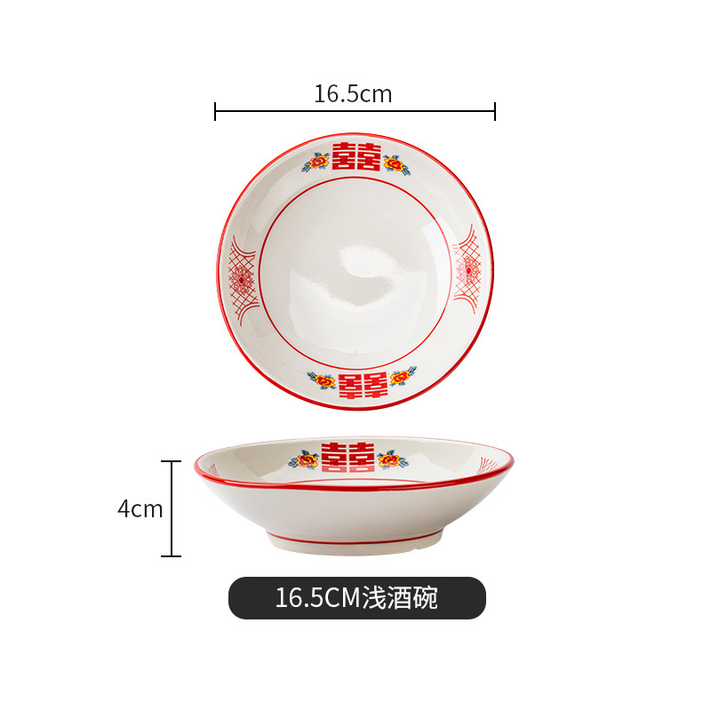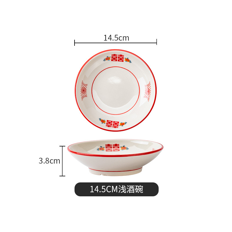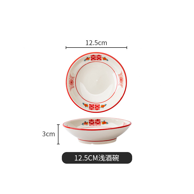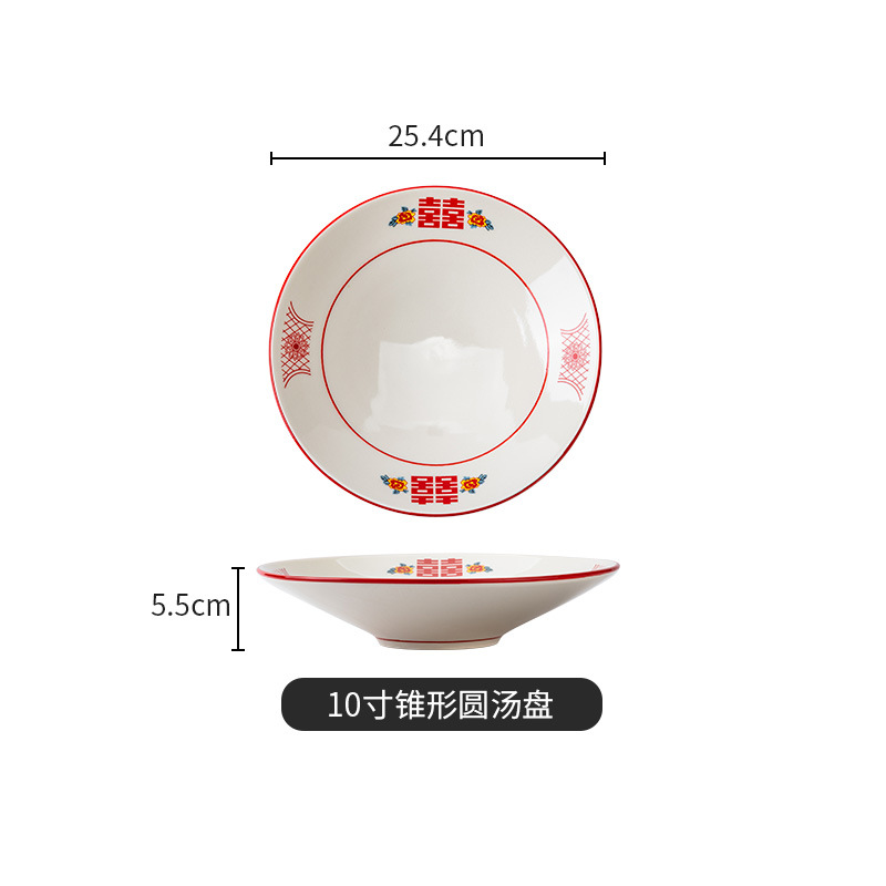 세라믹 빈티지 레드 더블 행복 플레이트 뜨거운 냄비 접시 고기 접시 소스 플레이트 얕은 플레이트 플랫 플레이트 생선 접시 레스토랑 식기
