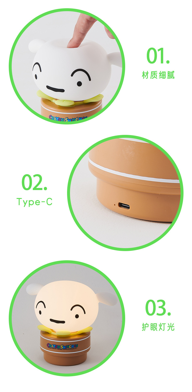 크레용 작은 새 화분 작은 흰색 박수 밤 빛 수면 분위기 빛 실리콘 박수 조명 책상 침대 옆 만화스토어 가기