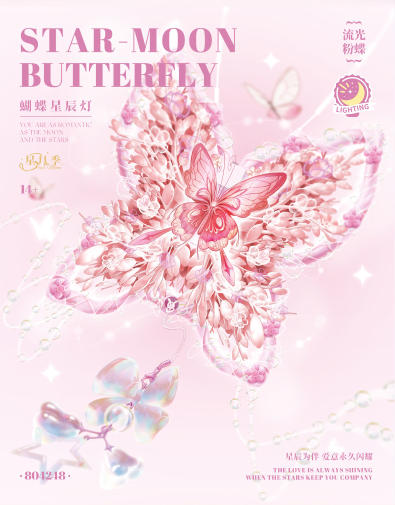 달빛 클럽 나비 스타 램프 빌딩 블록 꽃 분위기 밤 빛 펜던트 마이크로 입자 삽입 장난감 소녀의 생일 선물