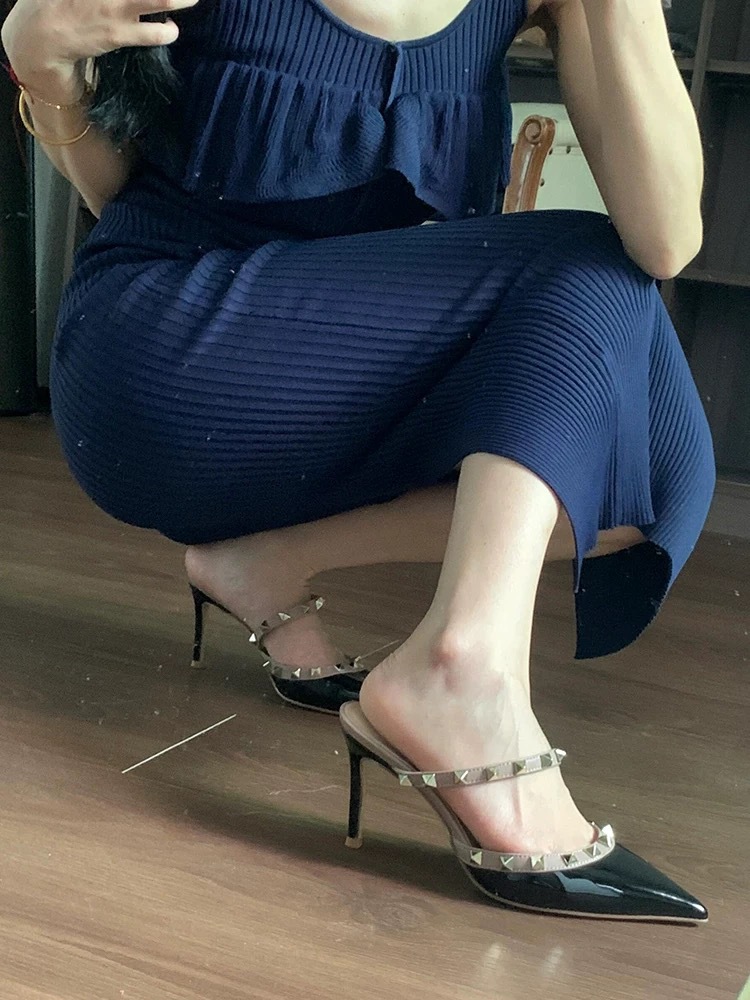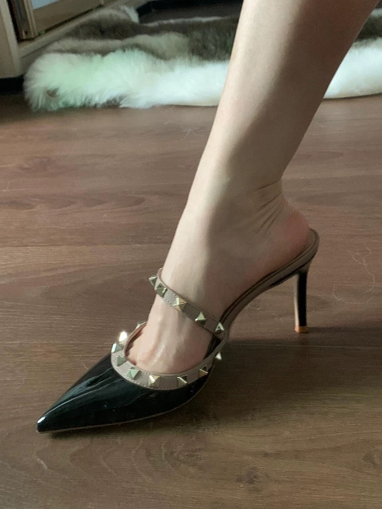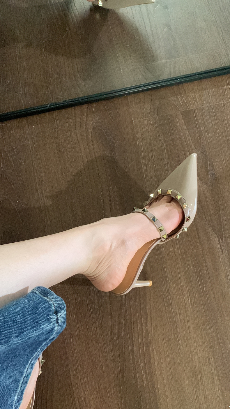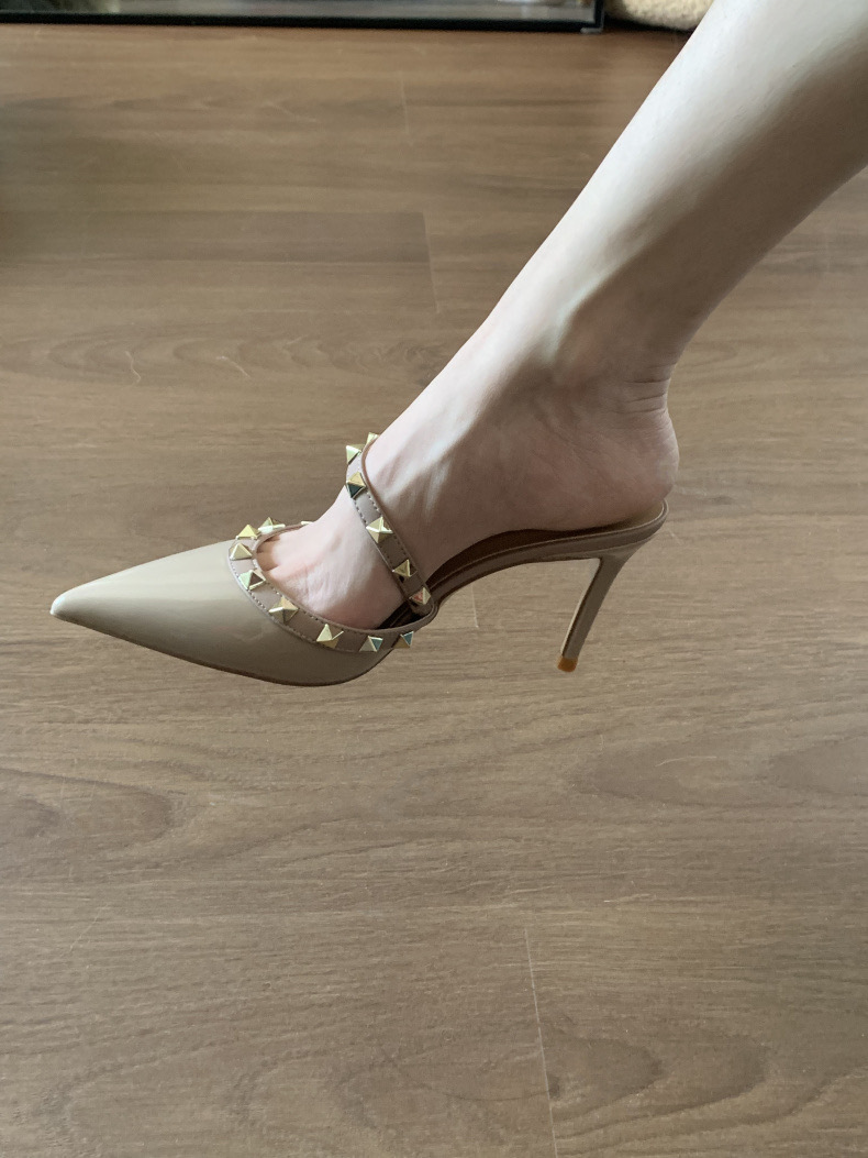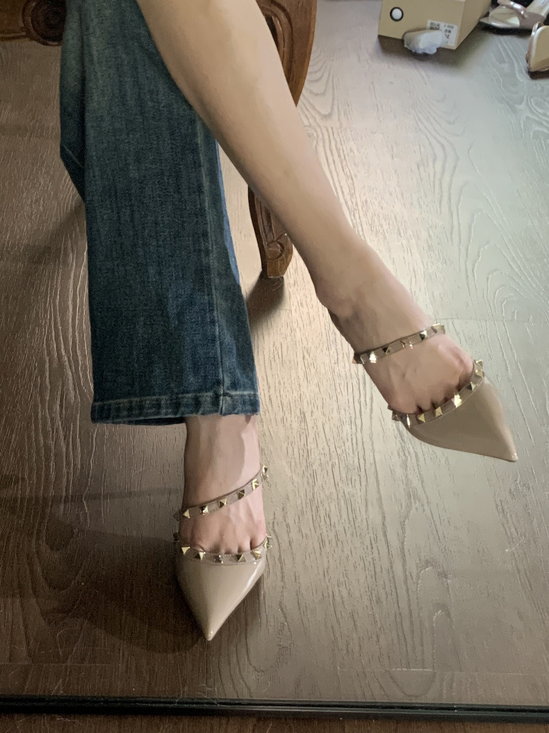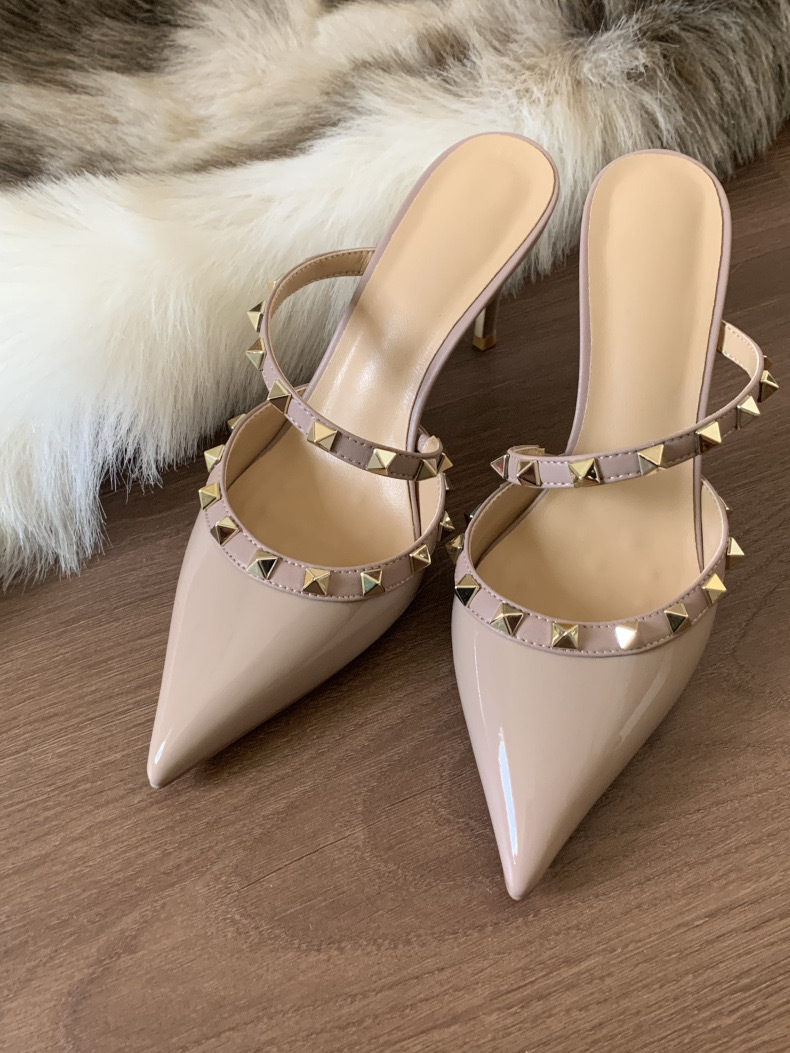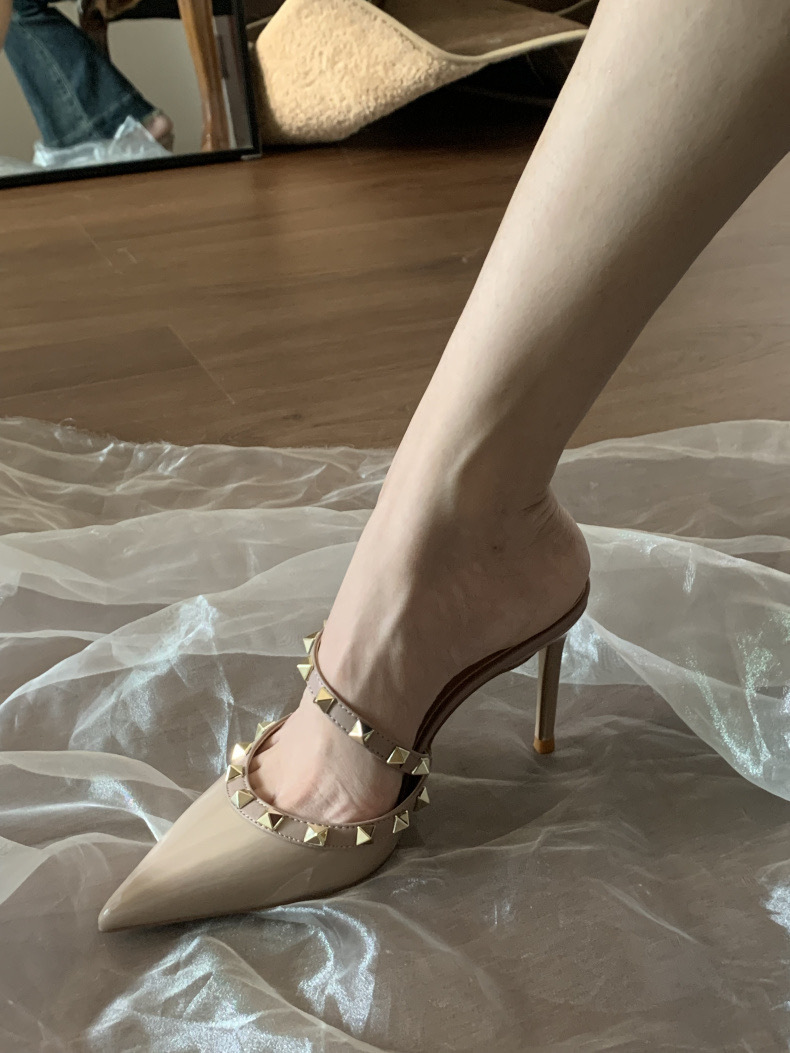 누드색 하이힐 여성용 2026 봄/가을 신상품, 스터드 장식 뾰족코 스트랩 샌들, 우아한 여성스러운 반슬리퍼스토어 가기