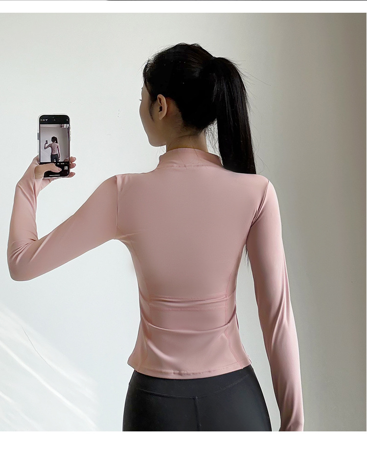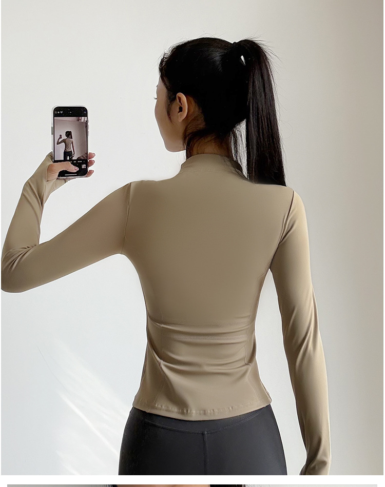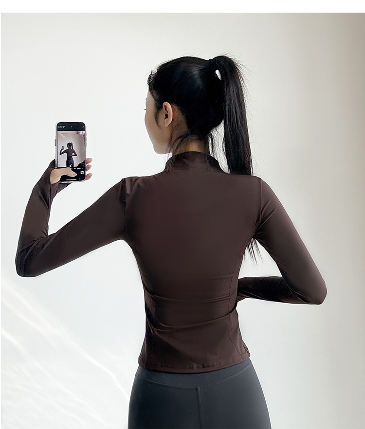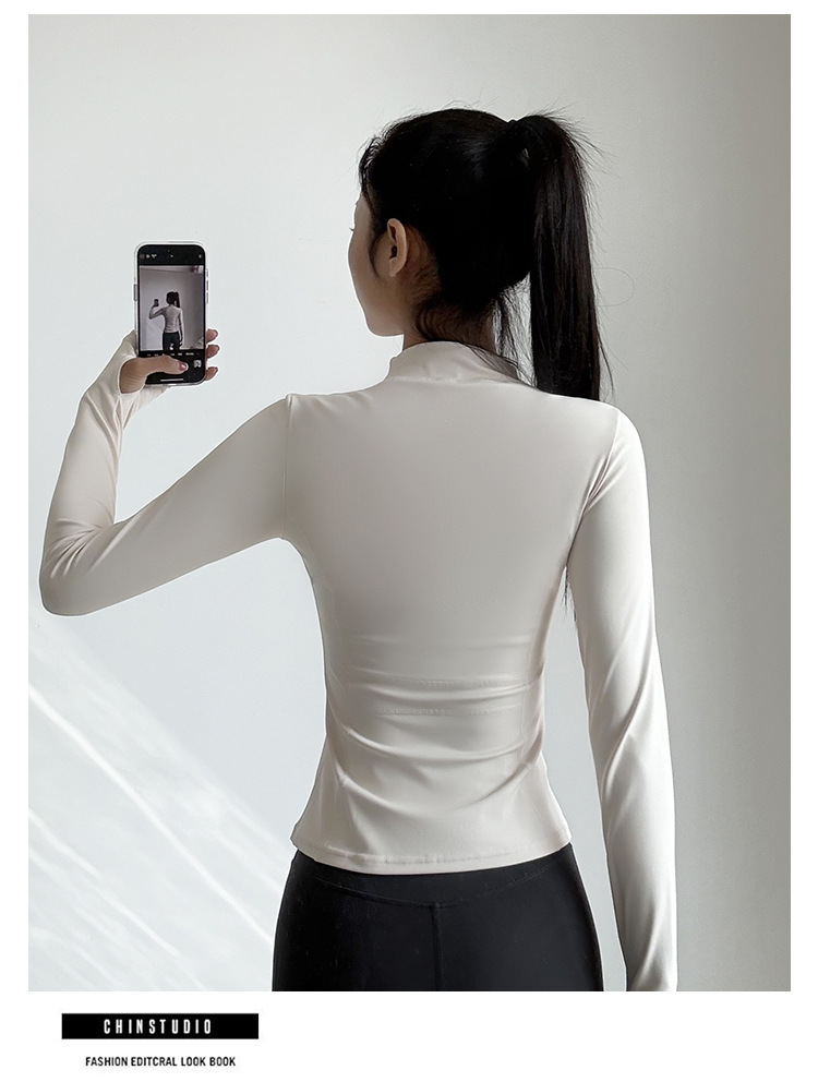 스포츠 코트 여성의 봄과 가을 긴팔 지퍼 빠른 건조 피트니스 라이딩 세트 탑 러닝 트레이닝 필라테스 요가 세트스토어 가기