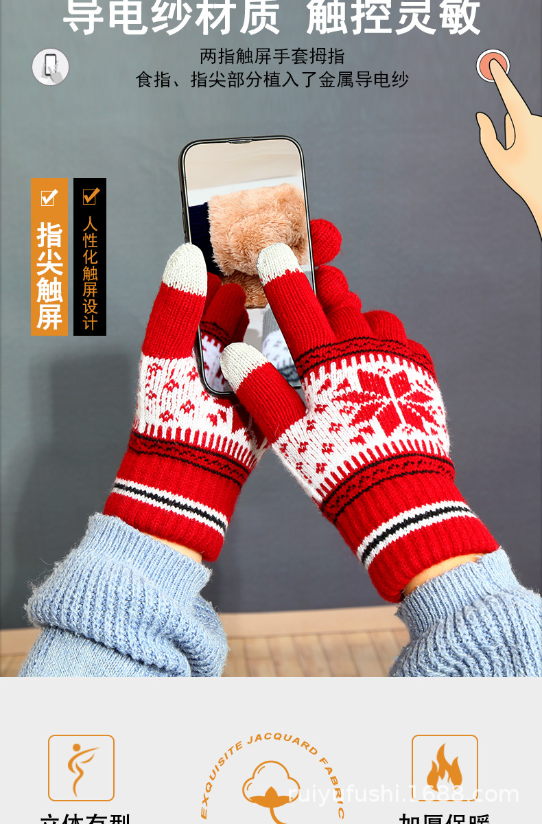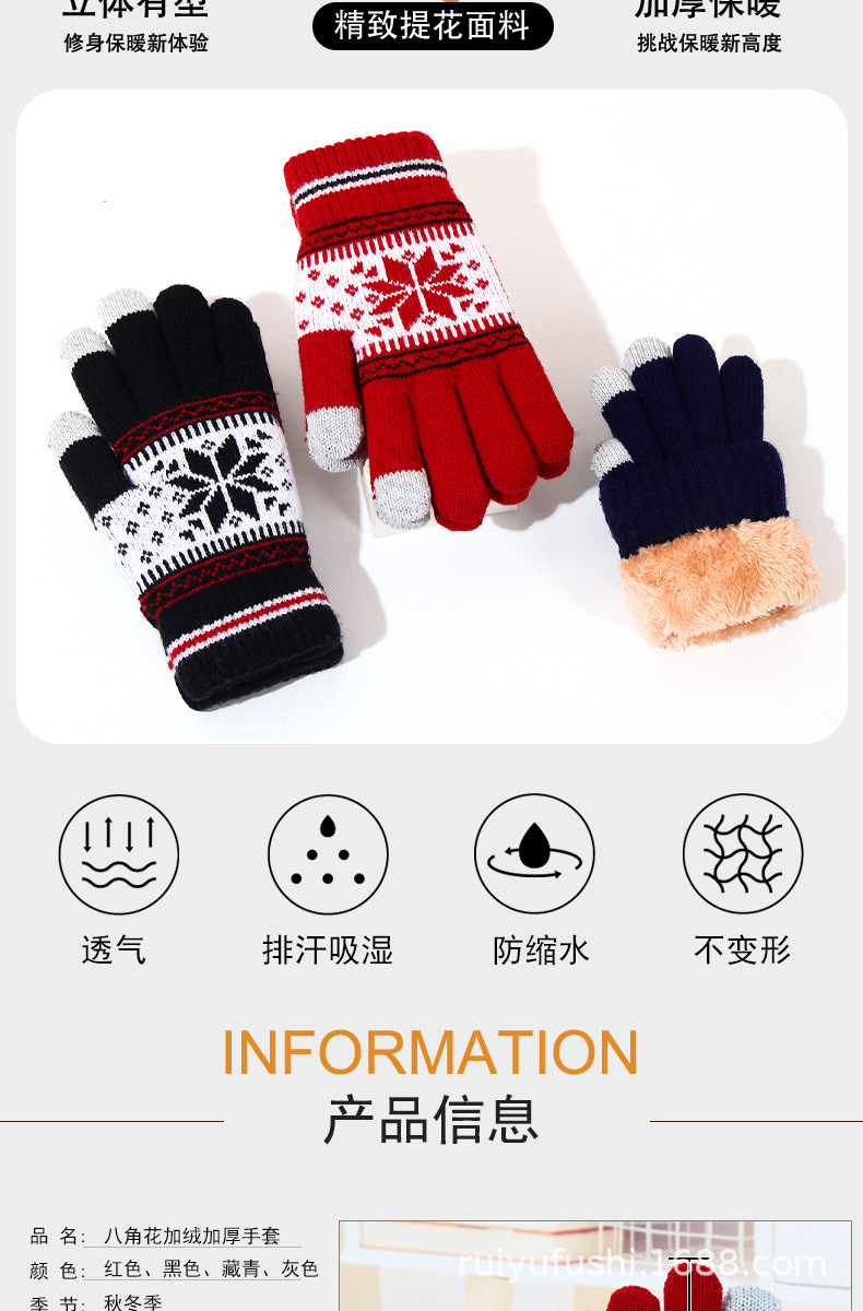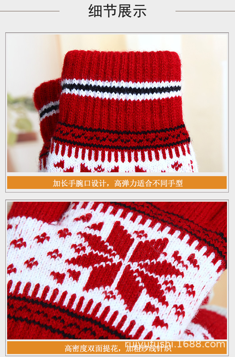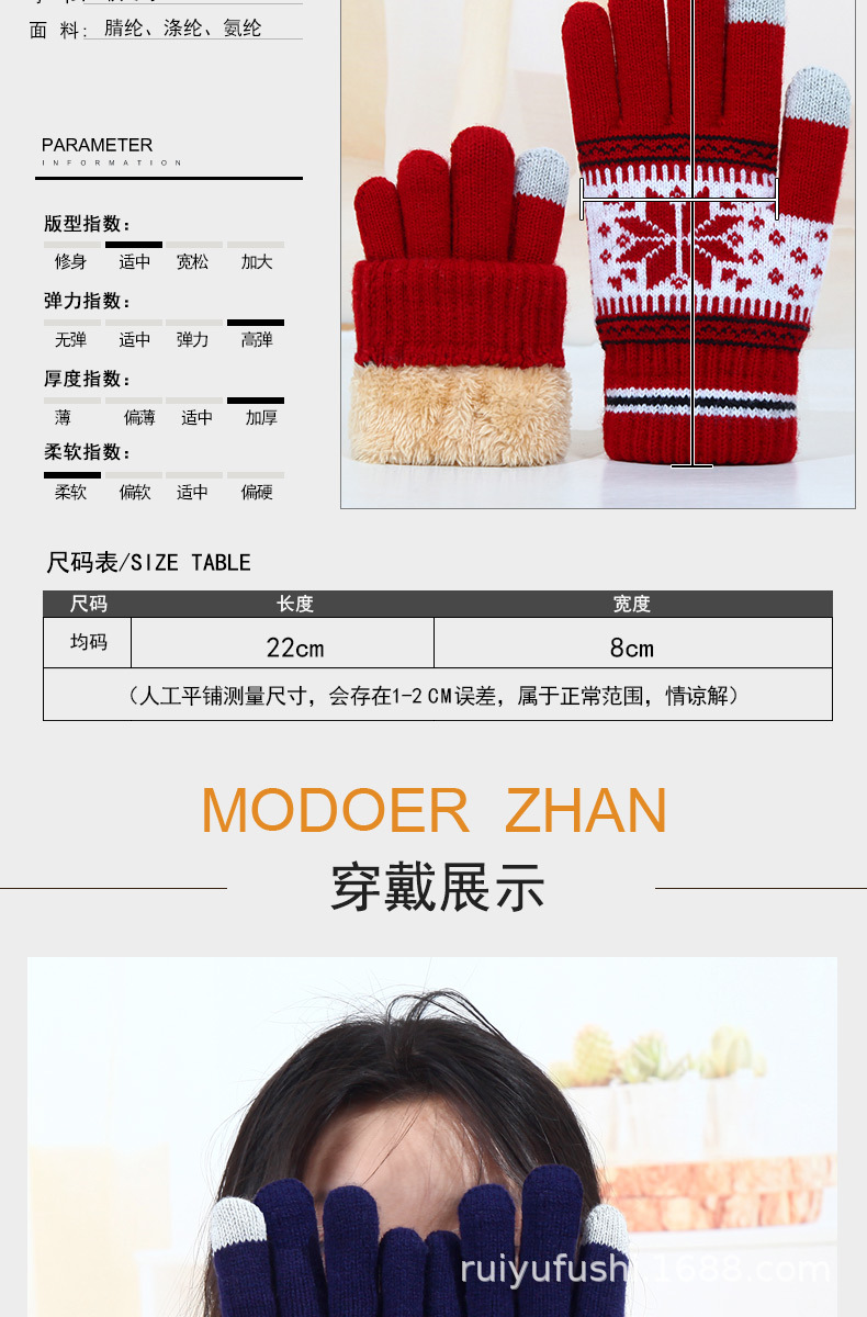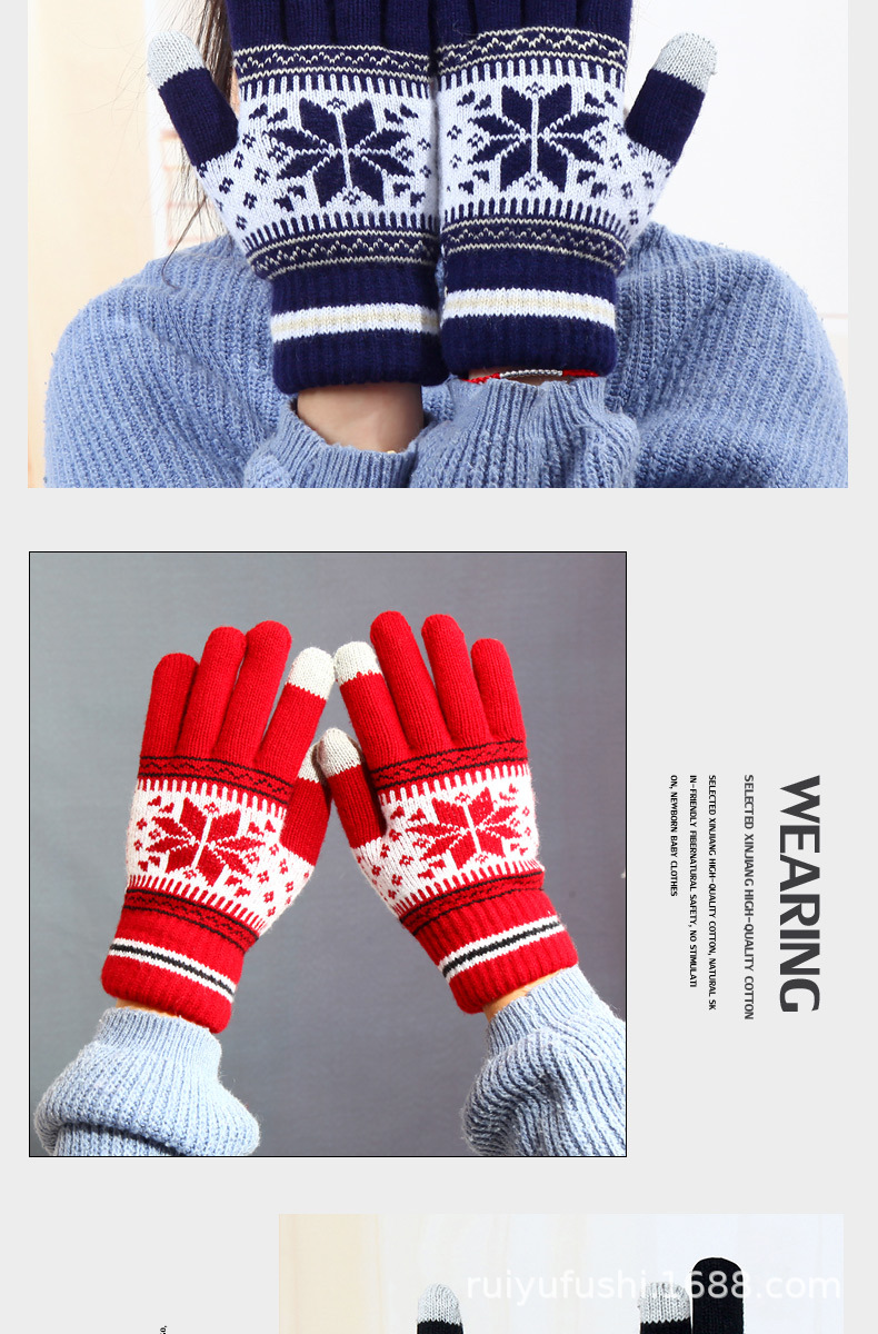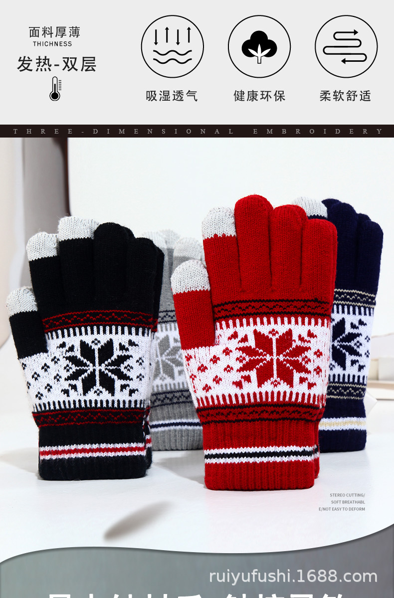 겨울 기모 두꺼운 여성 터치 스크린 장갑 다섯 손가락 눈송이 따뜻한 더블 레이어 장갑 양모 새로운 안티 동결 니트