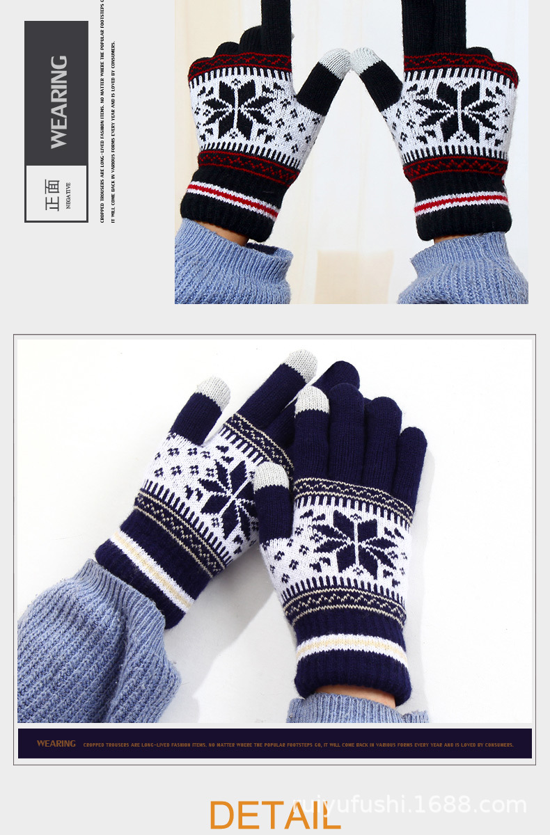 겨울 기모 두꺼운 여성 터치 스크린 장갑 다섯 손가락 눈송이 따뜻한 더블 레이어 장갑 양모 새로운 안티 동결 니트스토어 가기