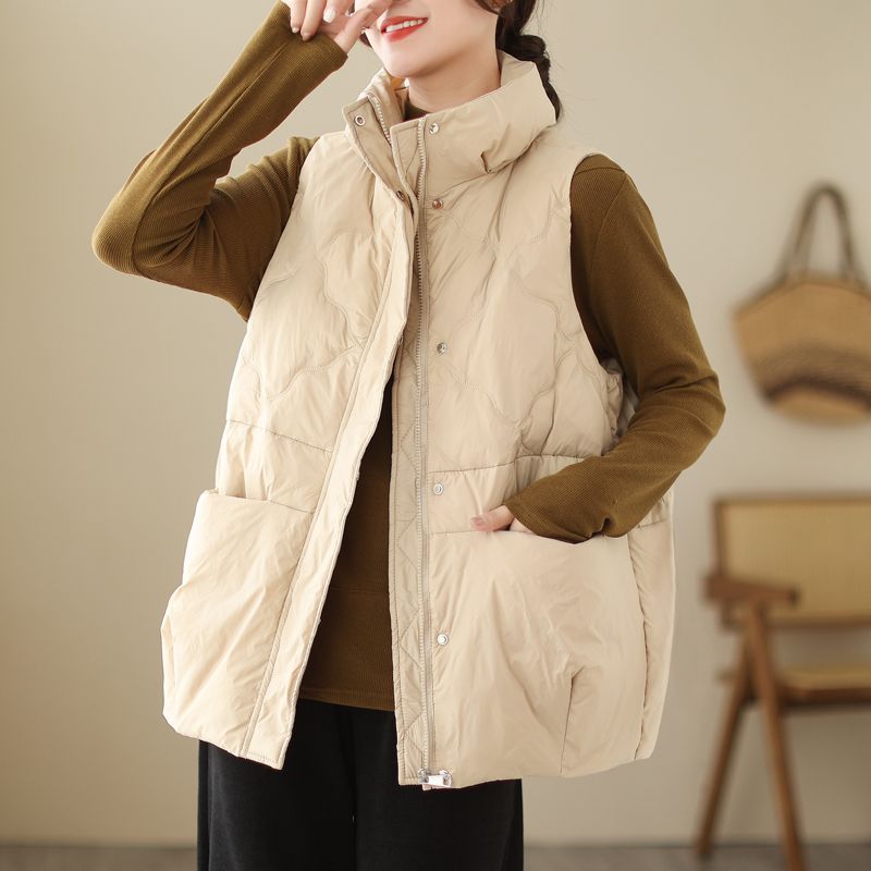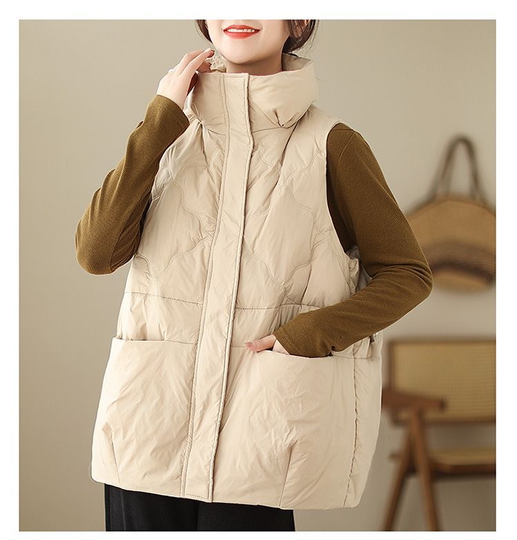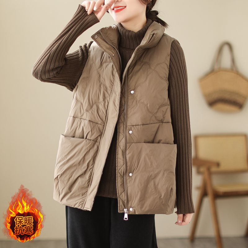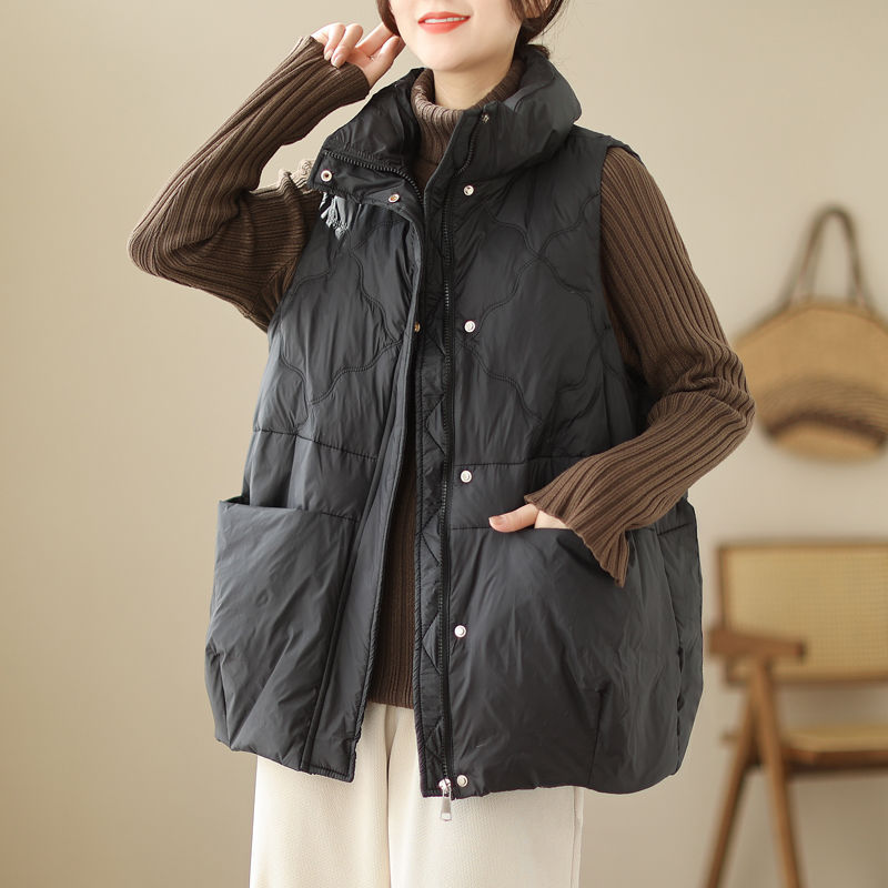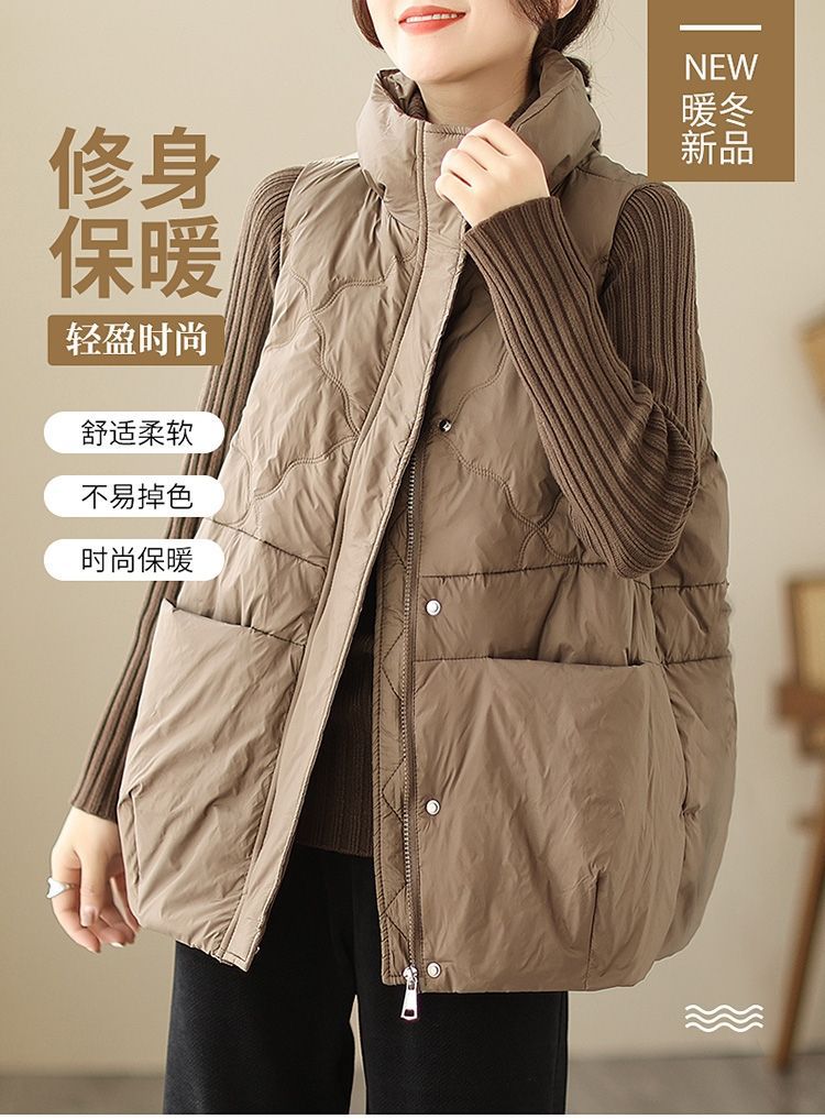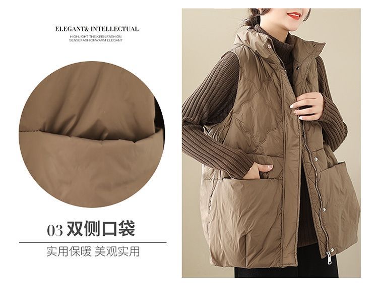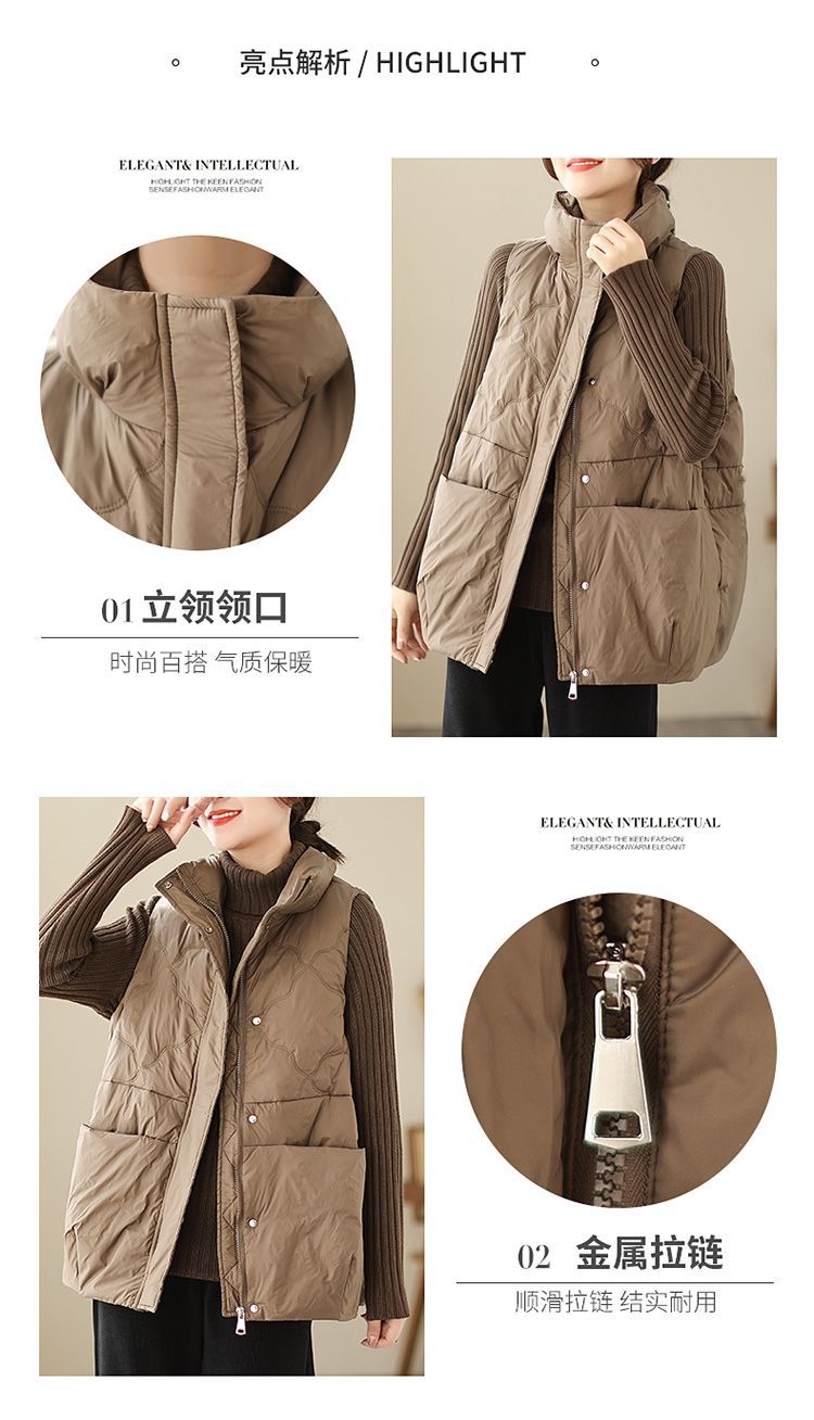 유행 다운 코튼 조끼 코트 여성의 가을 및 겨울 느슨한 캐주얼 따뜻한 유지 칼라 두꺼운 외부 조끼 탑