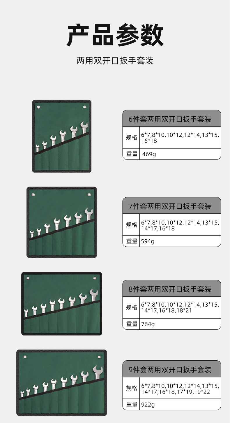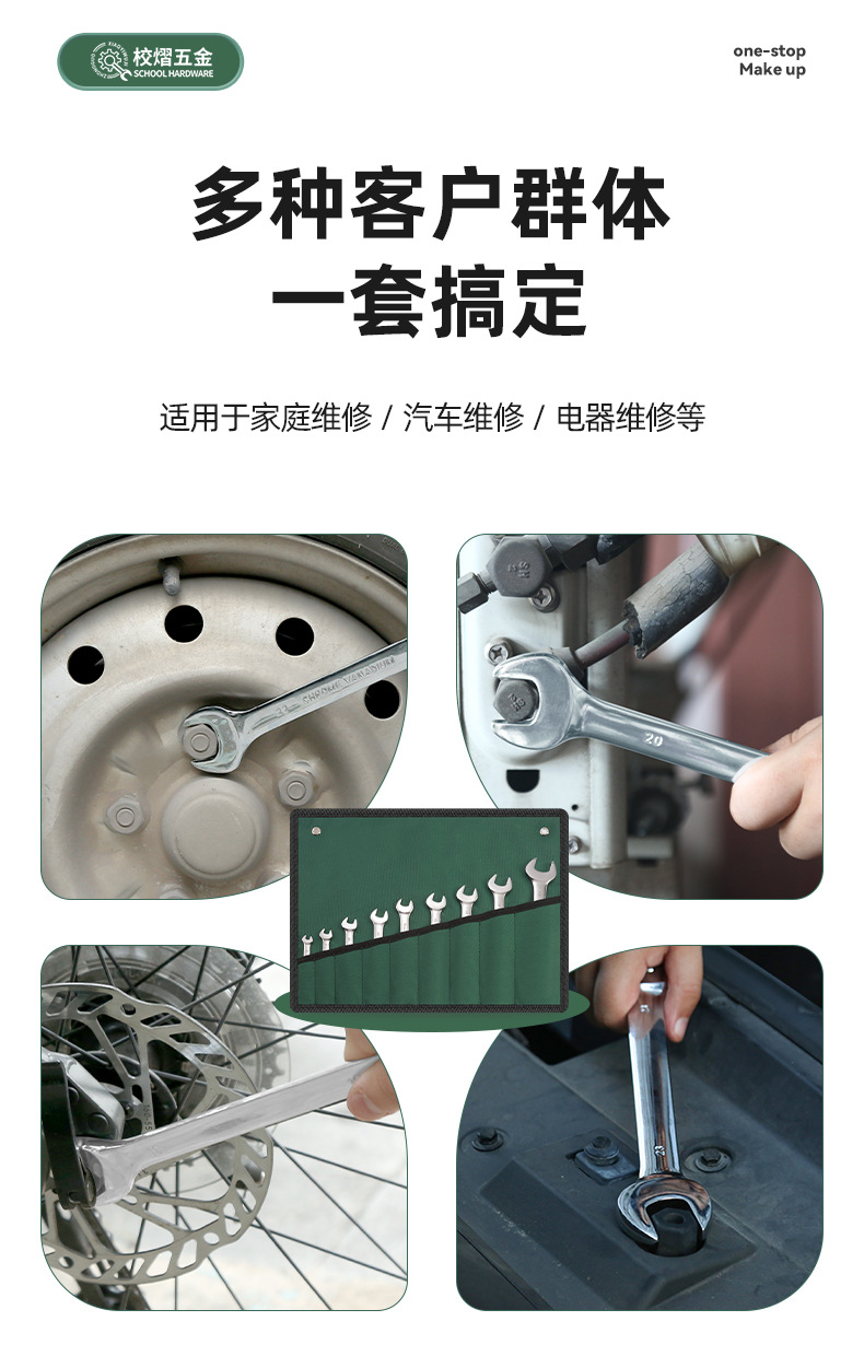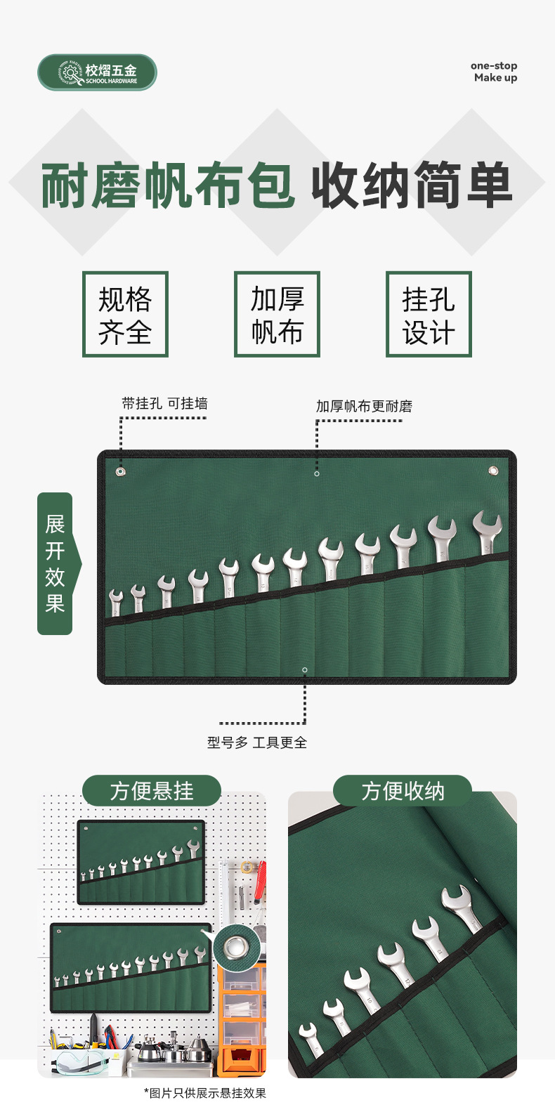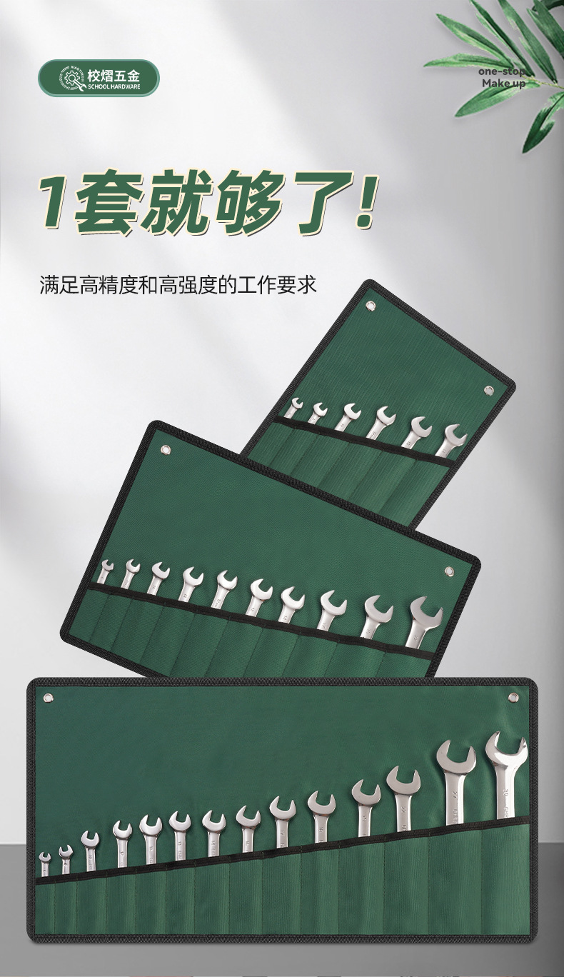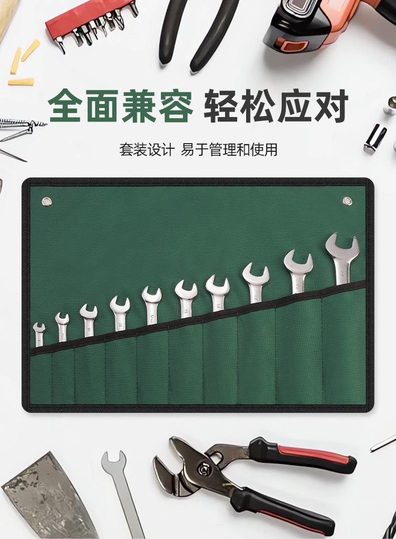 개방형 이중 목적 렌치 다기능 양단 거울 렌치 하드웨어 자동 수리 도구 평면 렌치 녹색 가방 도매