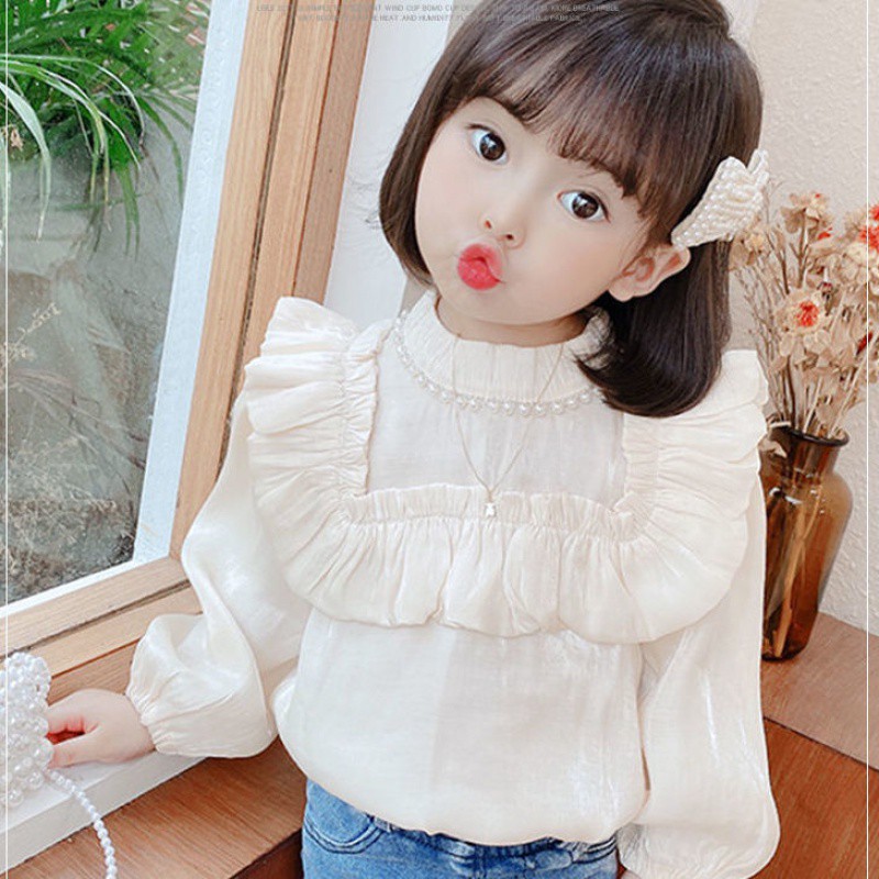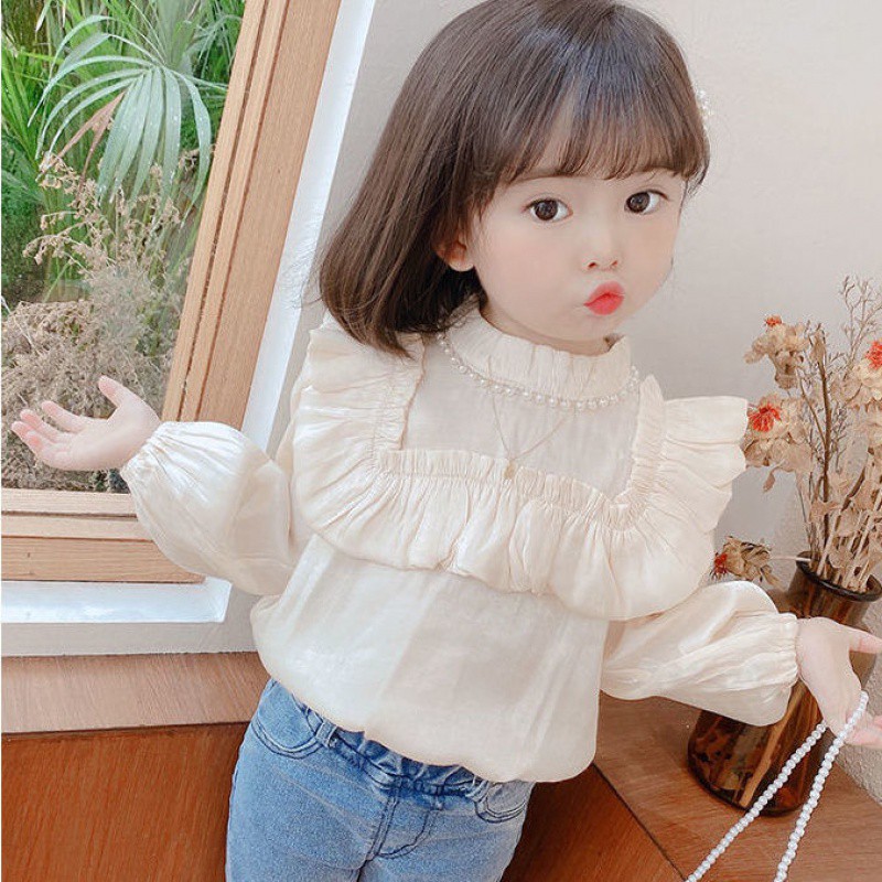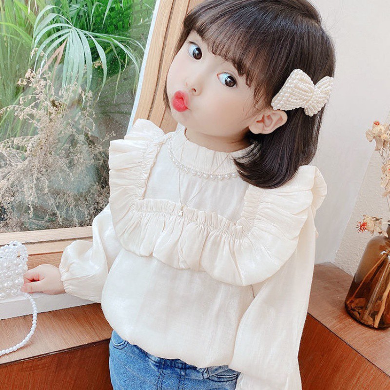 아기 소녀 셔츠 2024 소녀의 가을 새로운 한국 스타일 어린이 외국 스타일 공주 탑 베이스 셔츠 봄 20223