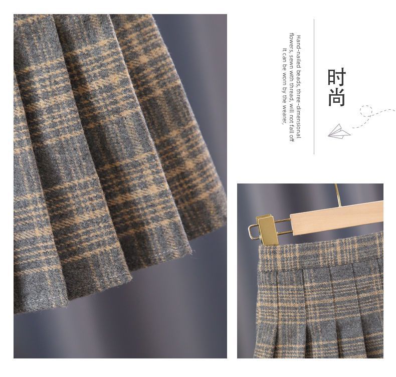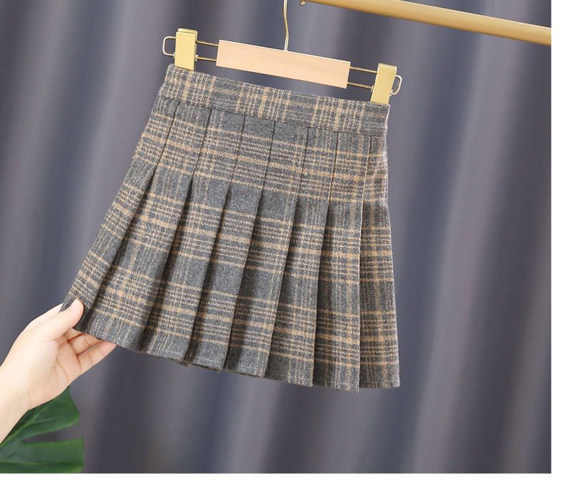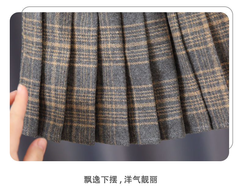 여자 치마 가을과 겨울 올 매치 팔꿈치 허리 어린이 겨울 서양식 대학 스타일 주름 치마 모직 짧은 치마스토어 가기